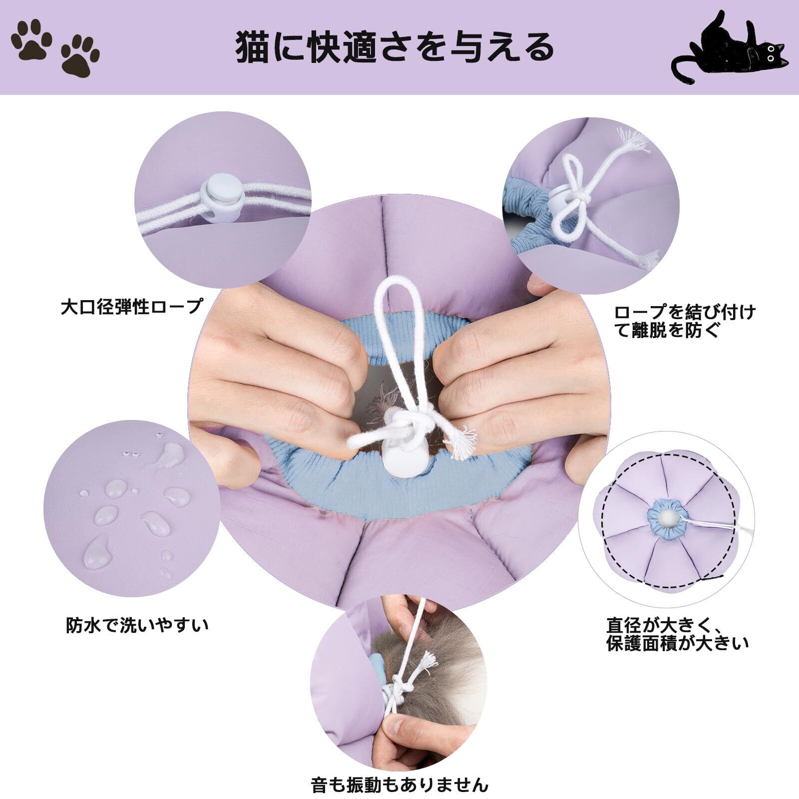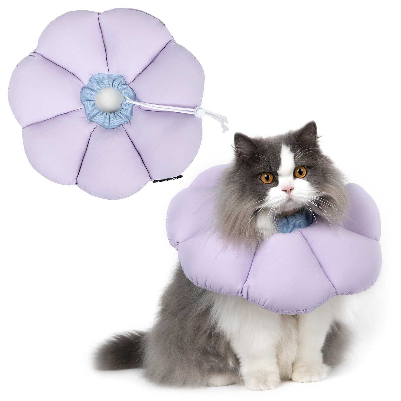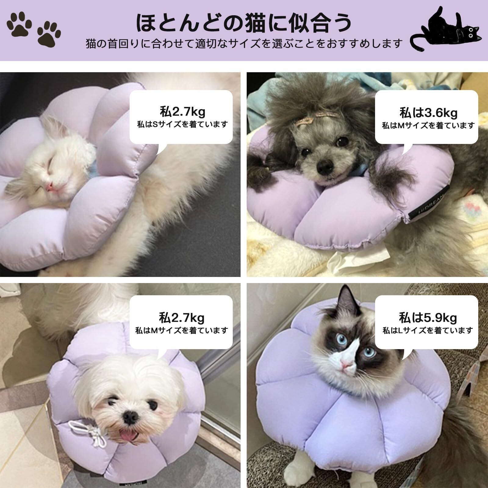エリザベスカラー 猫用 犬用 ソフト 防水 軽量 手術後傷口保護 舐め防止 引っ搔き防止 視界や飲食を妨げない 可愛い紫色の花の形 Mサイズ