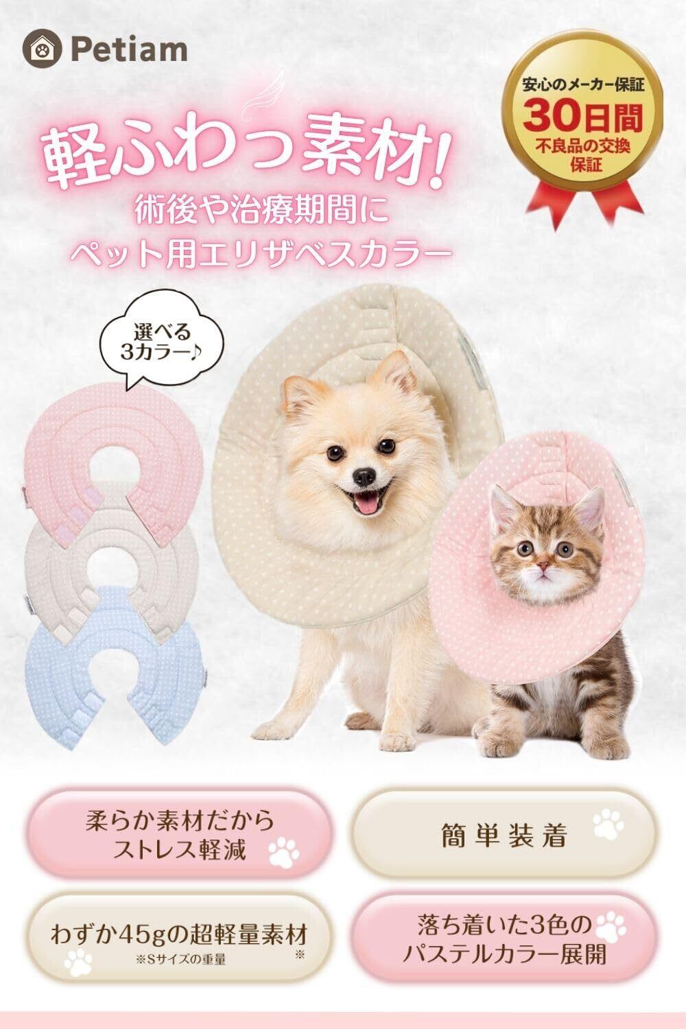 (シリーズ累計2万個突破) Petiam エリザベスカラー 猫 犬 ソフト 軽量 傷舐め防止 引っ掻き防止 術後ケア (ベビーブルー, S)