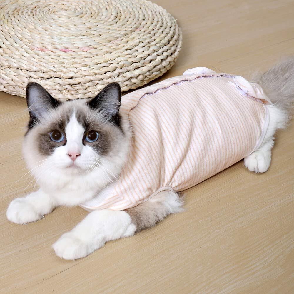 術後服 猫用 ペット術後ウェア 皮膚保護 傷舐め防止 エリザベスカラーに代わり 介護服 引っ掻き防止 避妊術後ケア オス メス兼用 (M, オレンジ)