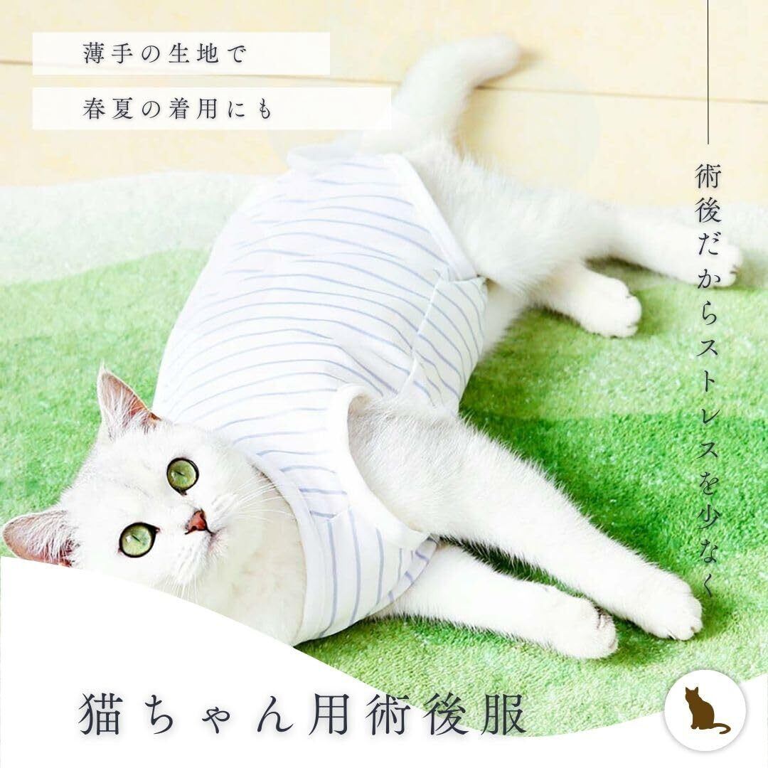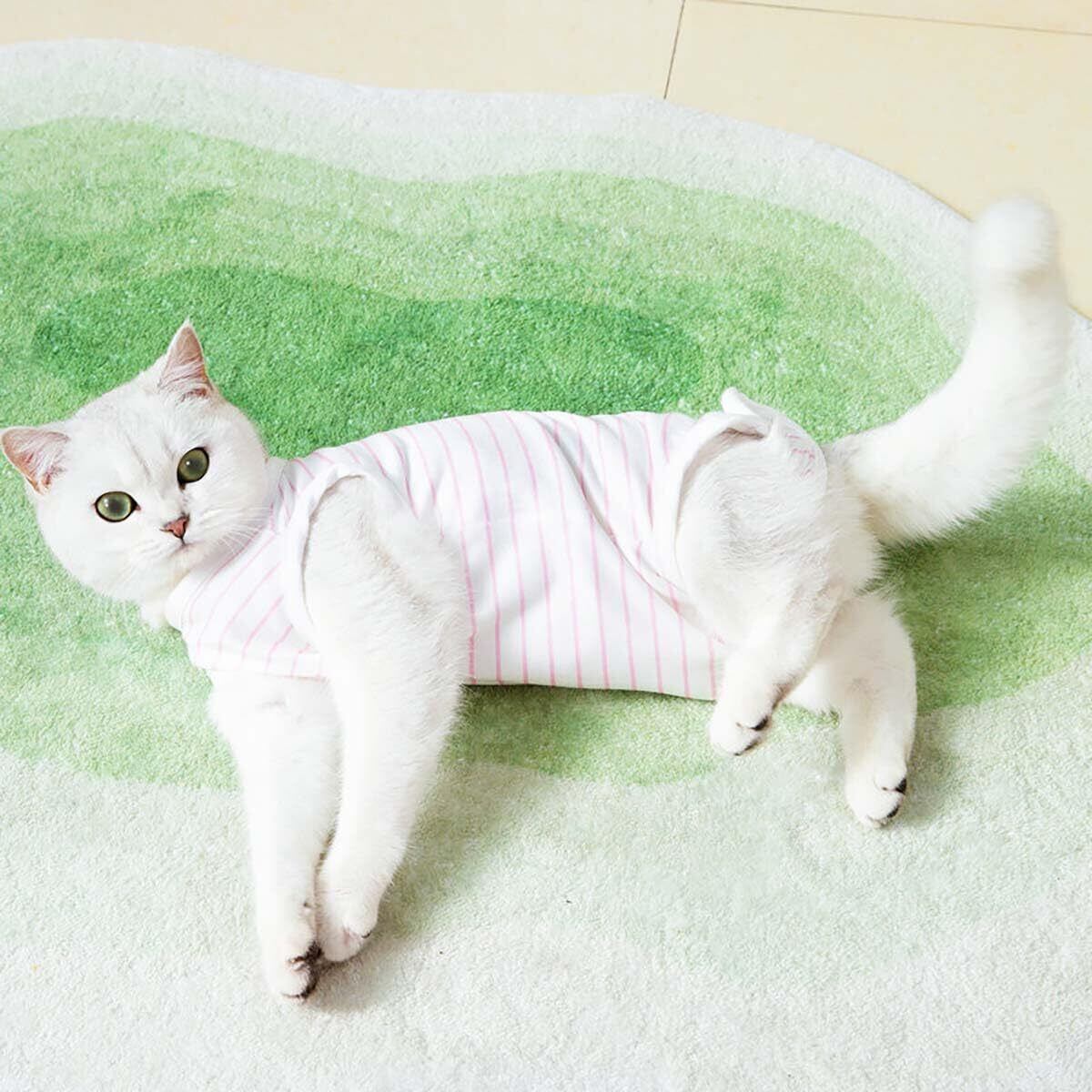 【傷口の舐め防止】手術後の猫ちゃんのケアには、傷口を舐めないようにすることが非常に重要です。術後服は猫が傷口を舐めることを防ぎ、治癒を妨げるリスクを軽減します。エリザベスカラーに比べて抵抗感が少ないため、猫ちゃんもストレスを感じにくくなっています。