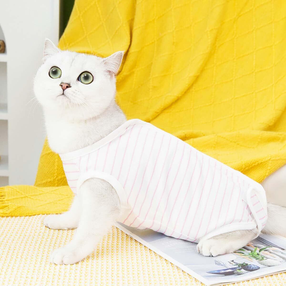 【新春セール】PetGround 猫 術後服 メス オス 着せやすい 脱げない マジックテープ 春 夏 薄手 シンプル 可愛い 柔らかい 術後ウェア エリザベスカラーの代わりに (ピンク, L) | wakuwakuland