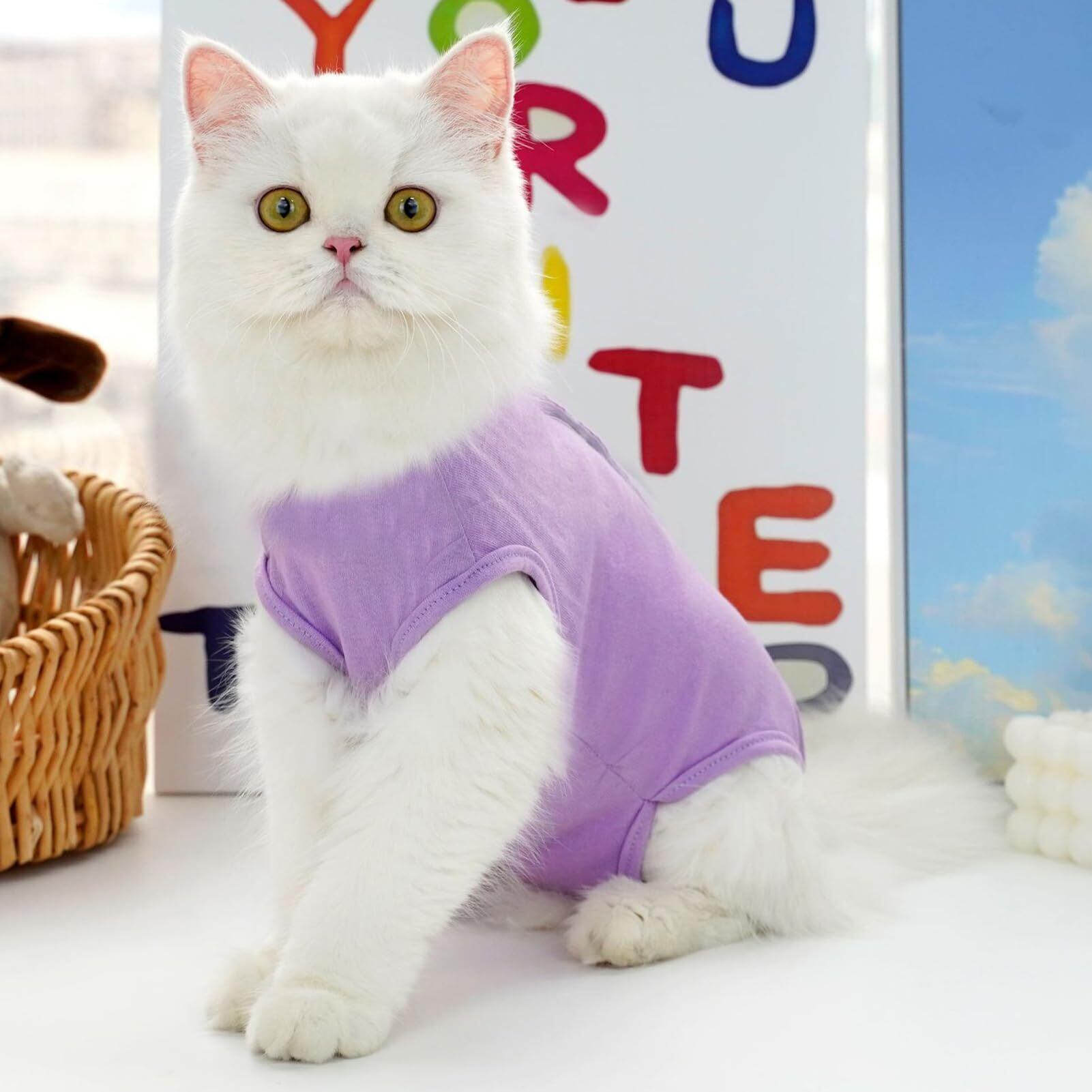 KUVEELA PET 猫 術後服 術後ウェア 小型犬 保護服 服 術後 カバー 雌 避妊 去勢 離乳 皮膚 保護 通気 XS(色ランダム)