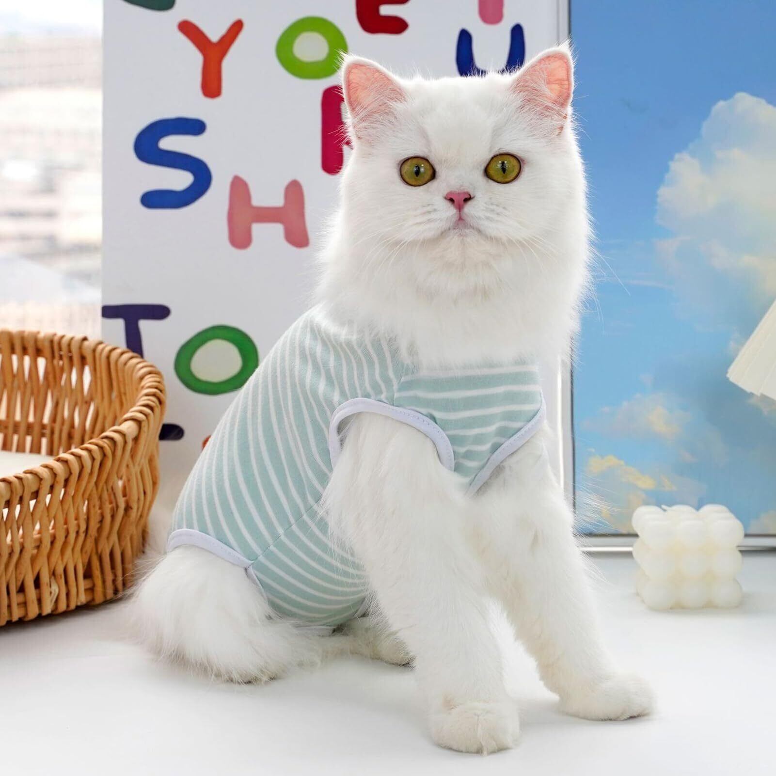 この猫術後服を着用すると、猫体毛センサーを狂わせず、ストレスない行動ができる。傷口悪化を防ぎ、患部の舐め壊しを防止する。