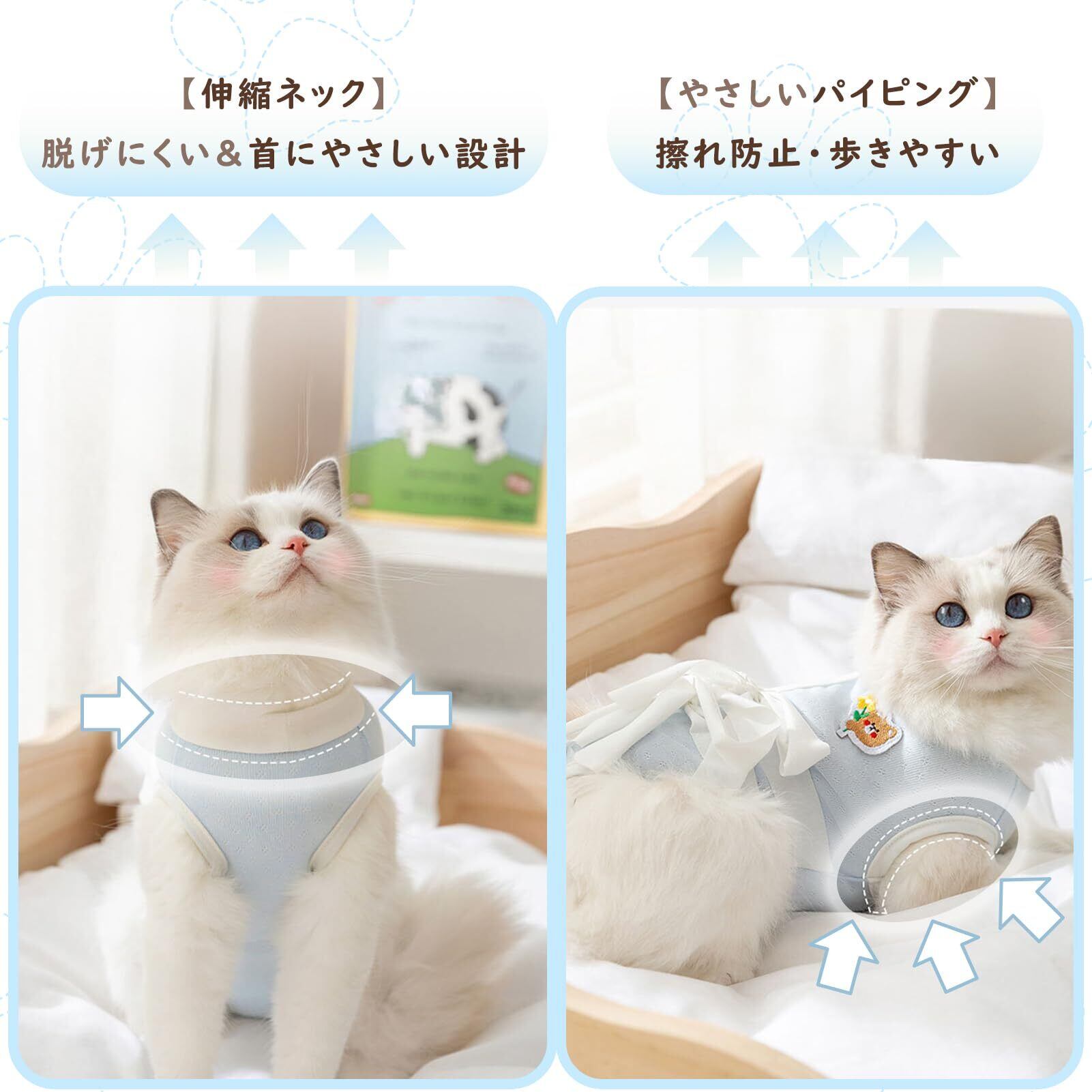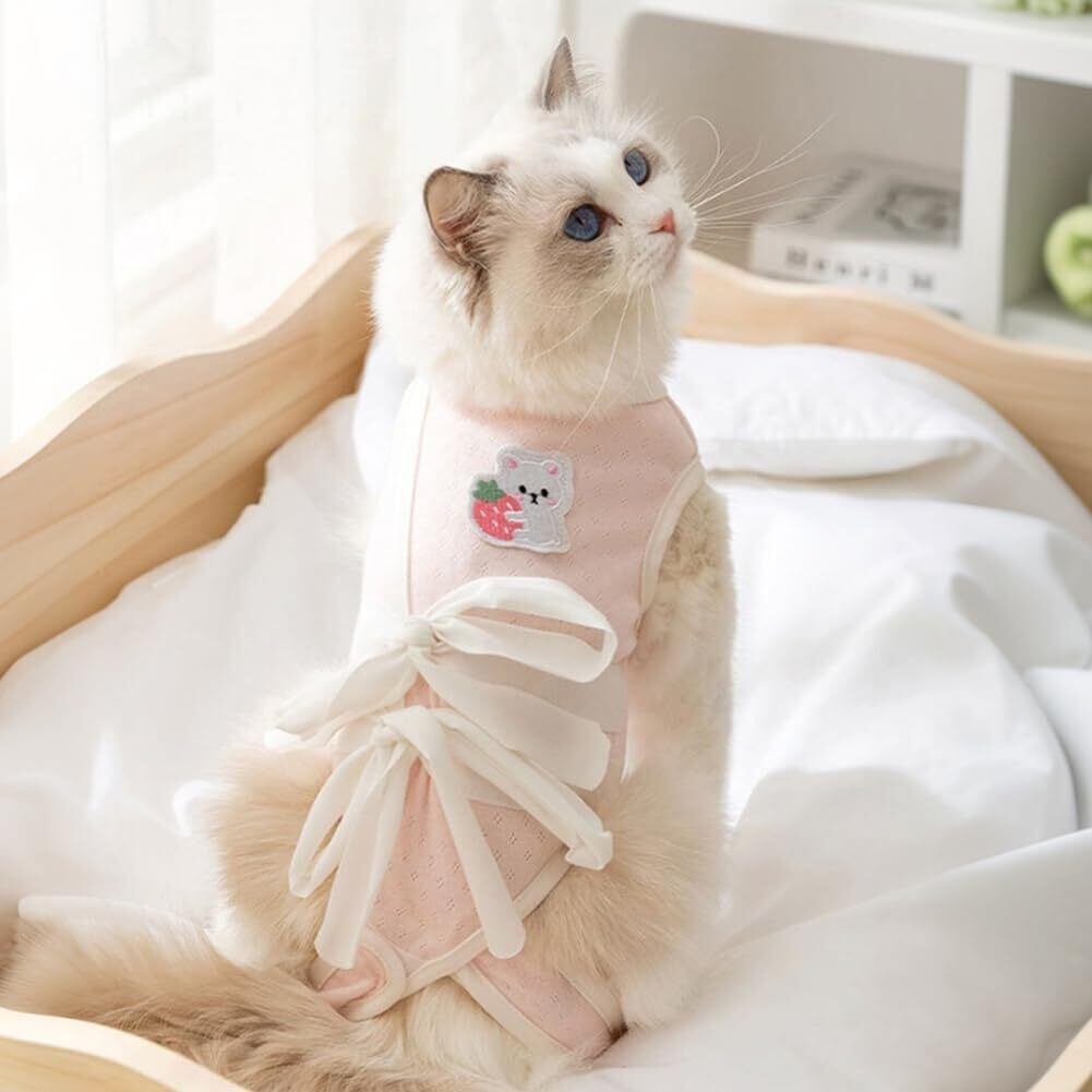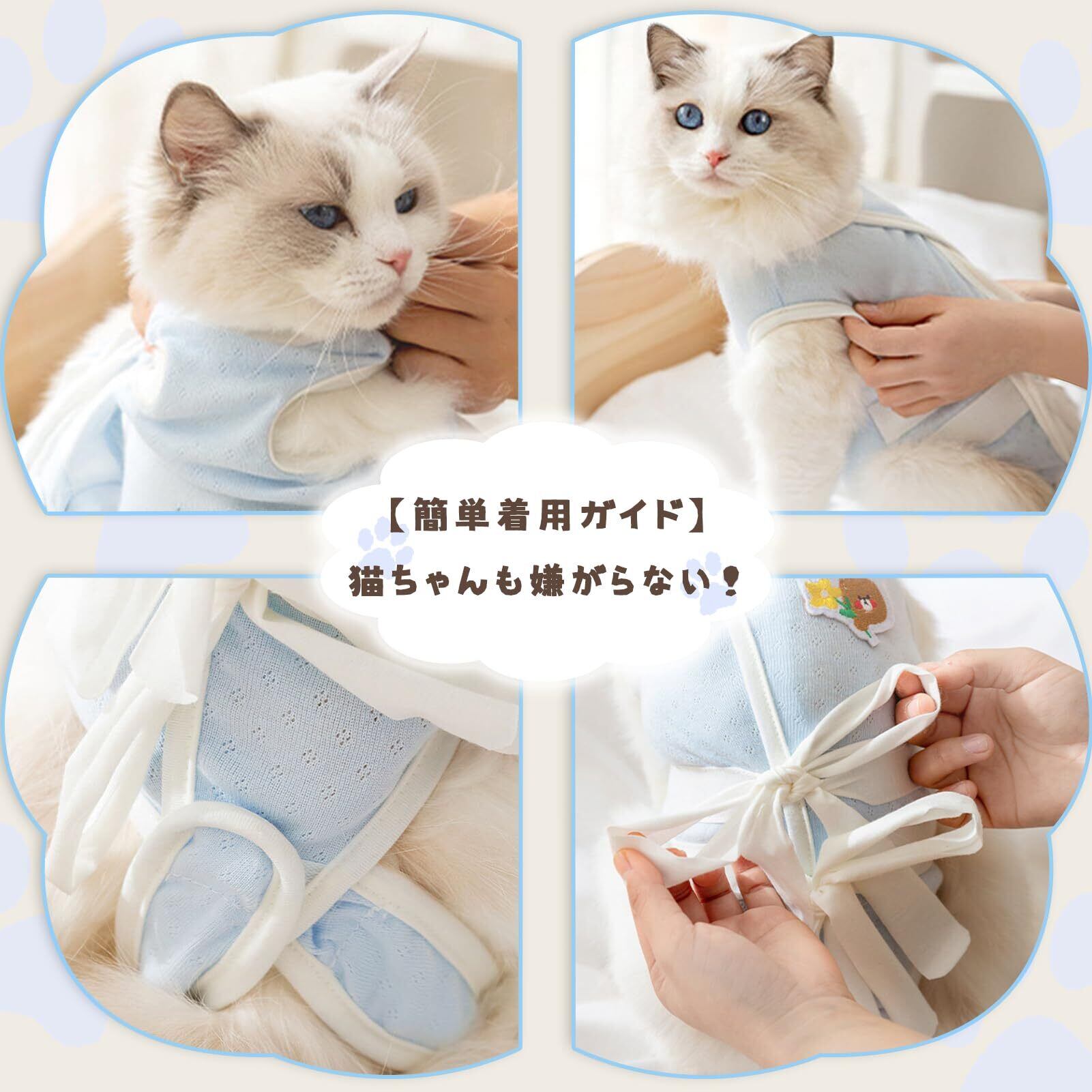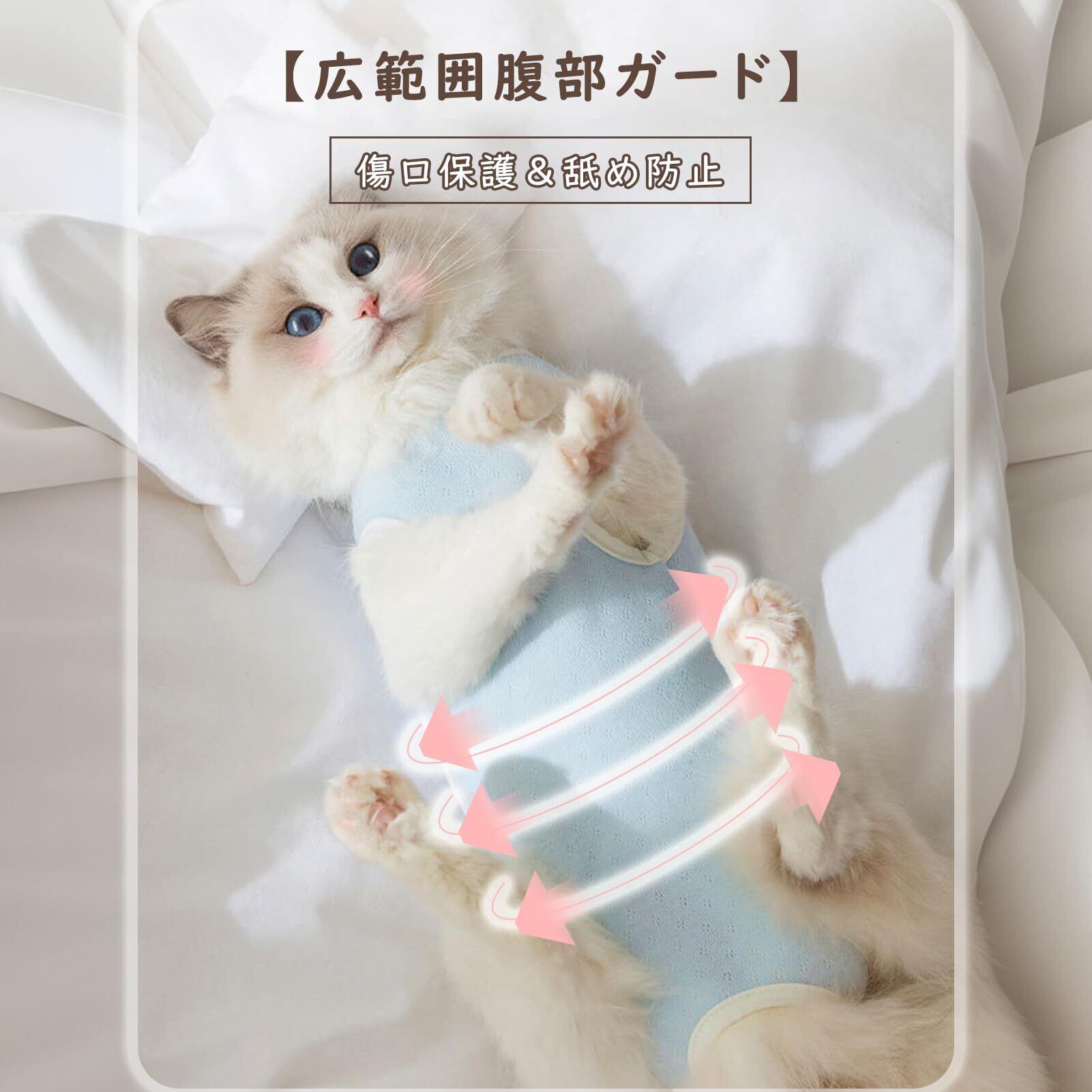 【メス猫専用設計】避妊手術や断乳期のケアに最適な、メス猫専用の術後服。体型に合わせたフィット感で、快適な着用を実現します。