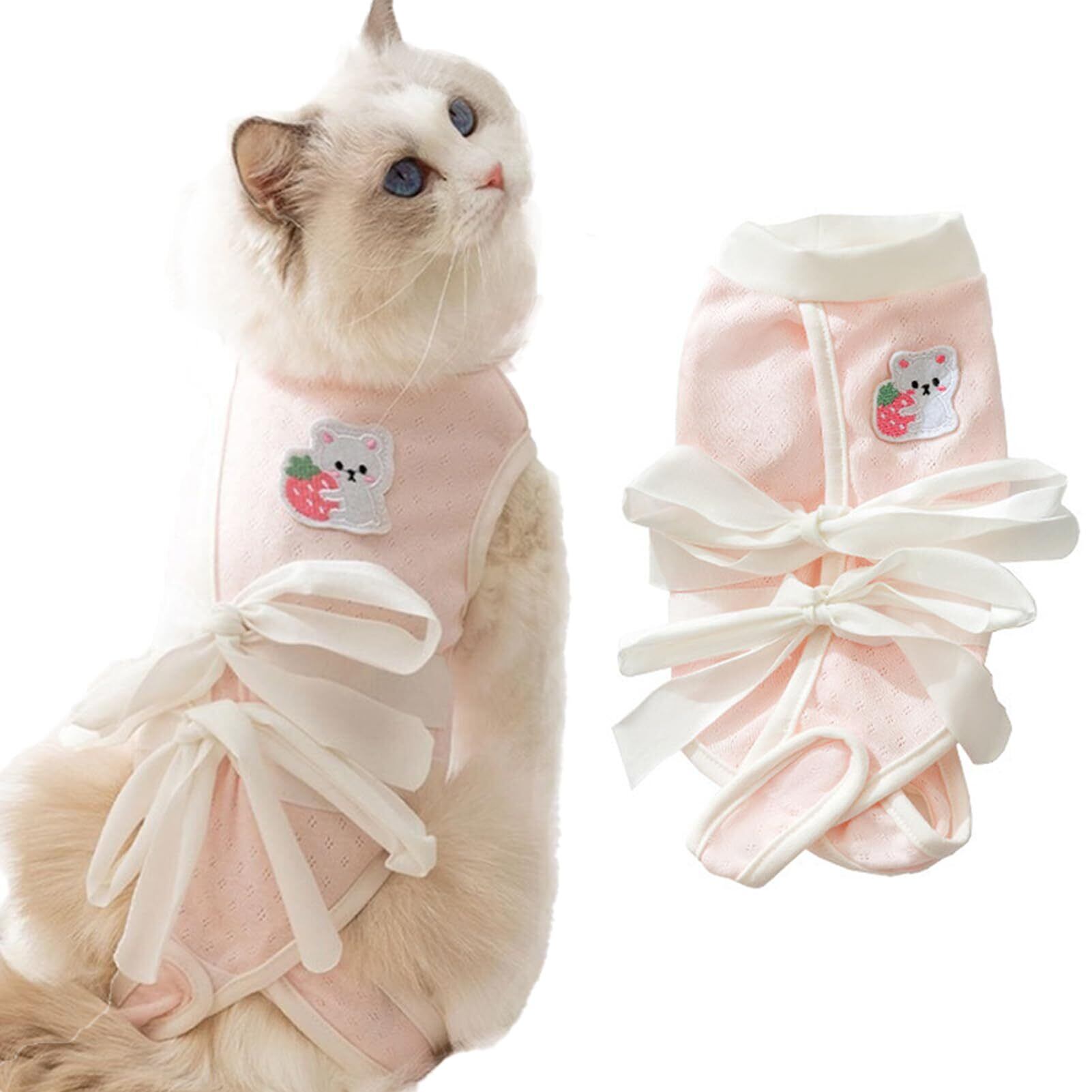 【特価商品】Paipeper 猫 術後服 介護服 術後 ウェア メス 女の子 避妊 断乳 傷口保護 舐め防止 引っ掻き防止 エリザベスカラー代わり 着せやすい 夏用 通気性 涼感素材 サイズ調整(ピンク・イチゴ柄 S) | wakuwakuland