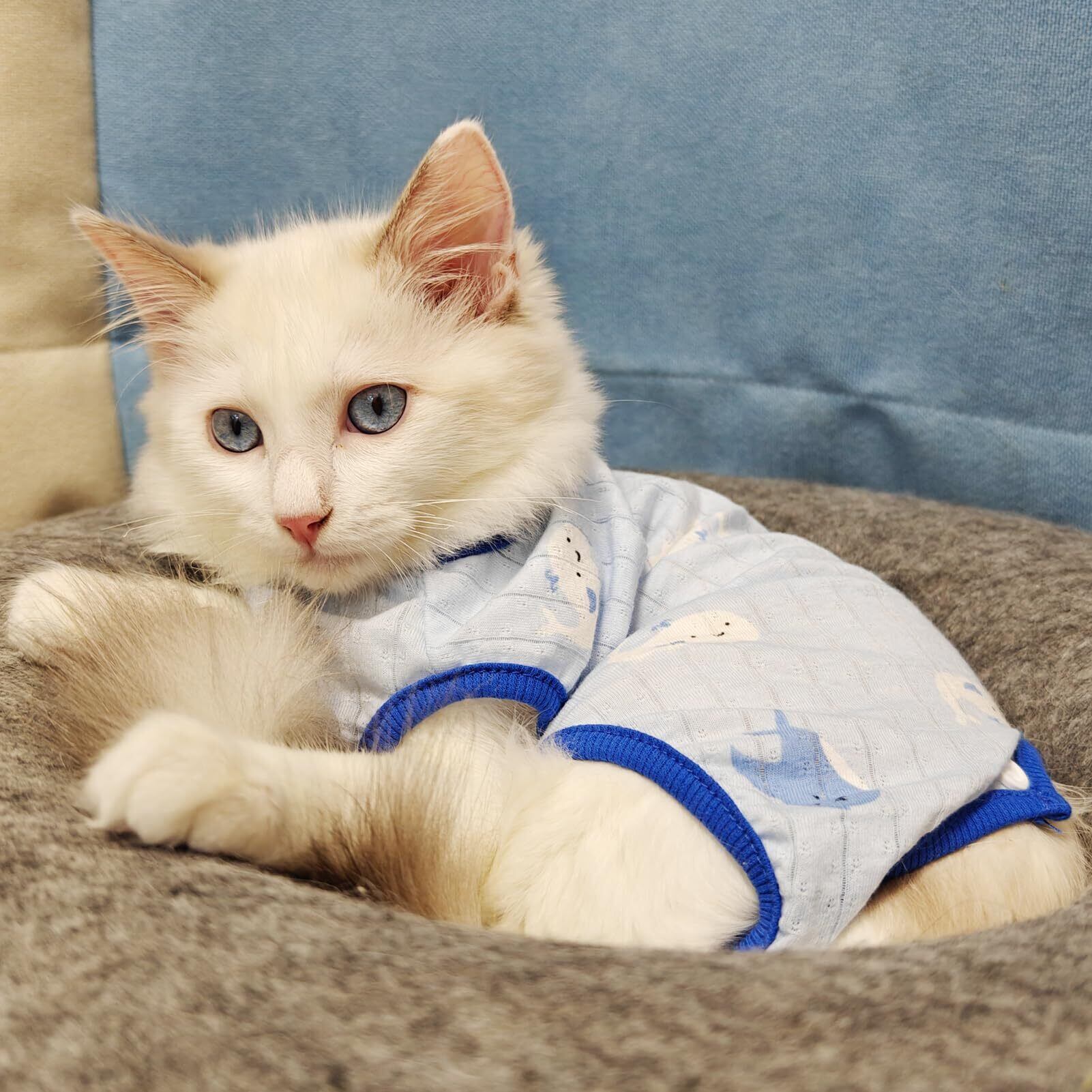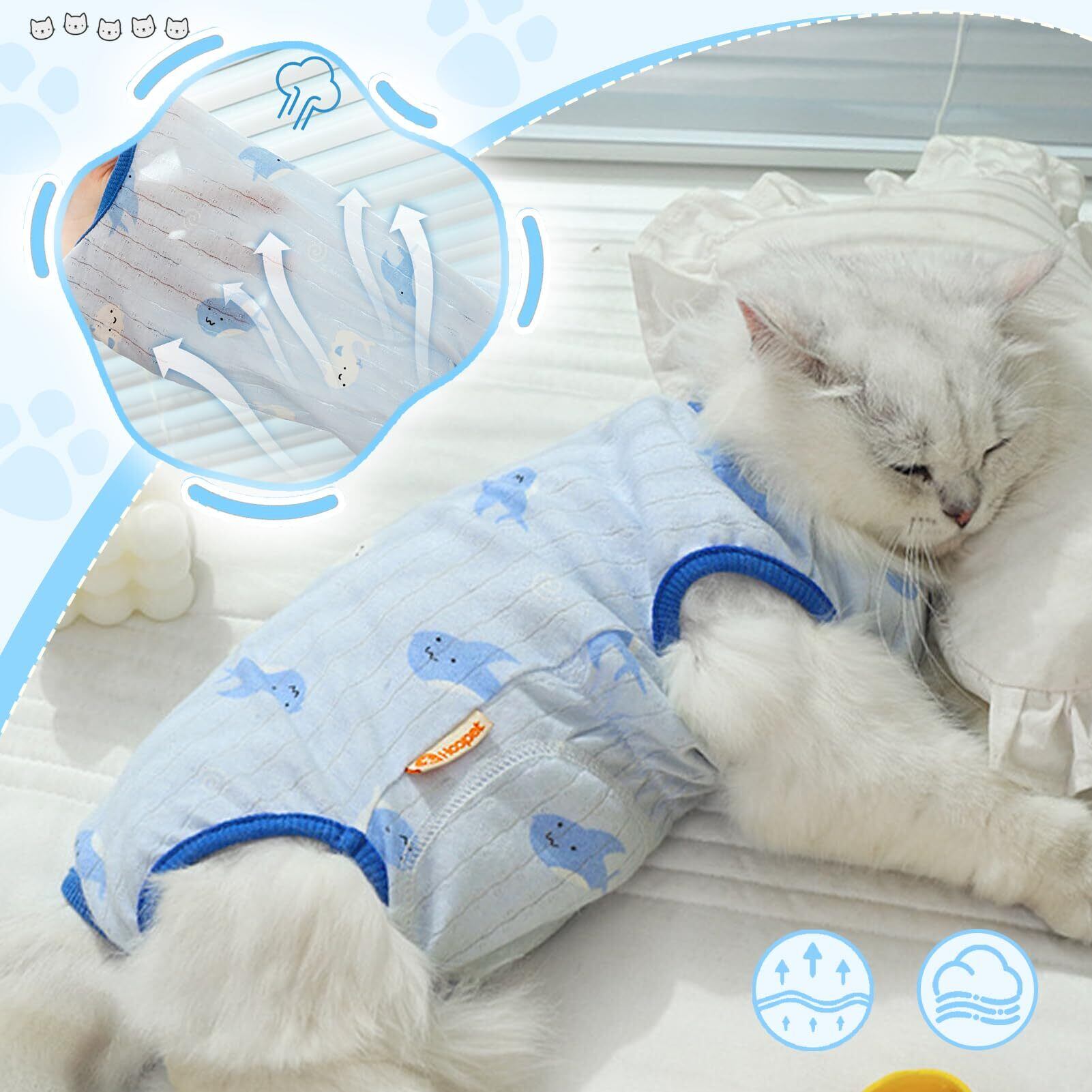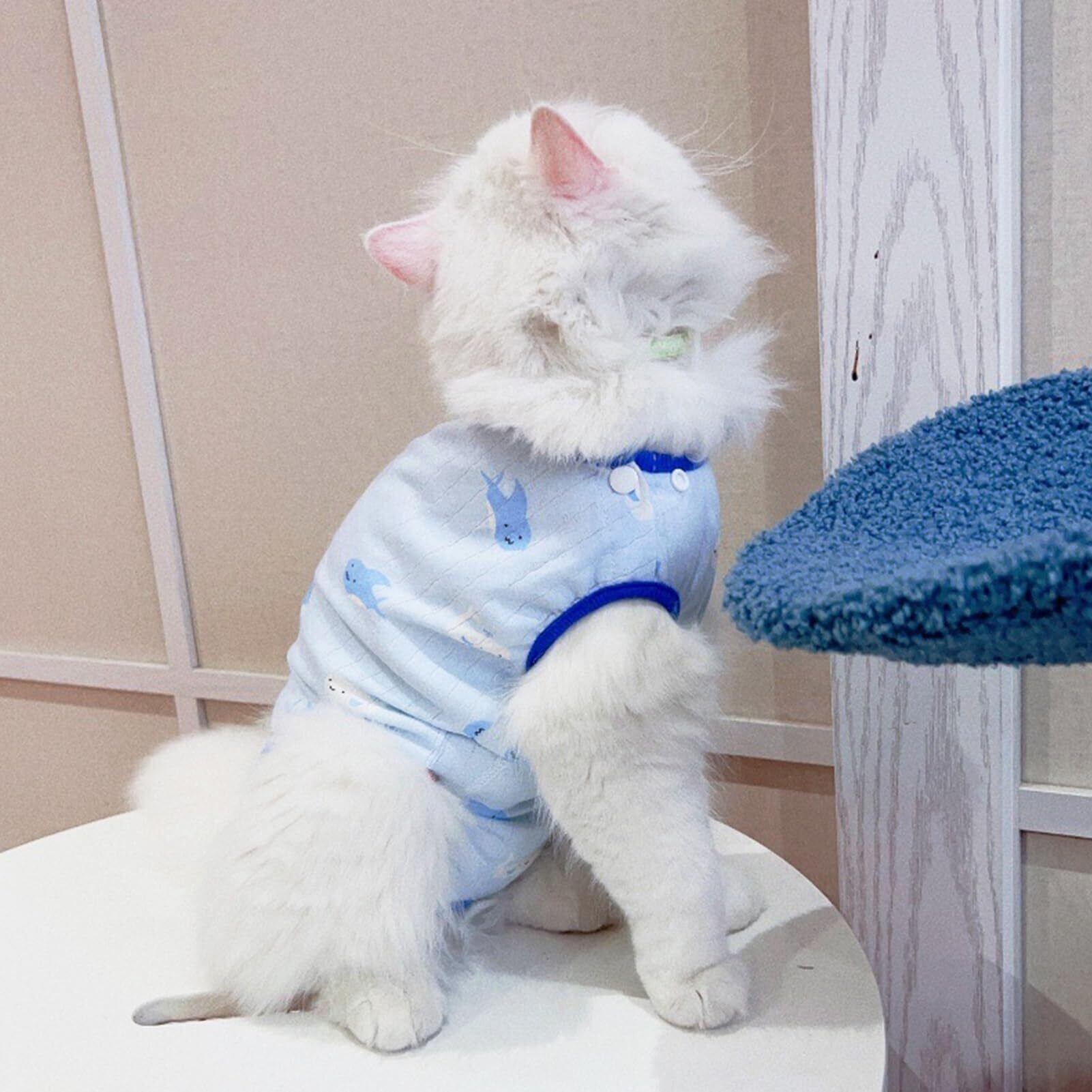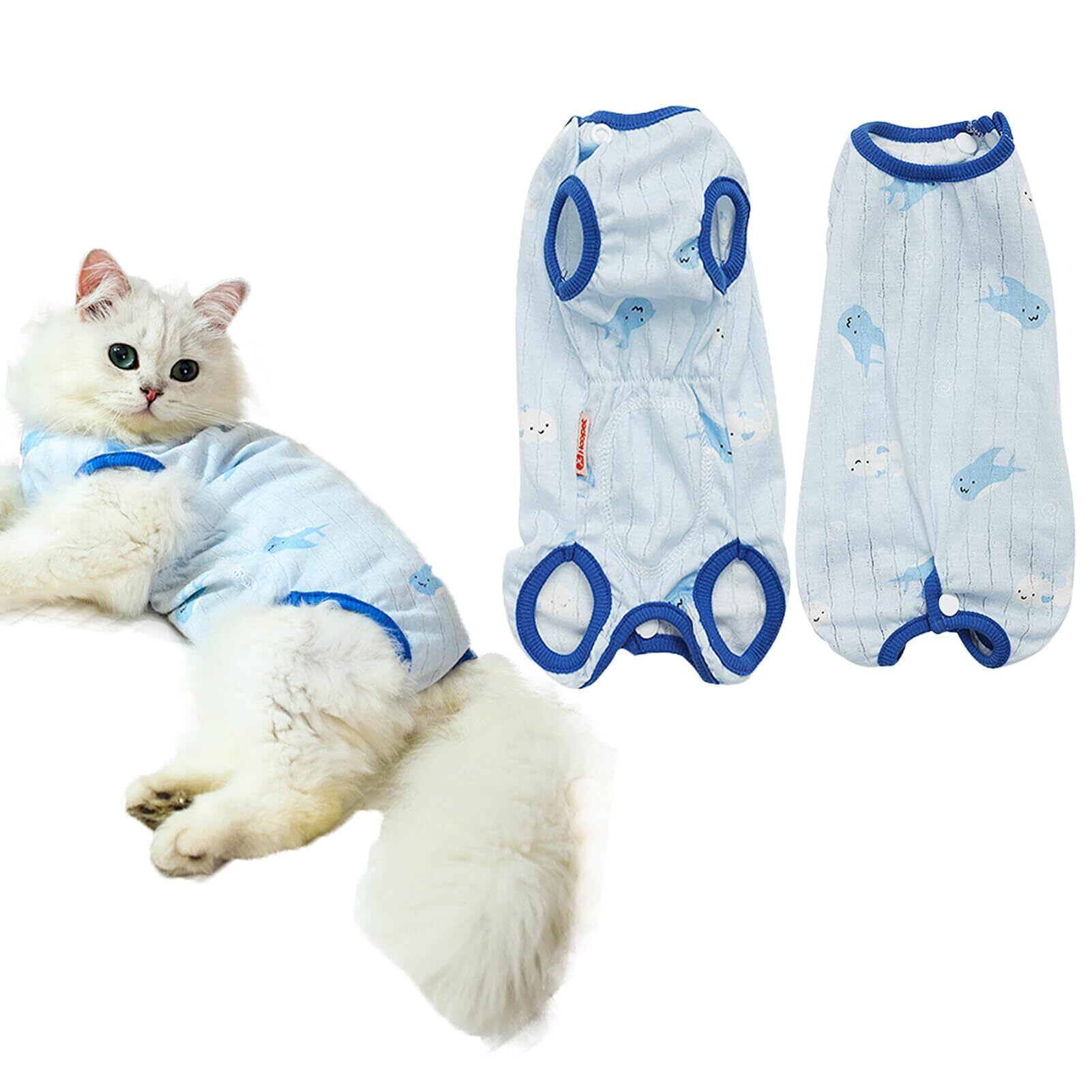Paipeper 猫 小型犬 術後服 術後ウェア 保護服 メス オス兼用 避妊 去勢 離乳 冷え防止 傷口保護 皮膚病 抜け毛防止 着脱簡単 エリザベスカラーに代わり(ブルーホエール S)