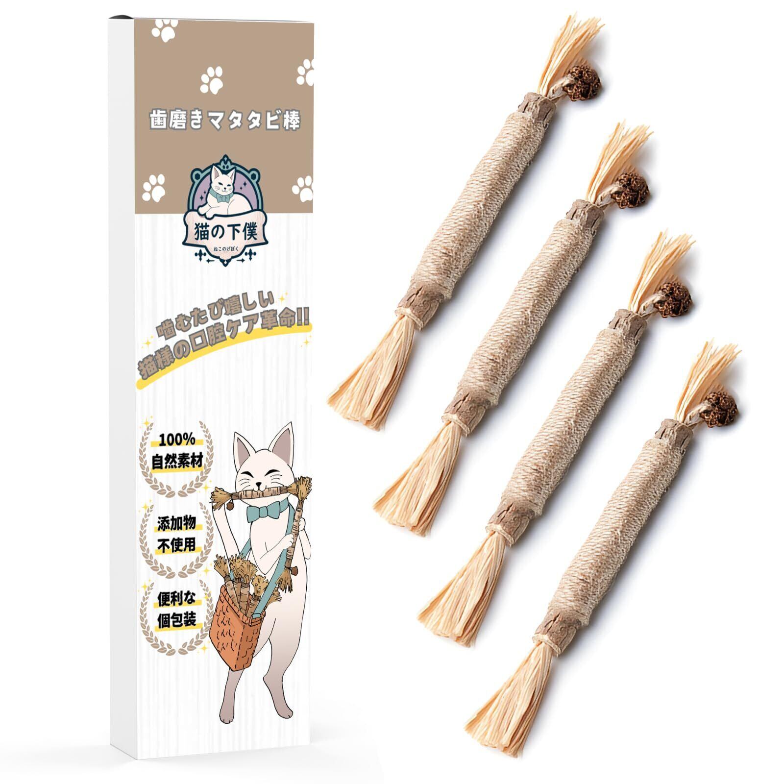 【食品衛生法の基準に適合】 猫の下僕 噛むおもちゃ 歯磨き またたび 歯ぎしり棒 一人遊び デンタルケア オーラルケア 100%自然素材 便利な個包装 【4本入り】