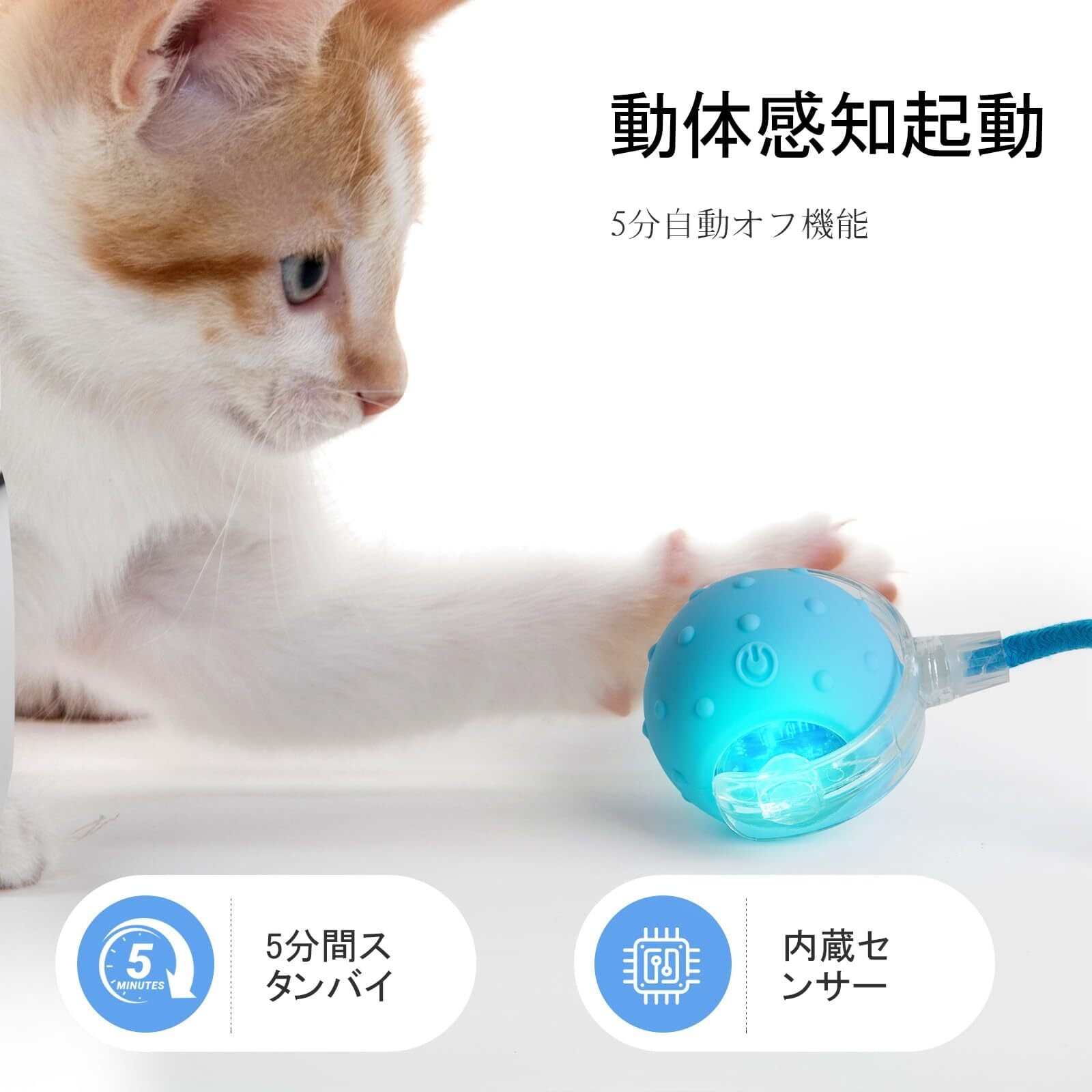 【自動起動機能】ペットが触れるのを感知すると即座に作動。飼い主の操作なしで自動的に遊びが開始されます