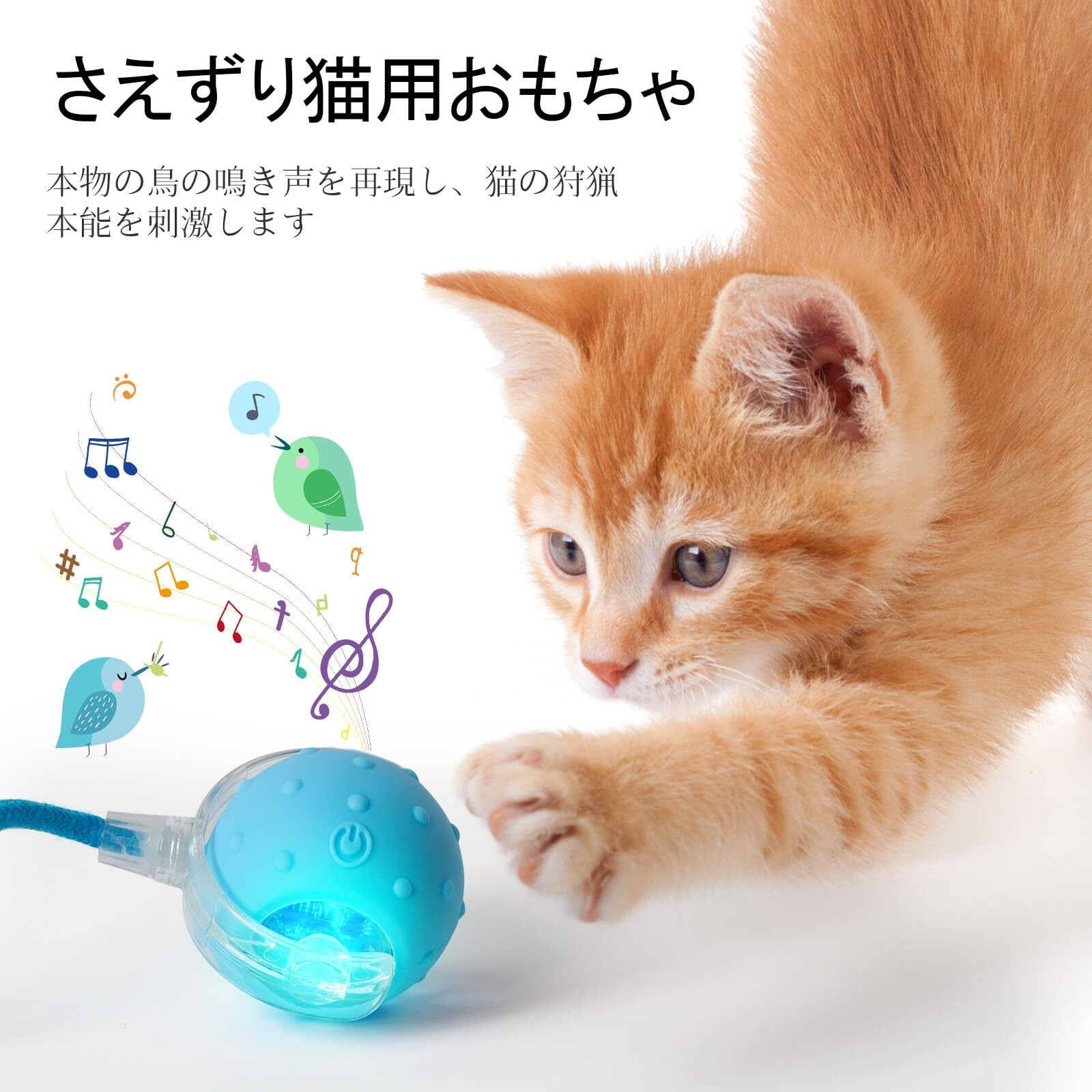 2025年最新アップグレード版 室内猫用 自動で動くボールおもちゃ バージョン3.0 鳥の鳴き声付き USB充電式 (ブルー)