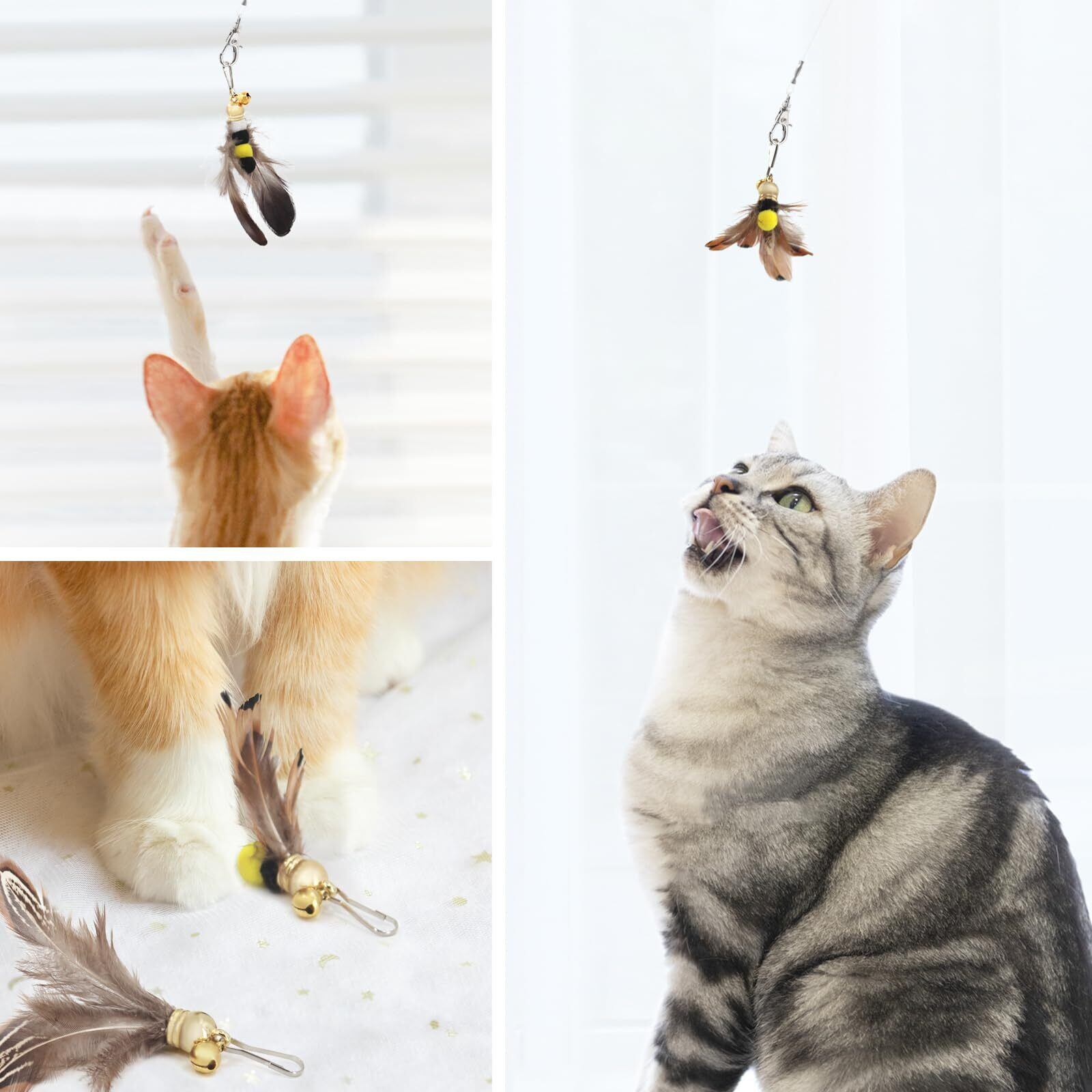猫のおもちゃ:天然の羽で作った小飛ぶ虫*8、猫ちゃんの好みによって、じゃらしを取り替えることができます。愛猫はきっと夢中になるはずです。