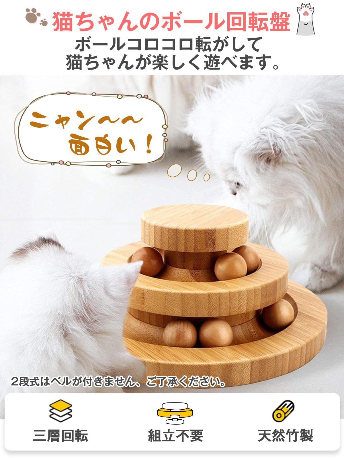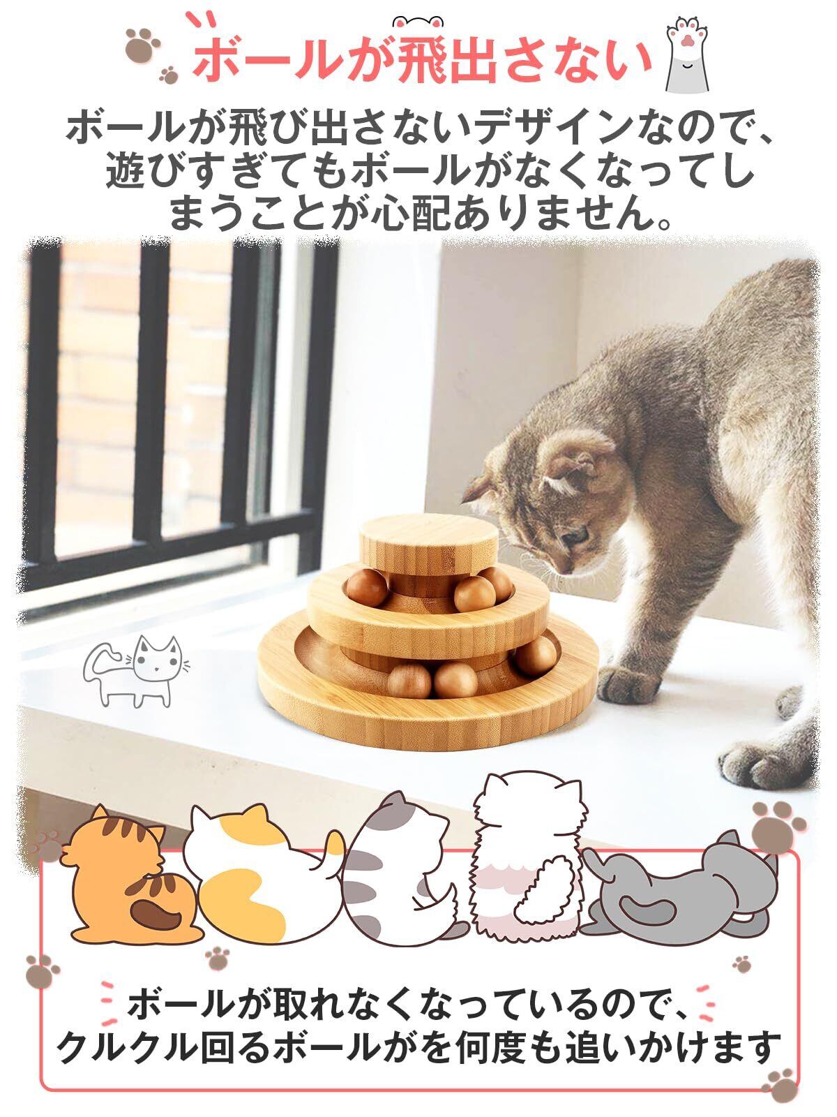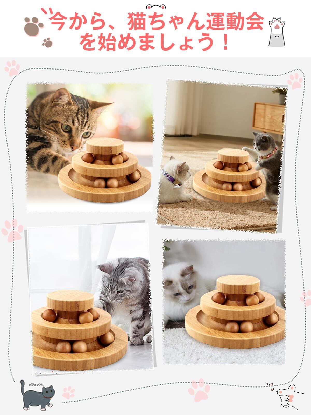 【楽しい二層構造】 このおもちゃには、各層に分かれて回転する木製のボールがあり、猫ちゃんがどれだけ突っついても捕まえることのできない、常に動き続けるターゲットを提供します。これにより、猫の興味を長時間引きつけ、運動と頭の体操を同時に促します。