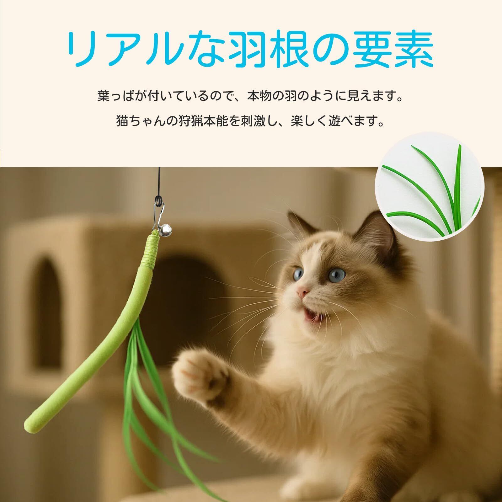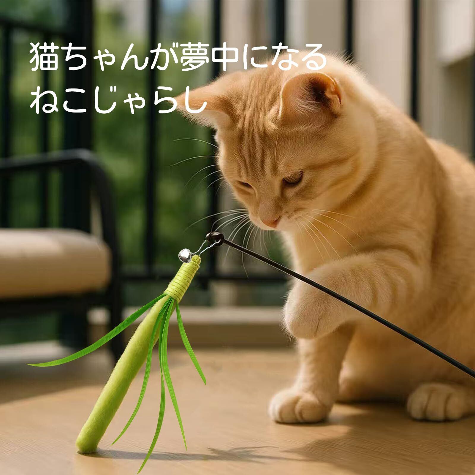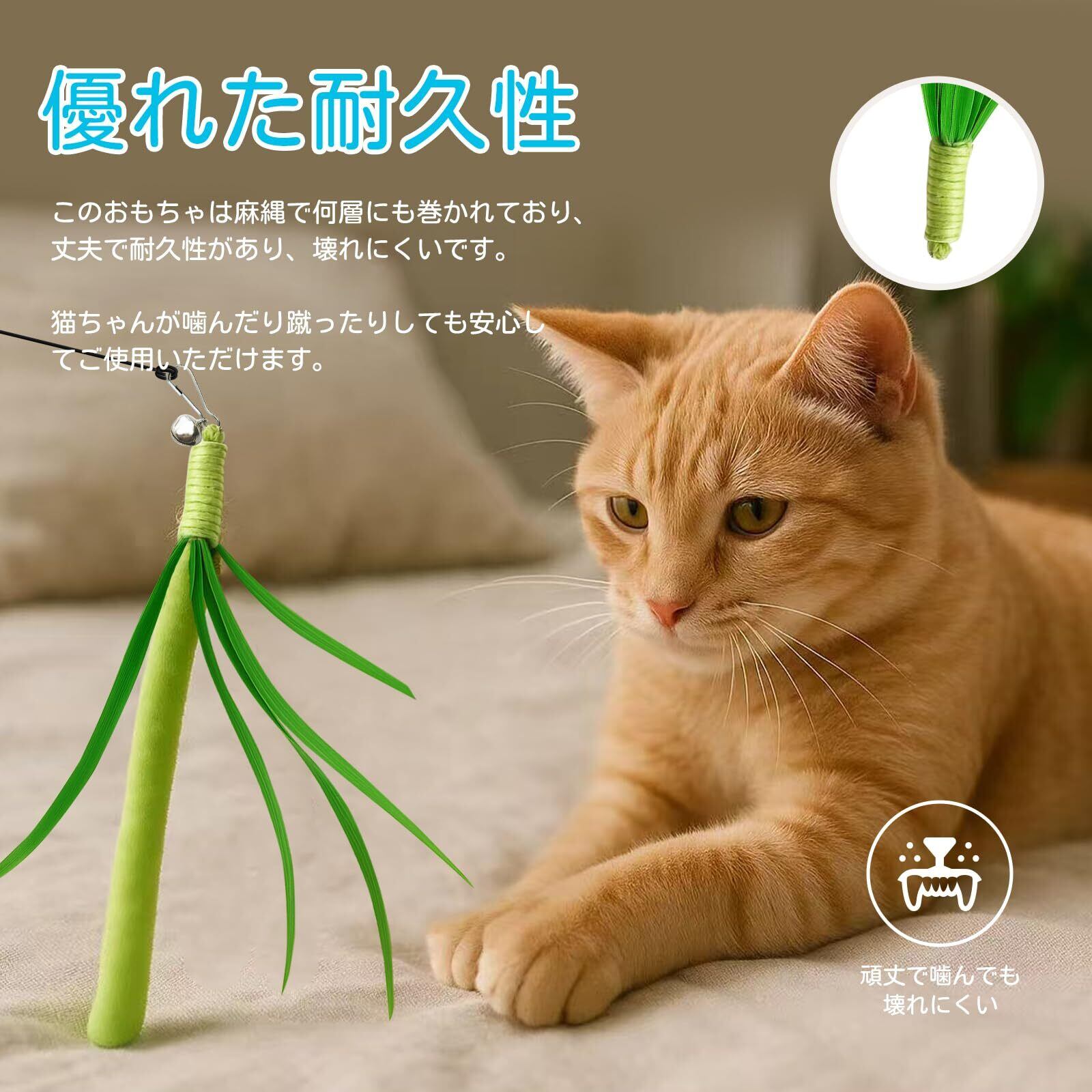 【2022最新】GHOSTCAT 猫じゃらし 猫おもちゃ 猫のおもちゃ ススキ草(エノコログサ) 頑丈 ねこじゃらし 1本釣竿付き 一人遊び 猫ストレス軽減 運動不足解消 グリーン | wakuwakuland