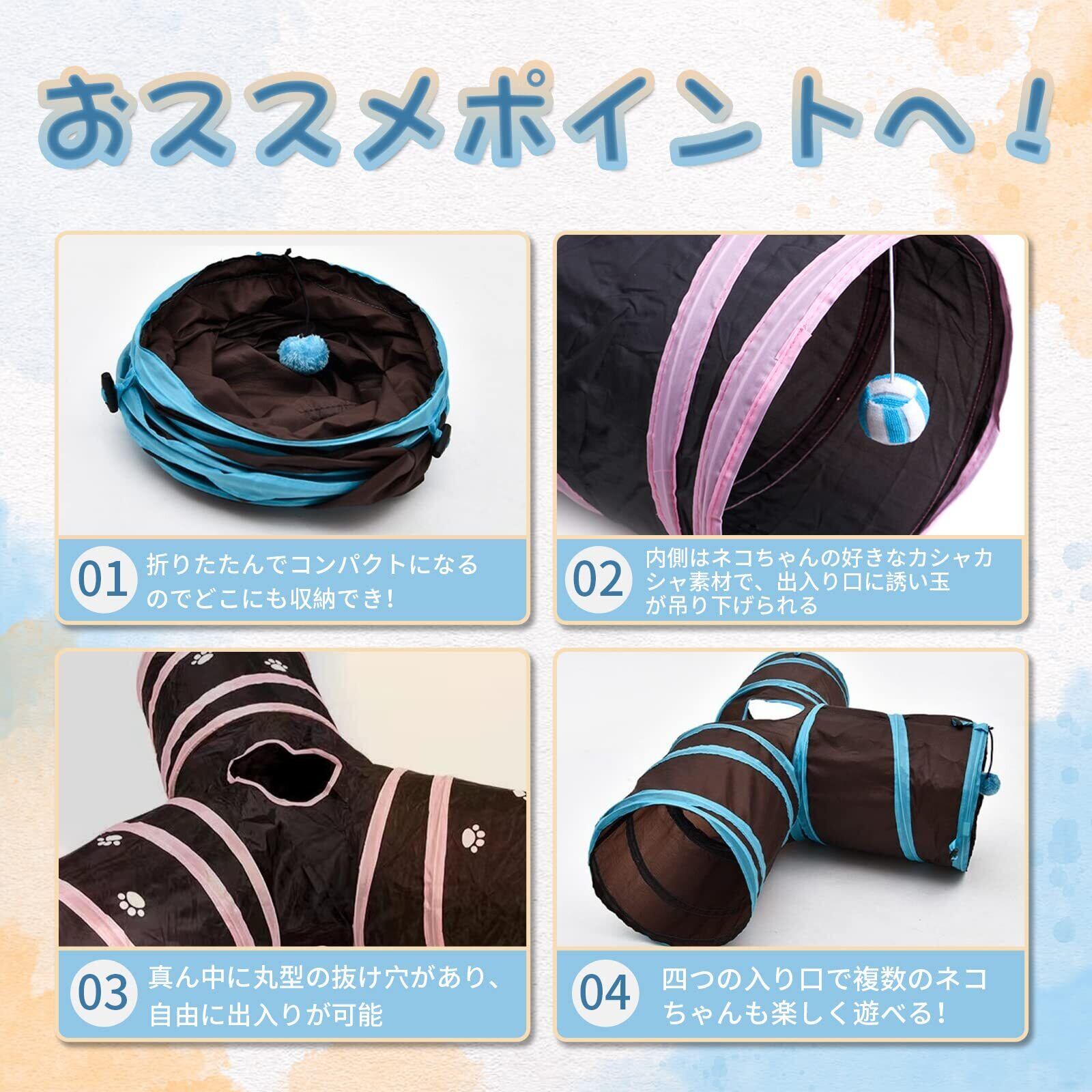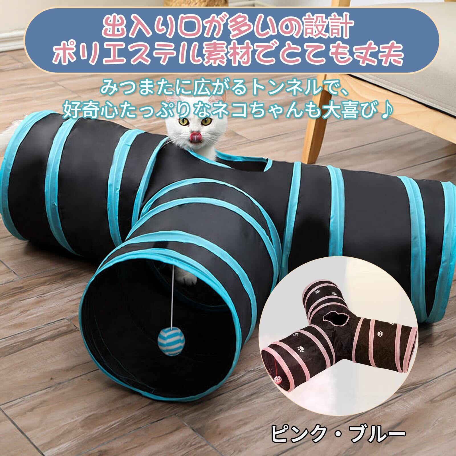 【カラー】トンネルには、女の子用の「ピンク」と男の子用の「ブルー」の2色があります。猫の性別や性格、家の雰囲気に合わせてお好きな色をお選びいただけます。