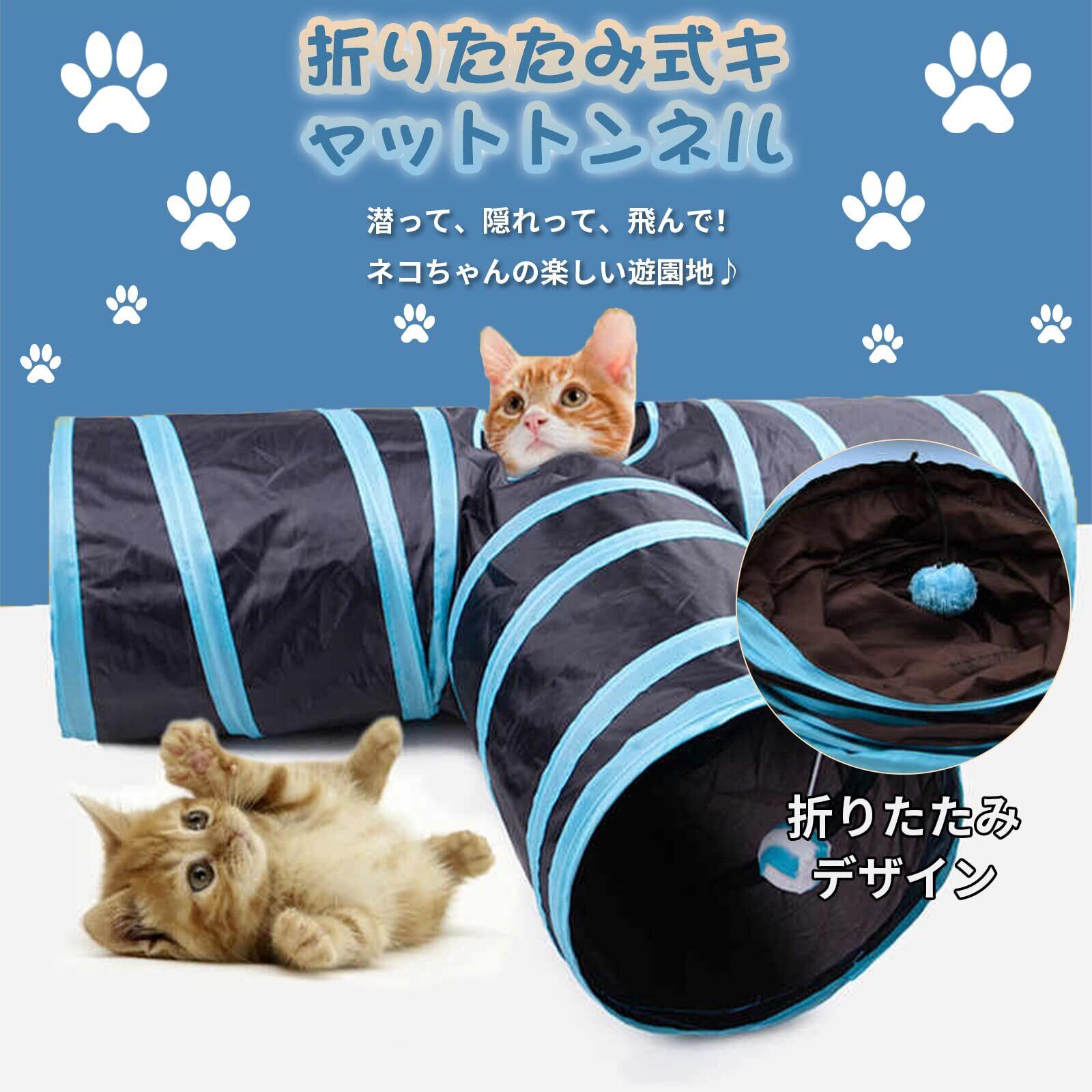 【在庫セール】トンネルペット用の おもちゃ トンネル ペット玩具, 猫トンネル ペット用品おもちゃ キャットトンネル 折りたたみ式3つのトンネル 子犬 うさぎ フェレットなど噛むおもちゃ ボールに付き おまけ:猫のいたずら棒 (ブラック) | wakuwakuland