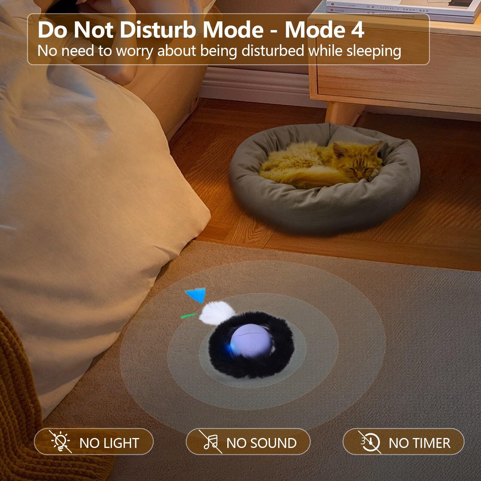 【あなたとペットの調和のとれた生活】: 配慮のある「おやすみモード」により、ボールが夜間に自動的に起動することがなくなり、あなたとペットが安らかに眠ることができます。ボールはシリコンとプラッシュ素材で作られており、静かに動き、騒音を効果的に低減します。