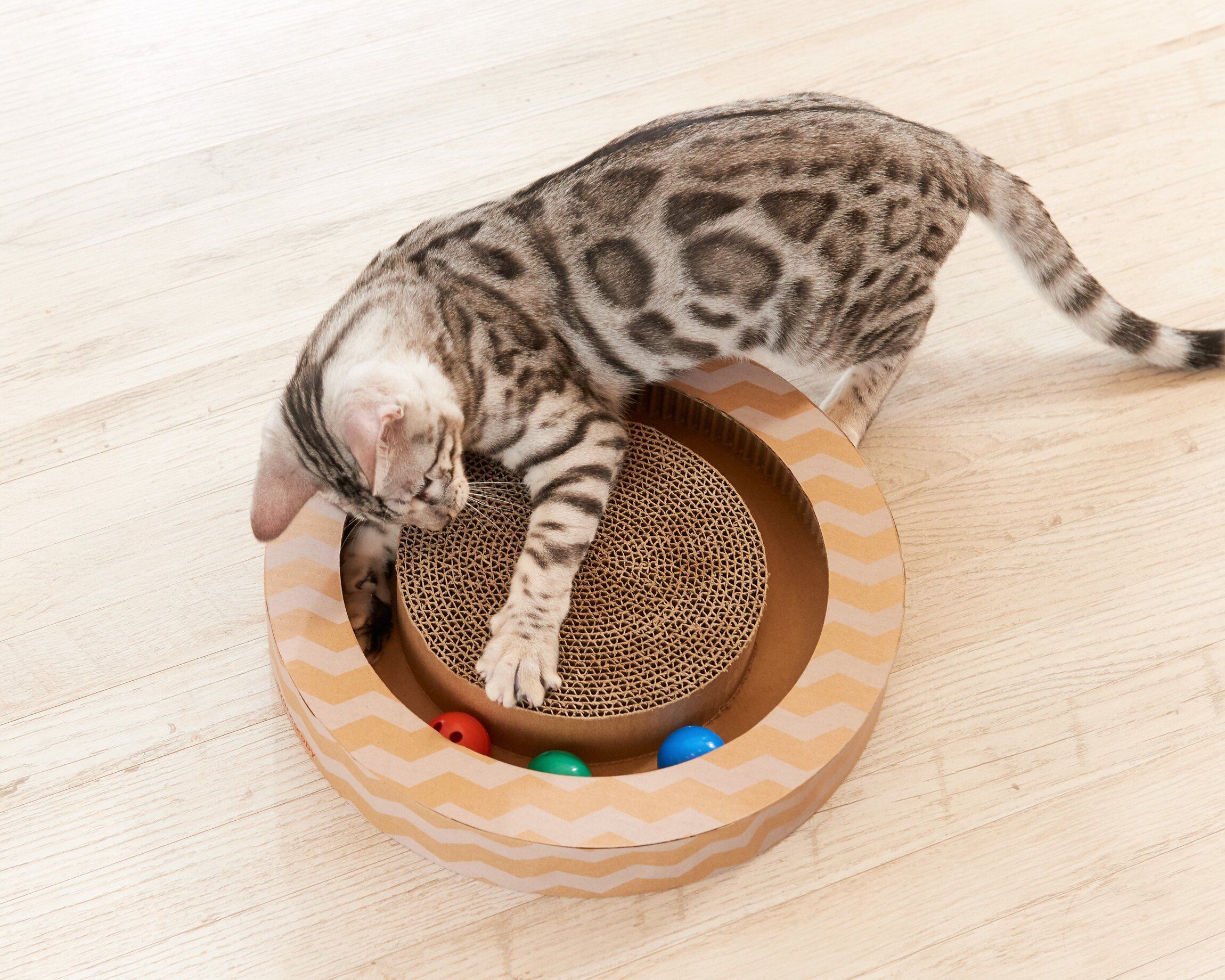 愛猫専用の爪とぎ付きおもちゃです。アクティブボールと長持ち爪とぎがポイントで、くるくるまわるボールにネコちゃん夢中。コロコロボールで遊んだあとは、ゆっくりくつろぎながら爪を研げる一台二役、二倍楽しい優れもの
