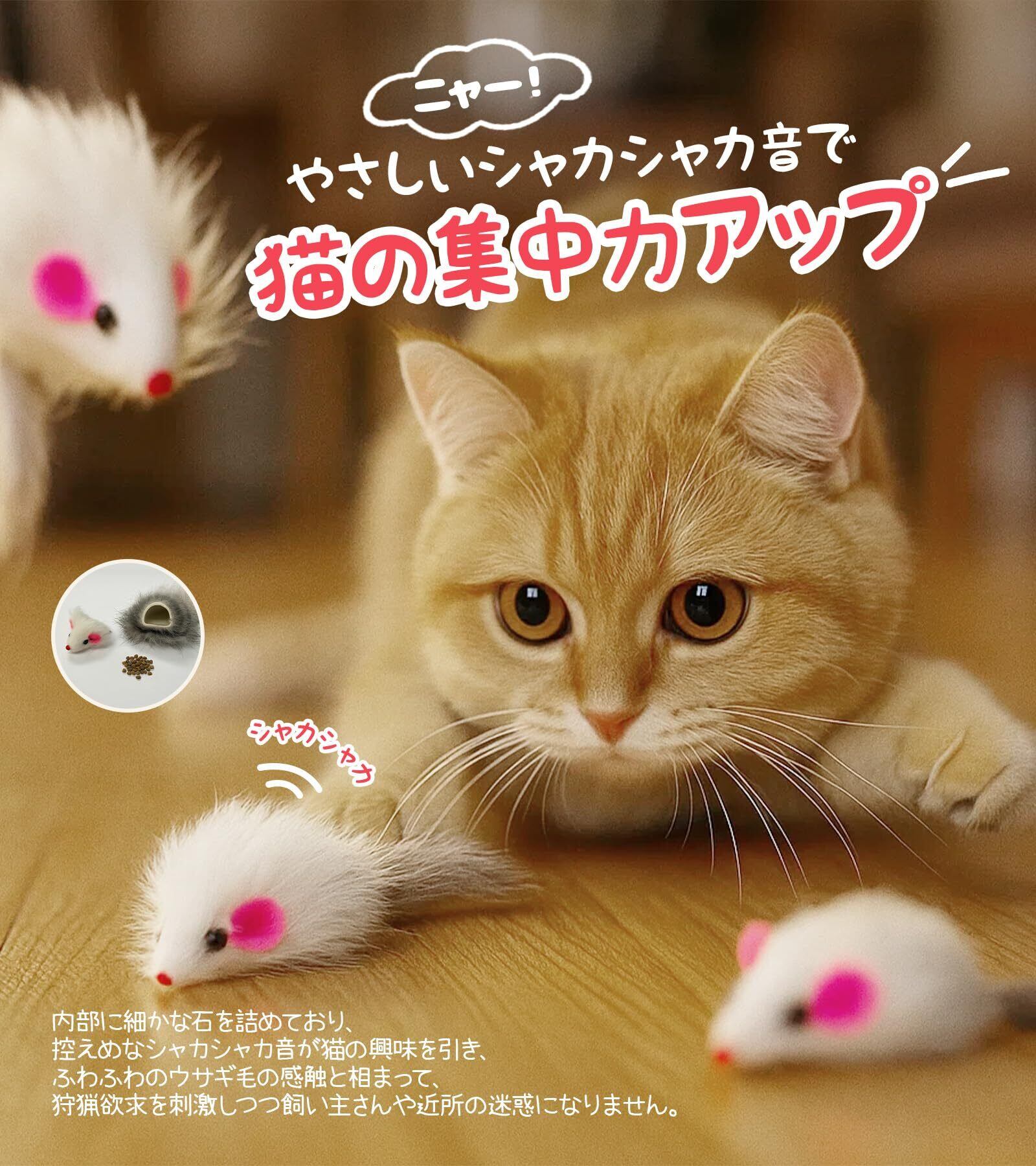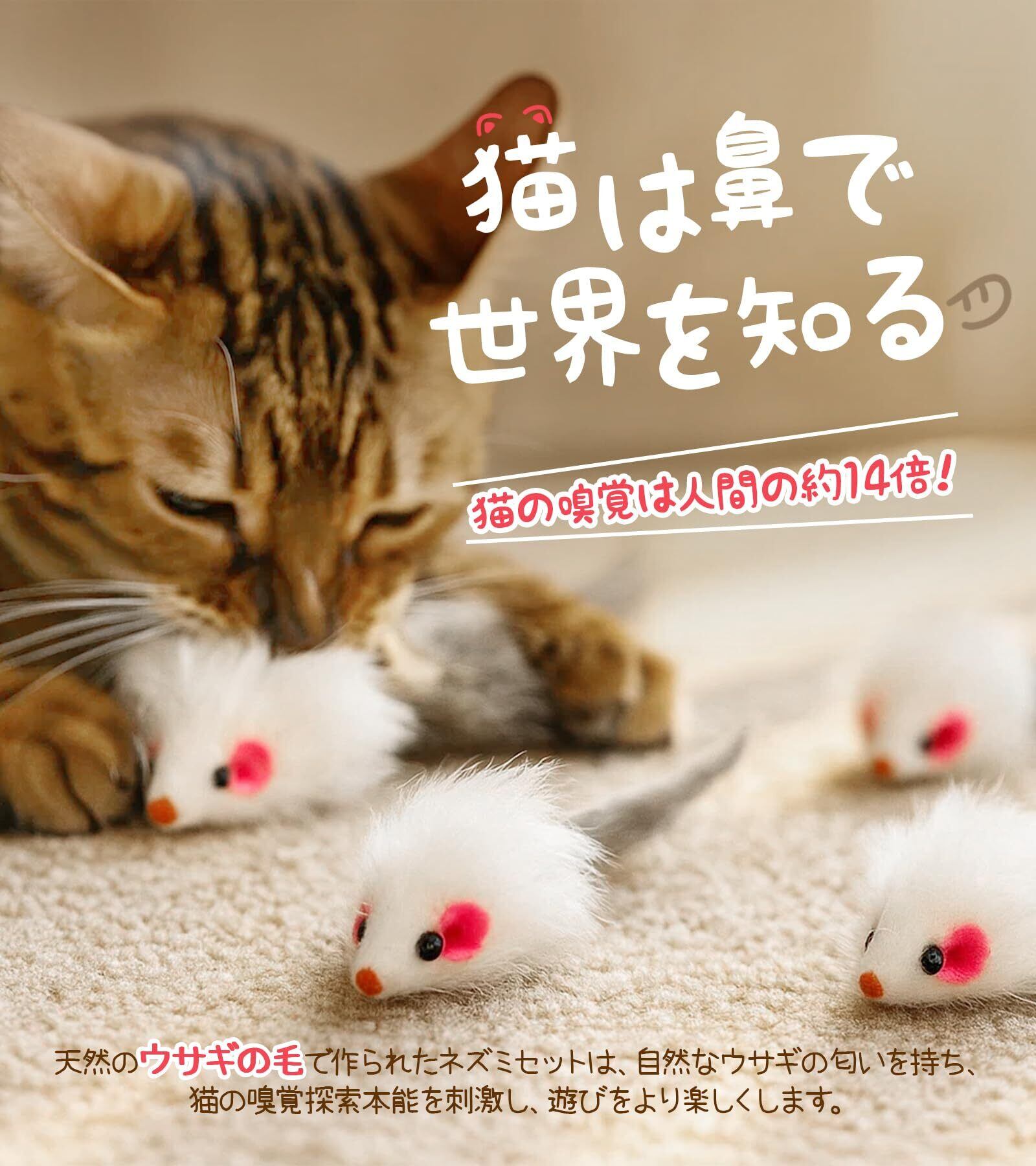 【特価セール】HOLYCAT 猫 おもちゃ ネズミ 猫のおもちゃ ねずみ シャカシャカ 天然 無着色 天然ラビットファー ウサギ毛 滅菌済み ふわふわ柔らか 猫 噛む おもちゃ ひも 静音設計 運動不足解消 ストレス軽減 豊容 嗅覚用 知育 猫遊び 子猫 成猫 高齢猫 猫 かみかみ おもちゃ 5個 セット | wakuwakuland