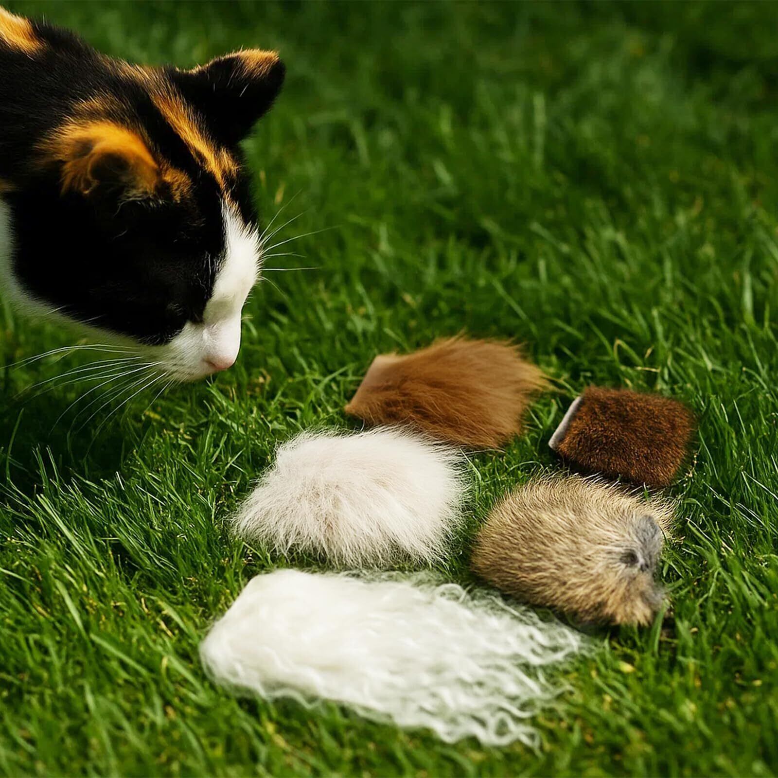 Lunarcat 猫 おもちゃ 天然 猫じゃらし 動物の毛 5種 知育玩具 室内運動 一人遊び 噛むおもちゃ 獣毛 ストレス解消 ノーズワーク ふわふわ 豊容トイ(エンリッチメント) 嗅覚用 成猫 子猫 高齢猫 猫玩具