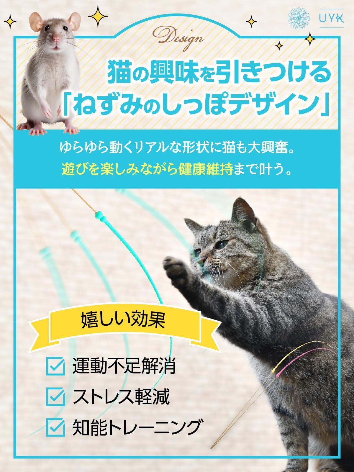 【食い付き激ヤバ!本能を刺激!大興奮!】UYK 猫 おもちゃ 猫じゃらし ねこじゃらし ネズミのしっぽ シリコン製 超軽量タイプ 3本セット 3色入り 安心素材 頑丈 運動不足 ストレス解消用 竹棒スペア付き 壊れにくい 取扱説明書付き ペット用品