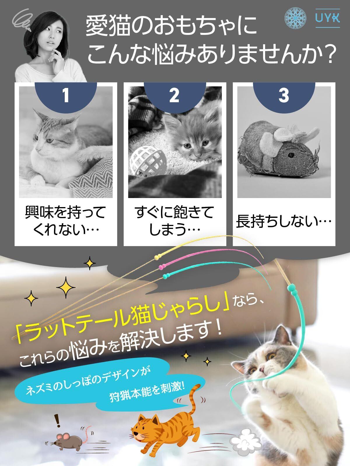 【特価セール】【食い付き激ヤバ!本能を刺激!大興奮!】UYK 猫 おもちゃ 猫じゃらし ねこじゃらし ネズミのしっぽ シリコン製 超軽量タイプ 3本セット 3色入り 安心素材 頑丈 運動不足 ストレス解消用 竹棒スペア付き 壊れにくい 取扱説明書付き ペット用品 | wakuwakuland