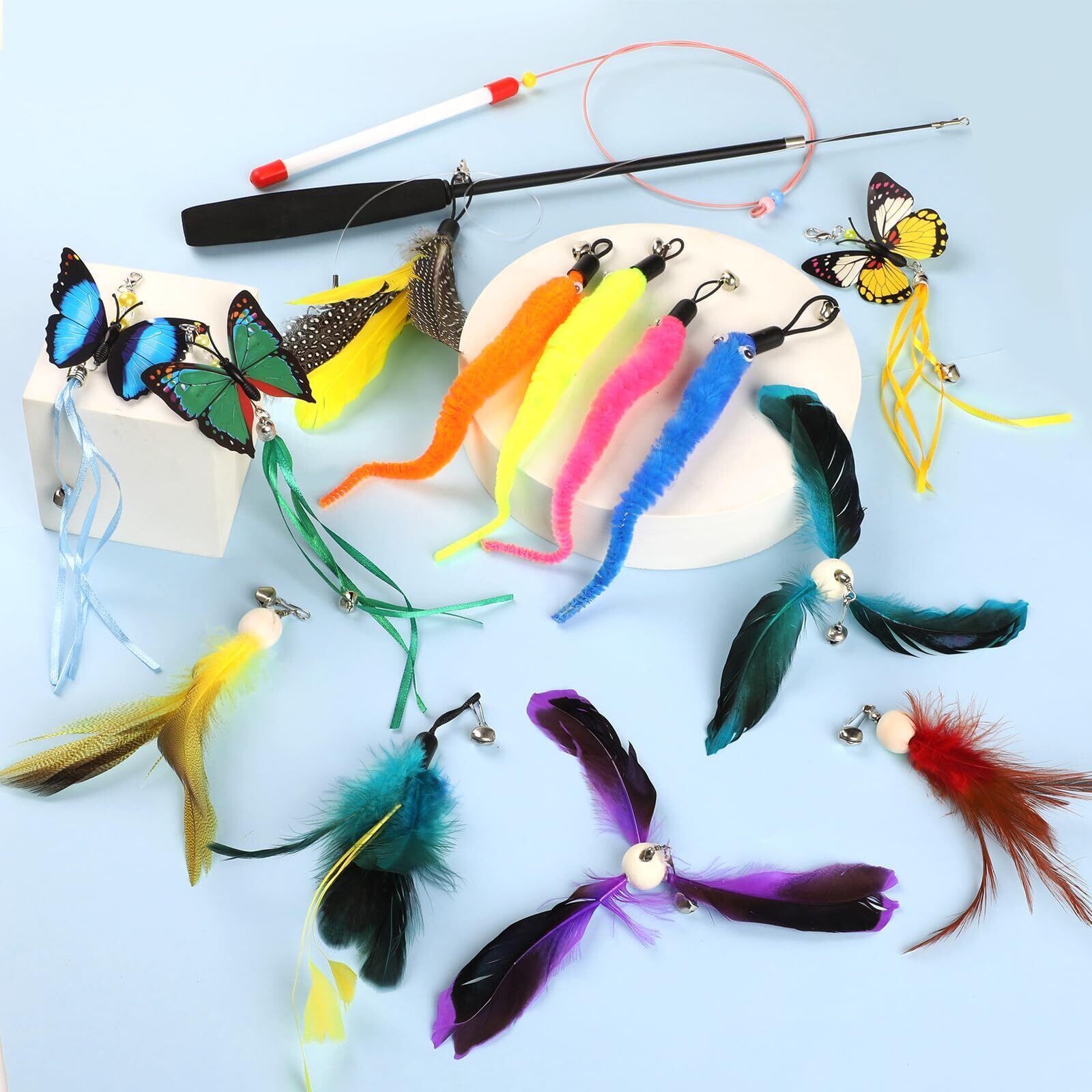 【2022最新】16 点セット Geepen 猫おもちゃ 猫じゃらし 羽のおもちゃ 天然の羽棒鈴付き ぶらぶら 猫のおもちゃ ペット用品 伸縮できる釣り竿 室内ゲーム用具 ペットグッズ 猫用品 猫と遊ぶ | wakuwakuland