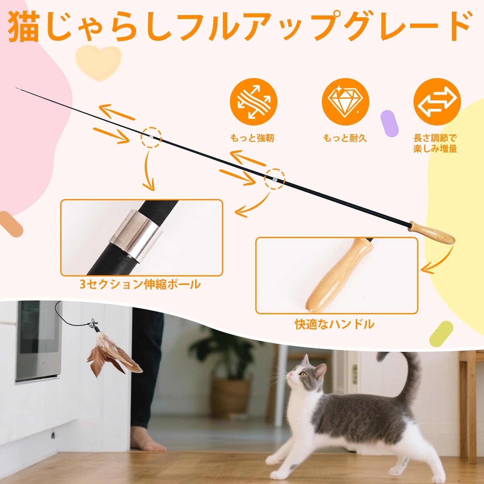 猫じゃらし 猫おもちゃ 伸縮式ハンドル 羽根おもちゃ 羽のおもちゃ 頑丈な釣り竿 切替でき 運動不足解消 3セット