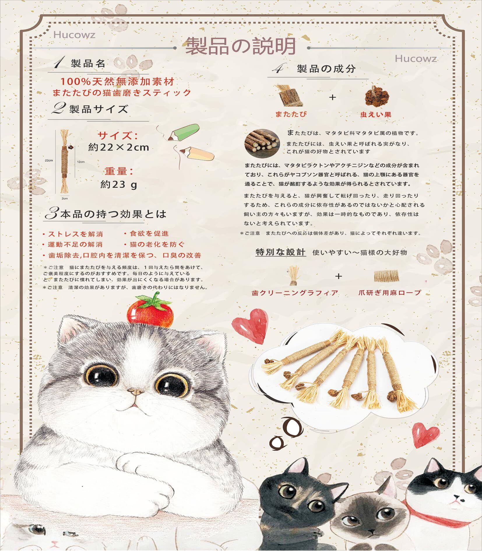Hucowz猫の歯ぎしり棒100%天然無添加素材またたびの木,猫 噛むおもちゃ,マタタビ 解消食欲を促進運動不足の解消猫の老化を防ぐ歯垢除去、口腔内を清潔を保つ、口臭の改善
