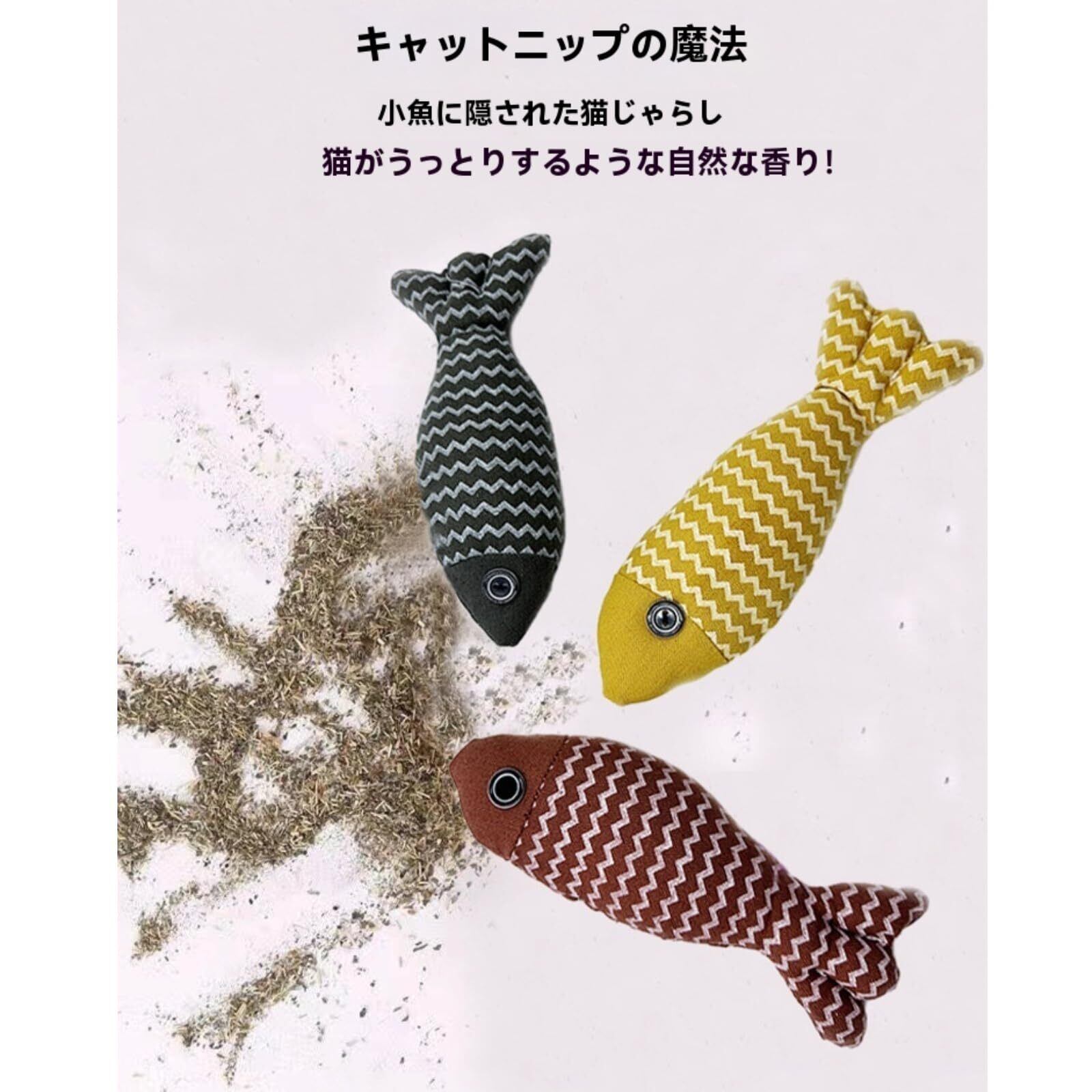 【新春セール】Outop 猫 おもちゃ 魚 またたび玩具 猫爪とぎ 猫用ぬいぐるみ ひとり遊び 天然キャットニップ入り 噛むおもちゃ 3点セット 猫 おもちゃ 一人遊び (黄,赤,グレーです) | wakuwakuland