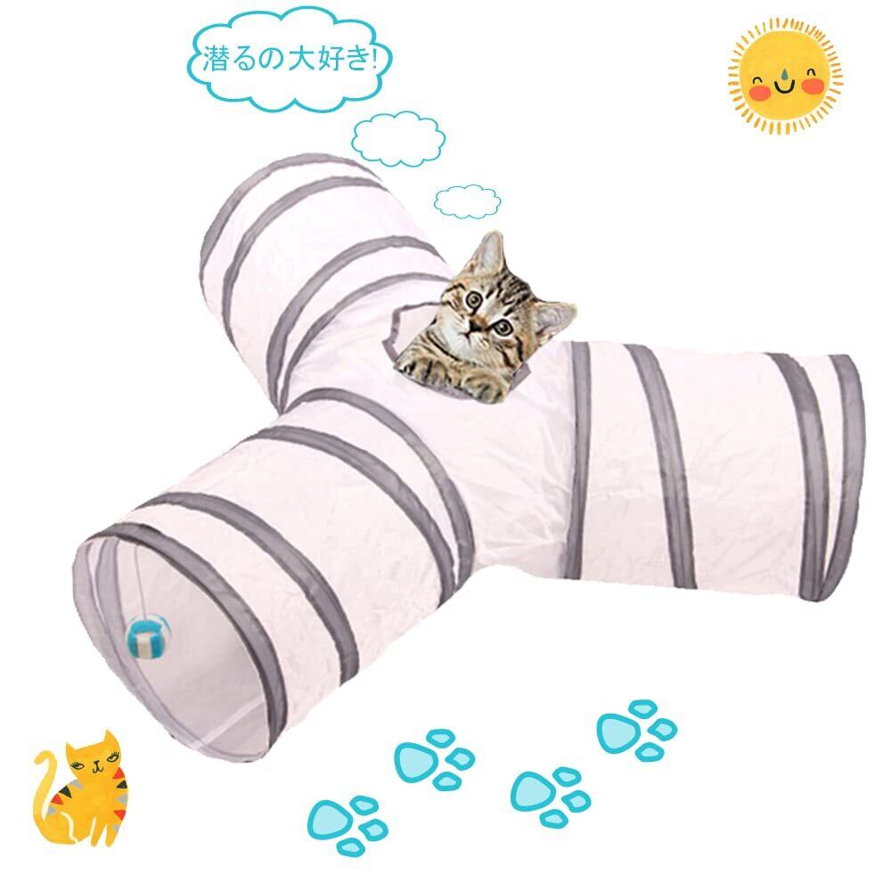 【習性にピッタリ】猫じゃらしのおもちゃに抜け穴、そして長くて狭いトンネルがネコちゃんの好奇心をくすぐり、飽きることなく遊んで頂けます。猫さんがトンネルを通るとシャカシャカ音が鳴るので猫さんも大喜び。猫ちゃんにエンターテイメントと運動の時間、素敵なペットの遊園地です!