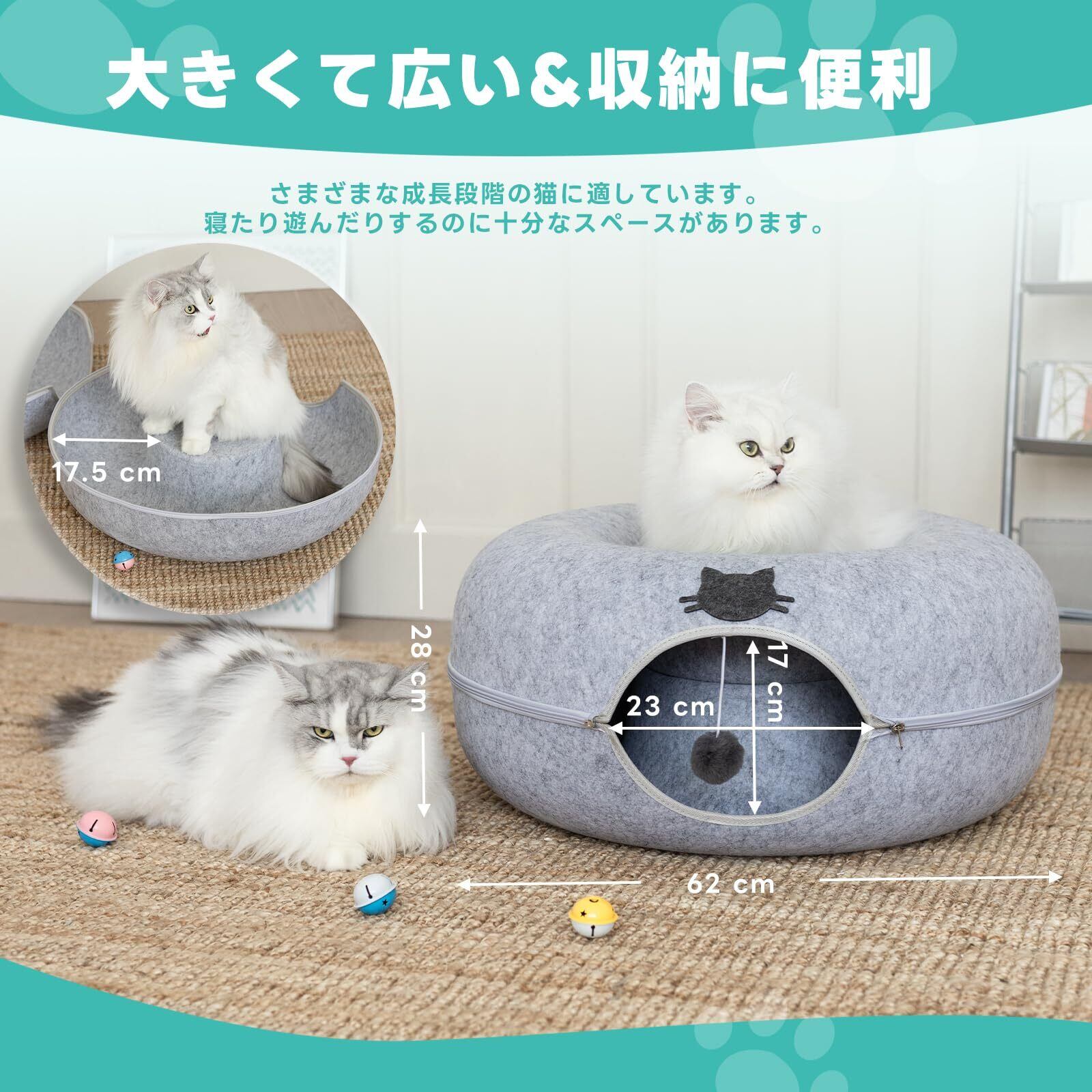 goteeki 猫 トンネル キャットトンネル 60*28CM 猫ドーナツ 猫 ベッド ドーム 取り外し可能 洗える猫用ベッド (ライトグレー)
