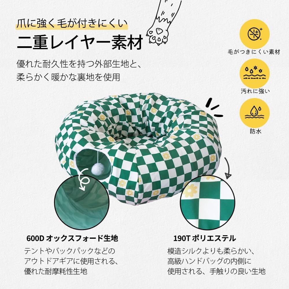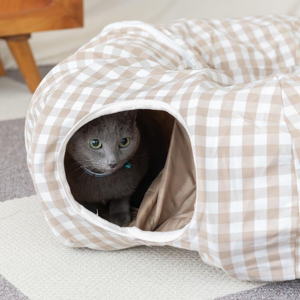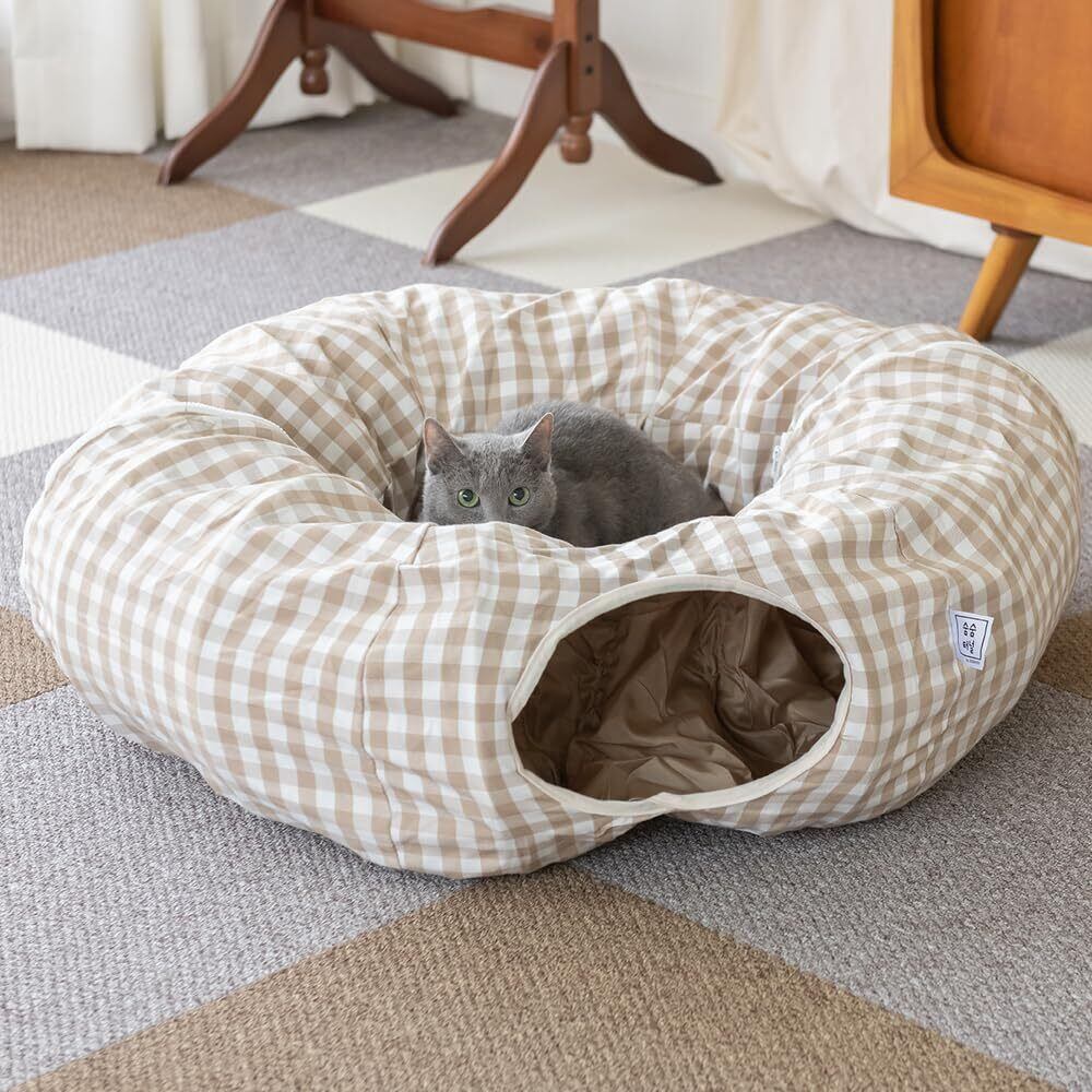 【遊び場の多様性】トンネルとハウスが一体化したデザインで、猫が隠れたり遊んだりできる楽しい空間を提供します。