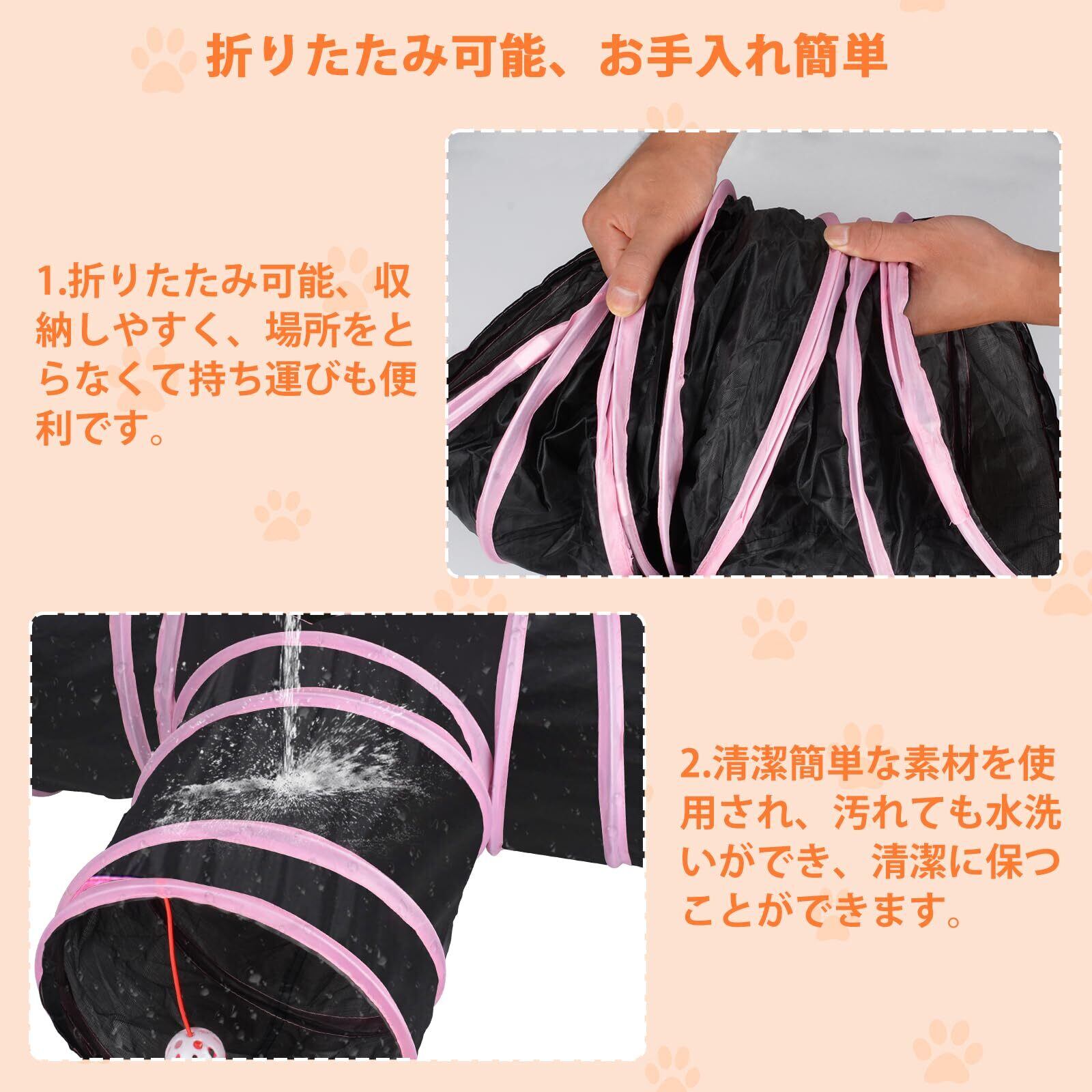 【人気商品】猫 トンネル 猫おもちゃ Oziral キャットトンネル T型 4穴付き 直径25cm 折りたたみ 収納便利 水洗い可能 ボール/ねずみおもちゃ付き 面白い玩具 一人遊び 猫遊び 運動不足解消 ストレス解消 子猫 猫遊び用品 ペット用品(10点セット)ピンク | wakuwakuland