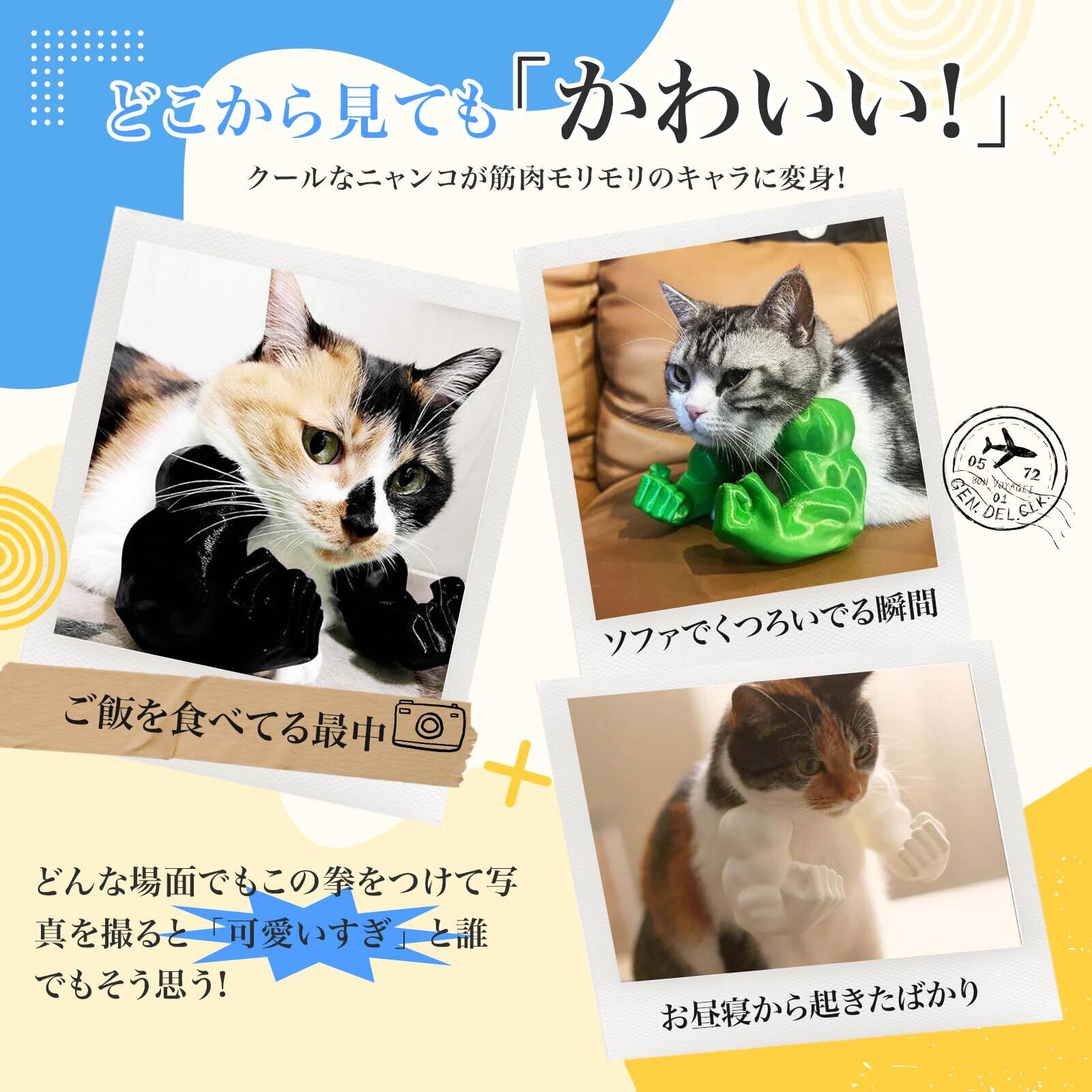 Cat Muscle Armsを装着すれば、愛猫が一瞬でスーパーヒーローに変身。バースデーパーティーのサプライズ小道具として、またはハロウィンコスプレのアクセントとして、笑いと感動の瞬間を創出します。軽量設計で猫の動きを妨げず、安全に楽しめる素材を使用しています。