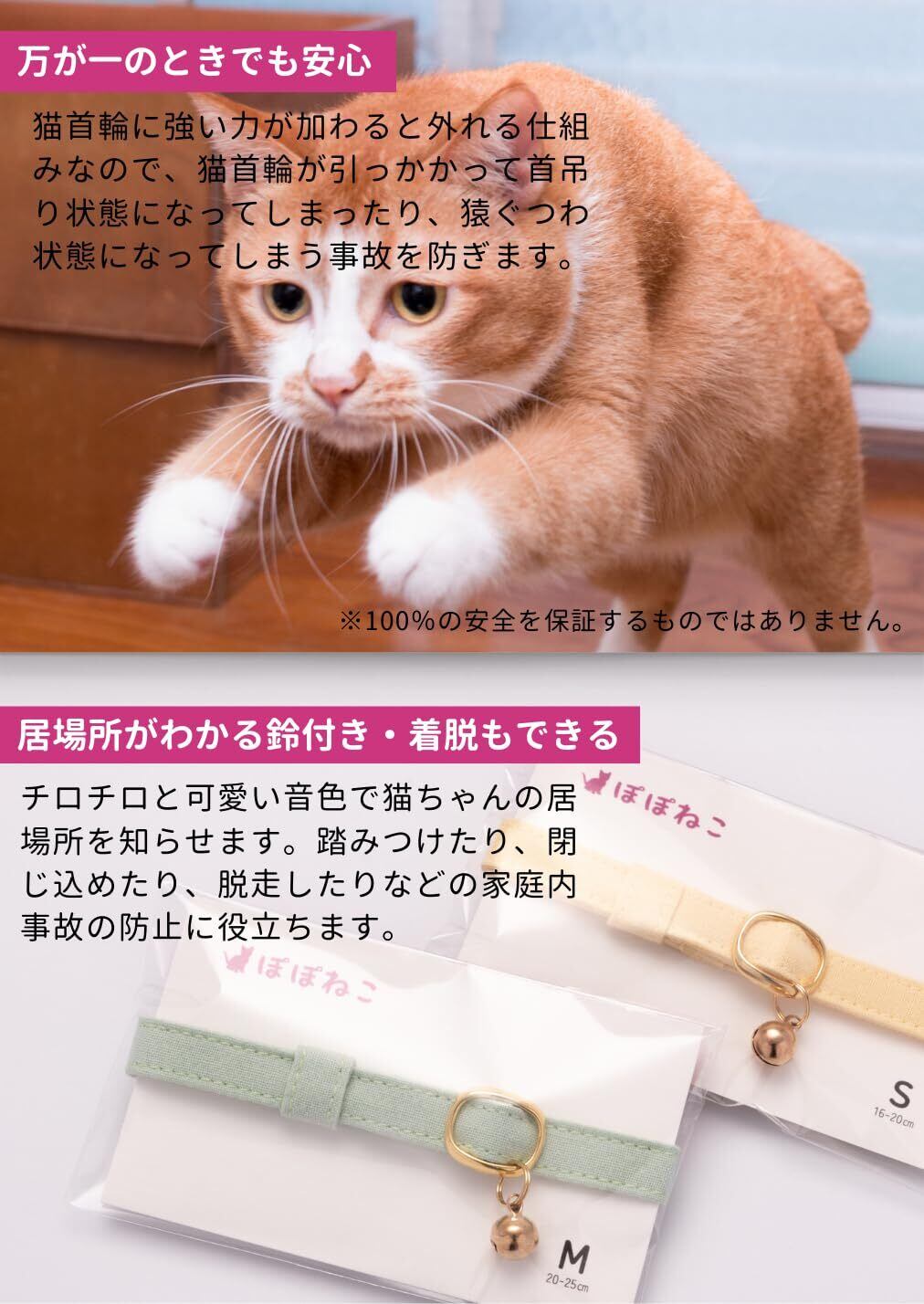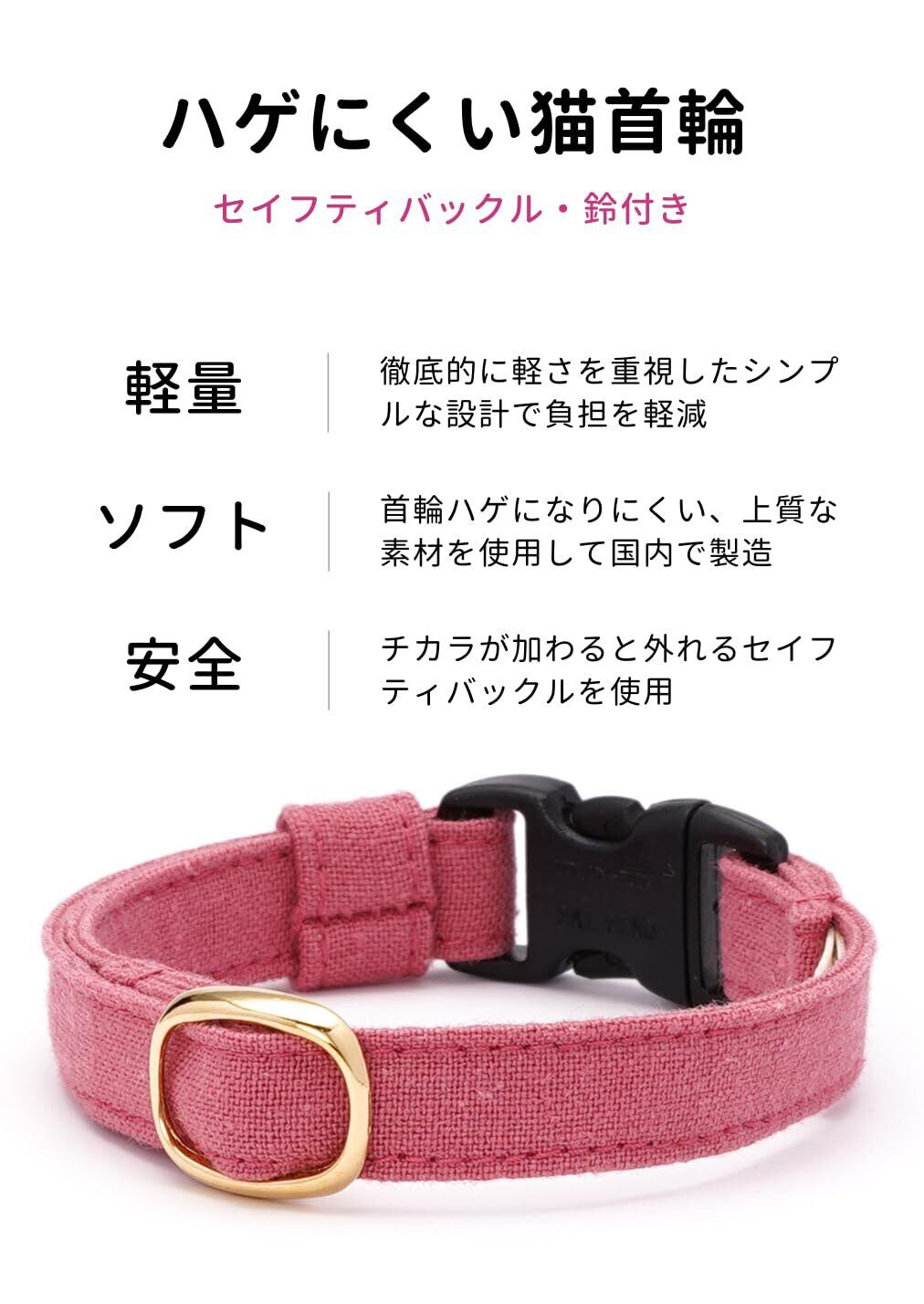 【特価セール】ぽぽねこ 猫首輪 MUJIコットンプレーン セイフティバックル・鈴付き・ハゲにくい (赤紅, M)