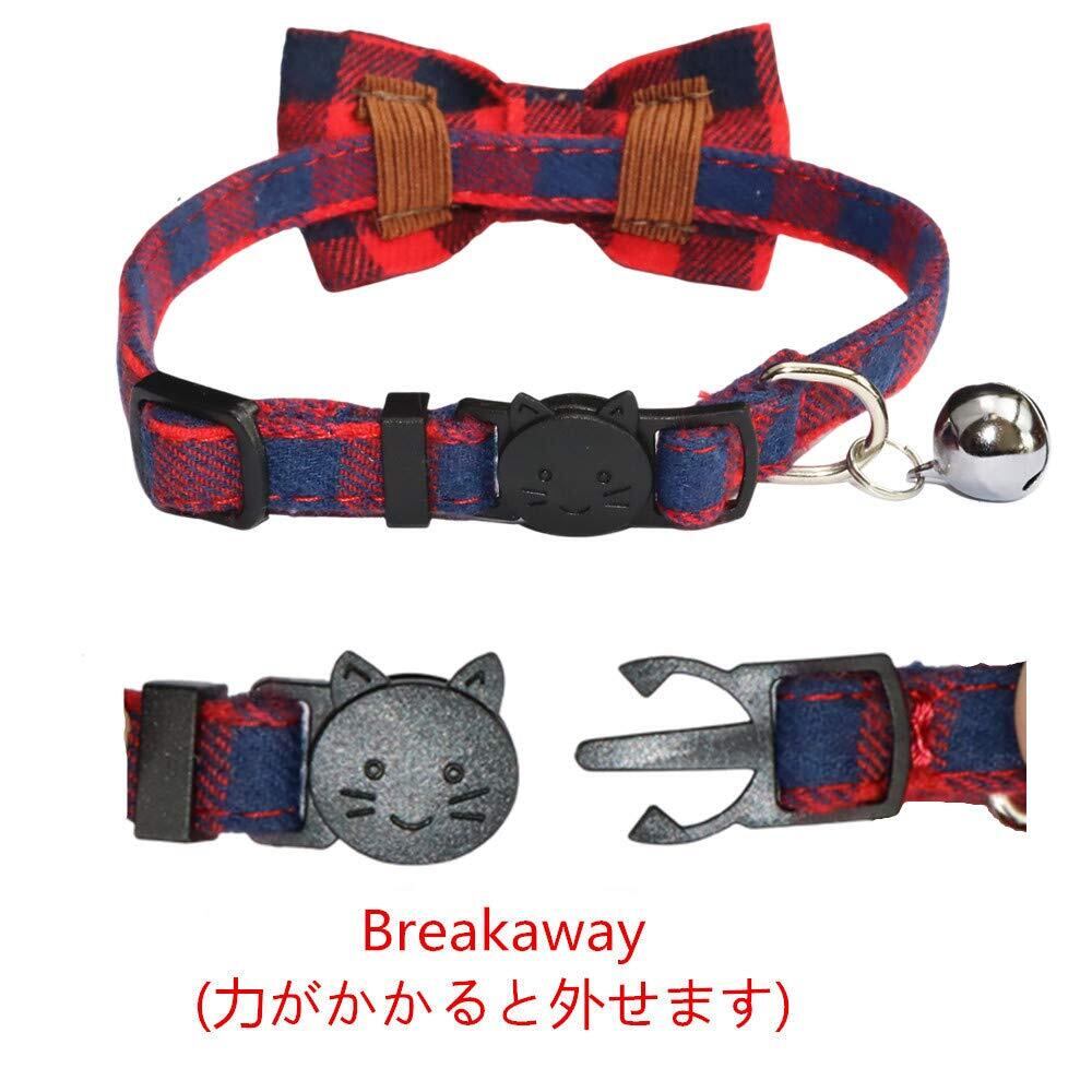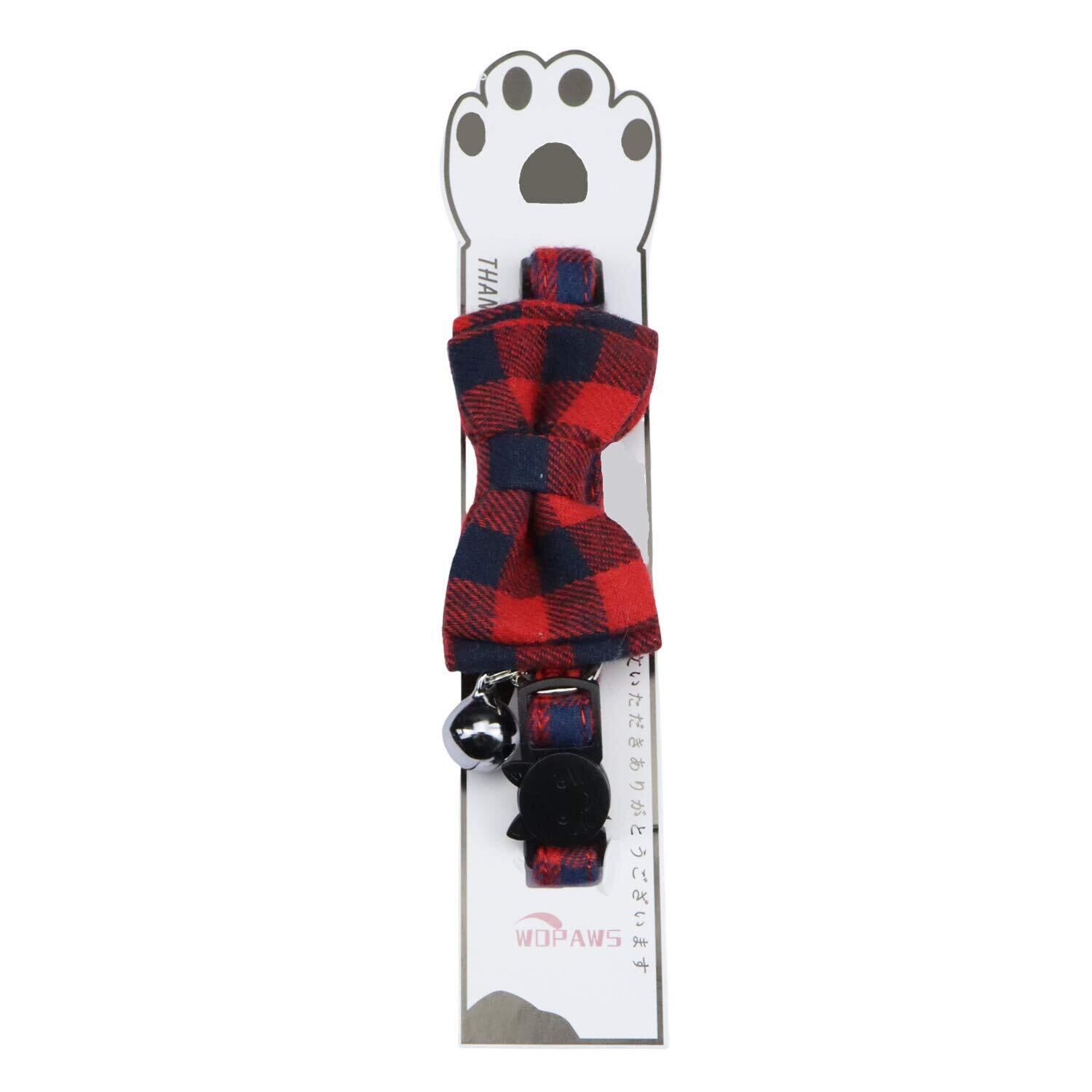 WDPAWS猫首輪 鈴付き 猫用首輪 調節可能 可愛い 蝶結び付き チェック柄 1本入り (レッド)