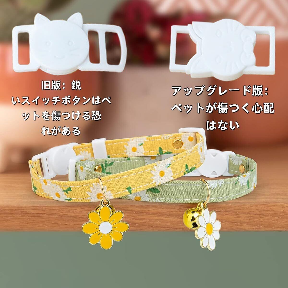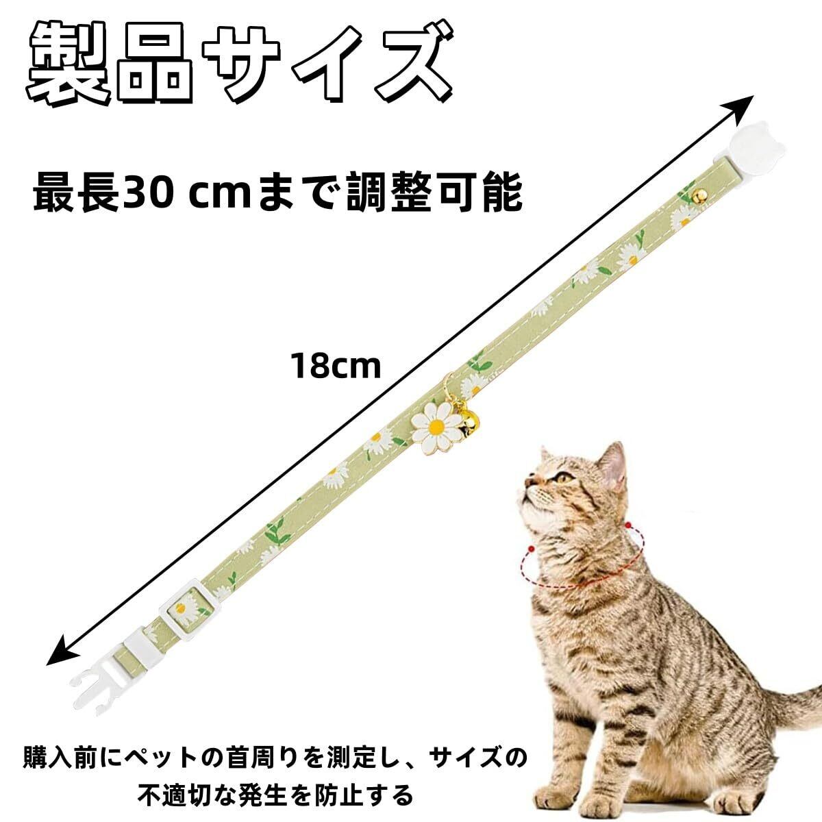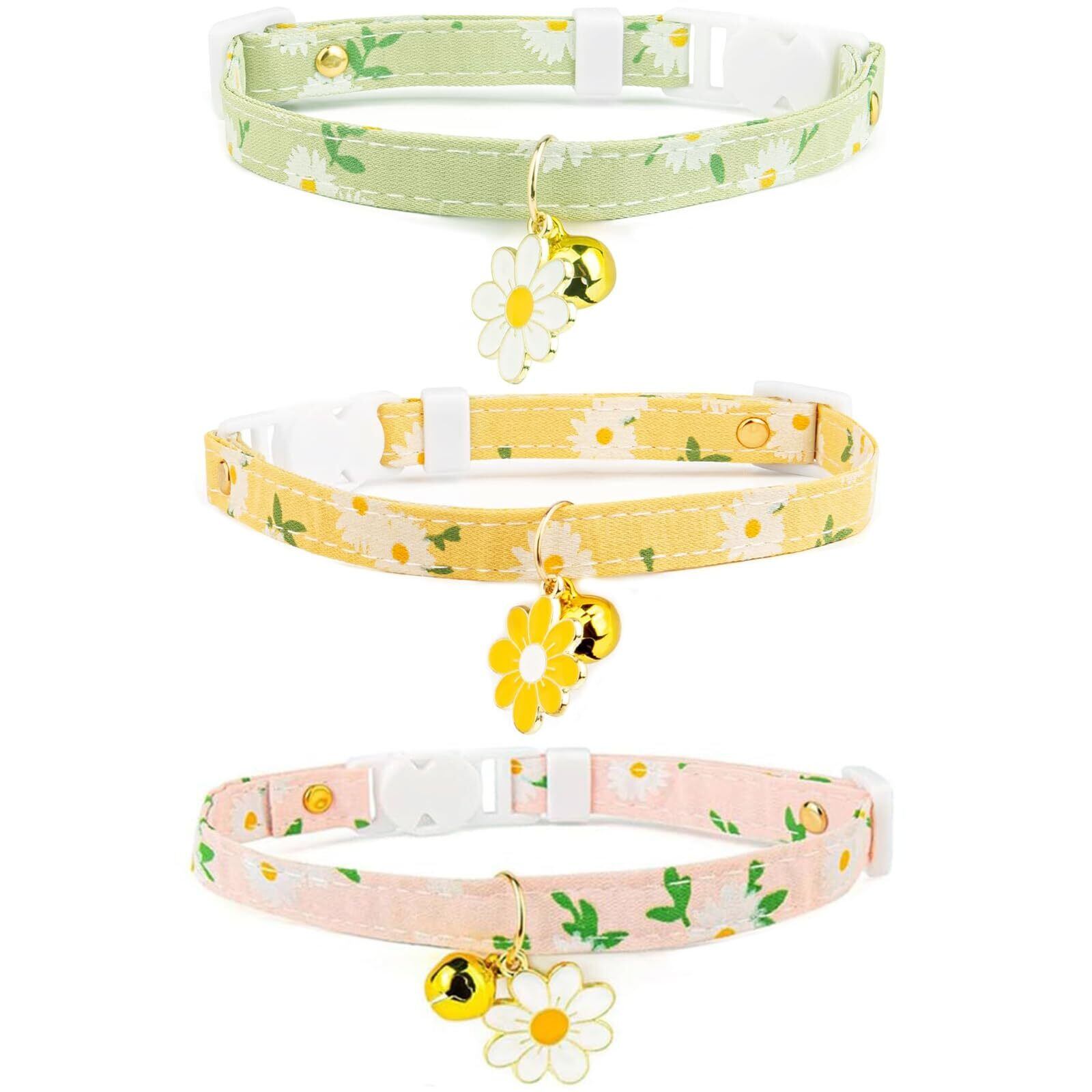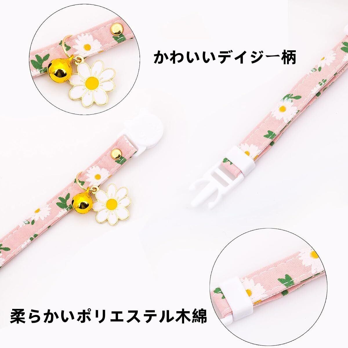 デージーの花柄 猫首輪 3個セット 鈴付き 超軽量 可愛い ネコ用 ペット首輪 セーフティバックル 調節可能