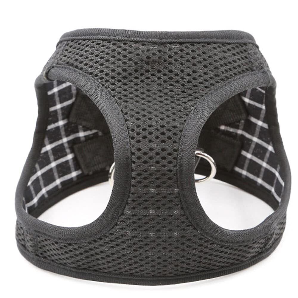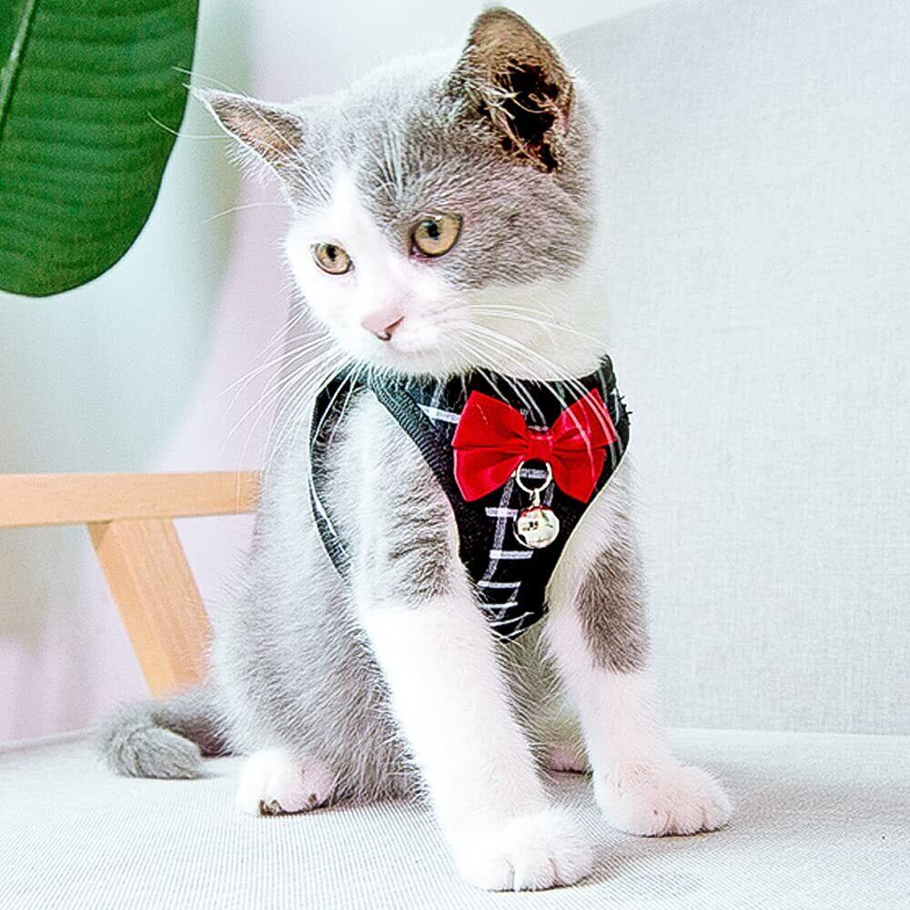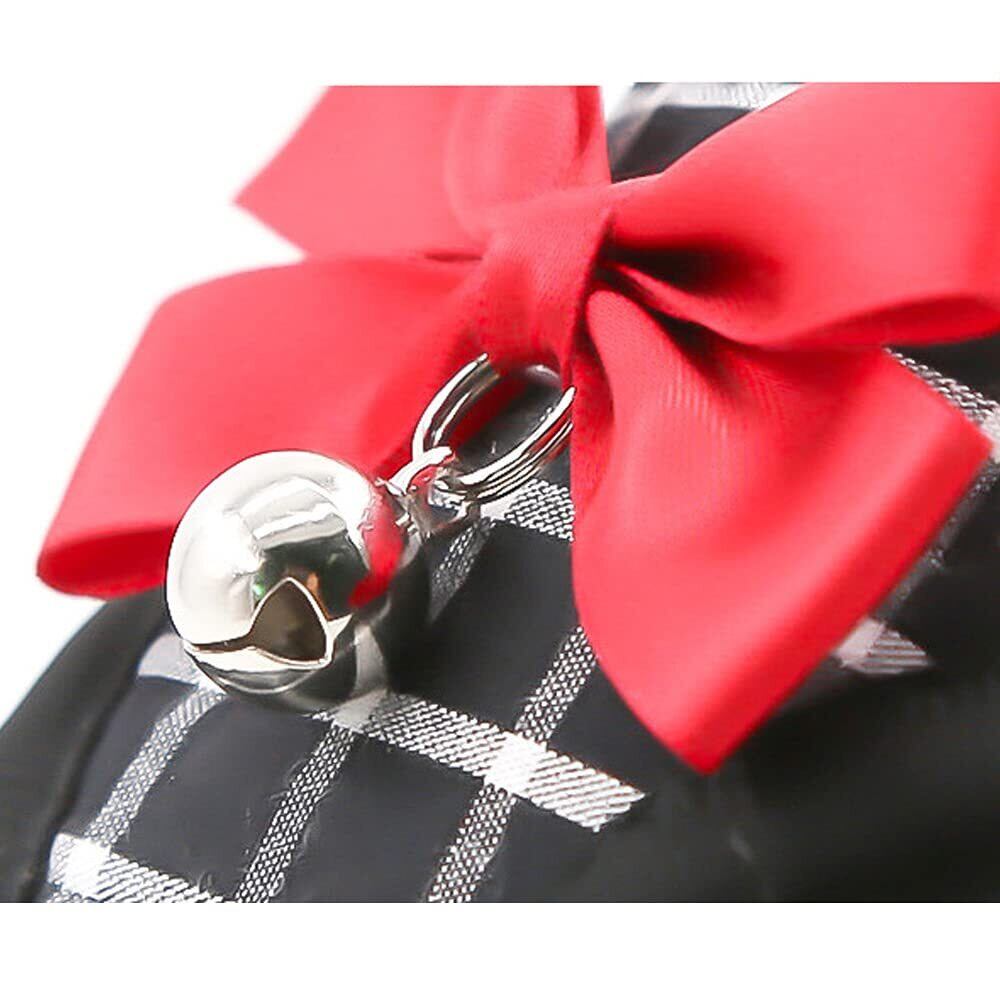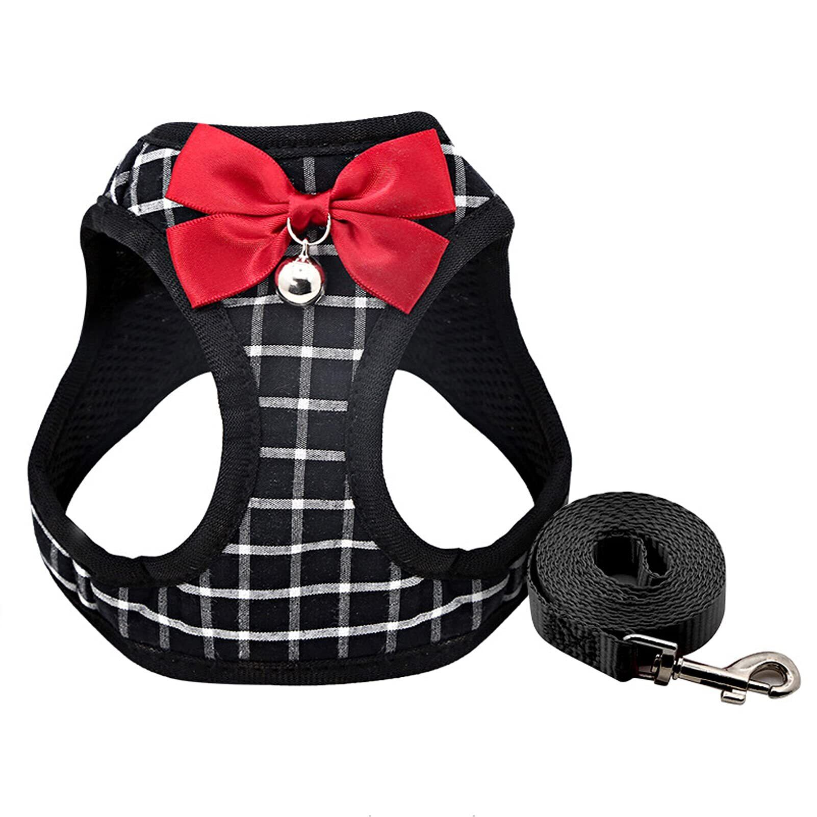 Tibemi 犬 猫 ハーネス リードセット 鈴付き 可愛い 蝶ネクタ 猫用ハーネス 抜けない 胸あて式 牽引ロープ 猫 ハーネス メッシュ ポリエステル製 格子縞 小型犬 猫 はーねす リード 調整可能 お出掛 散歩 簡単脱着式 引っ張り防止 S 黒