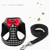 【数量限定】Tibemi 犬 猫 ハーネス リードセット 鈴付き 可愛い 蝶ネクタ 猫用ハーネス 抜けない 胸あて式 牽引ロープ 猫 ハーネス メッシュ ポリエステル製 格子縞 小型犬 猫 はーねす リード 調整可能 お出掛 散歩 簡単脱着式 引っ張り防止 S 黒 | wakuwakuland