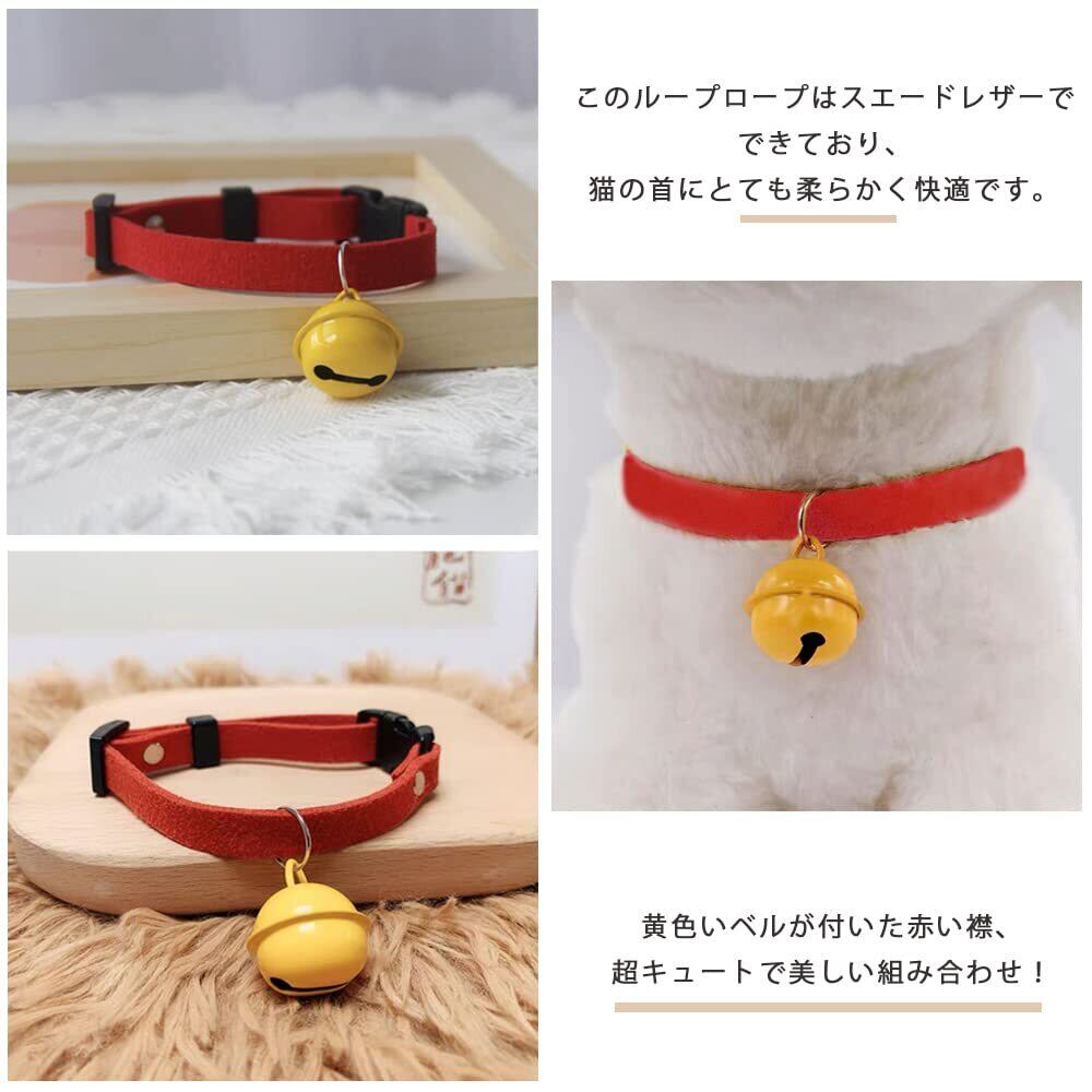 首輪 猫 ねこ 用 首輪 黄色鈴 付き かわいい バックル 式 サイズ 調節 可能 10-20CM スエードペットの首輪 快適でソフト 簡単に識別 (XS)