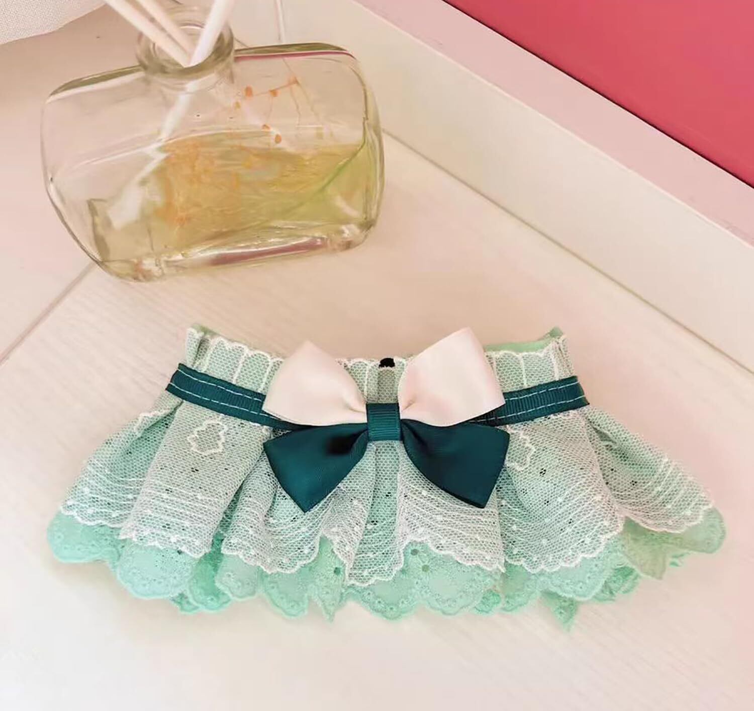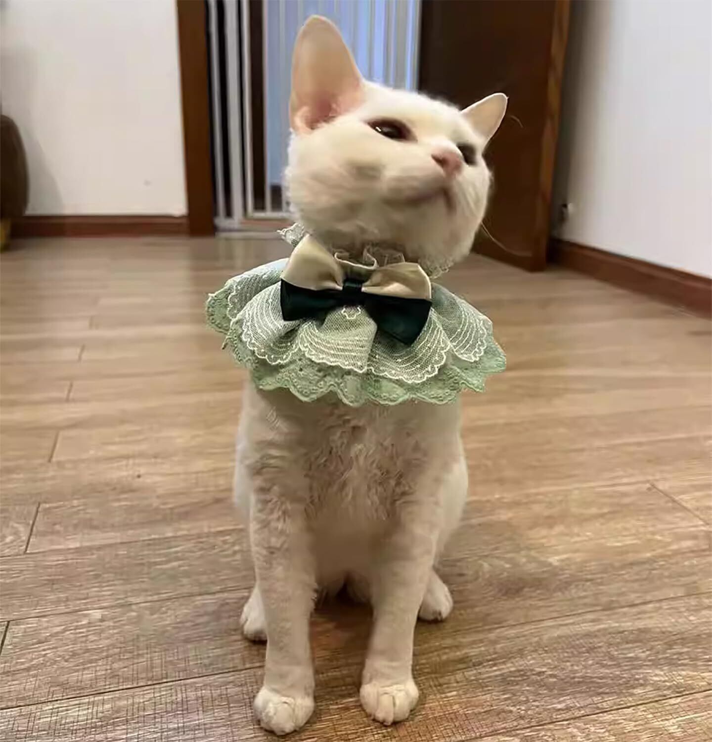WEILFYONK 猫犬首輪猫唾液タオル首輪猫服犬服手作りレースペットアクセサリー写真背景ペット用品可愛い和風結婚リボン貴族風刺繍レース猫用首輪ネックレスリボン犬首輪 (M, グリーン)