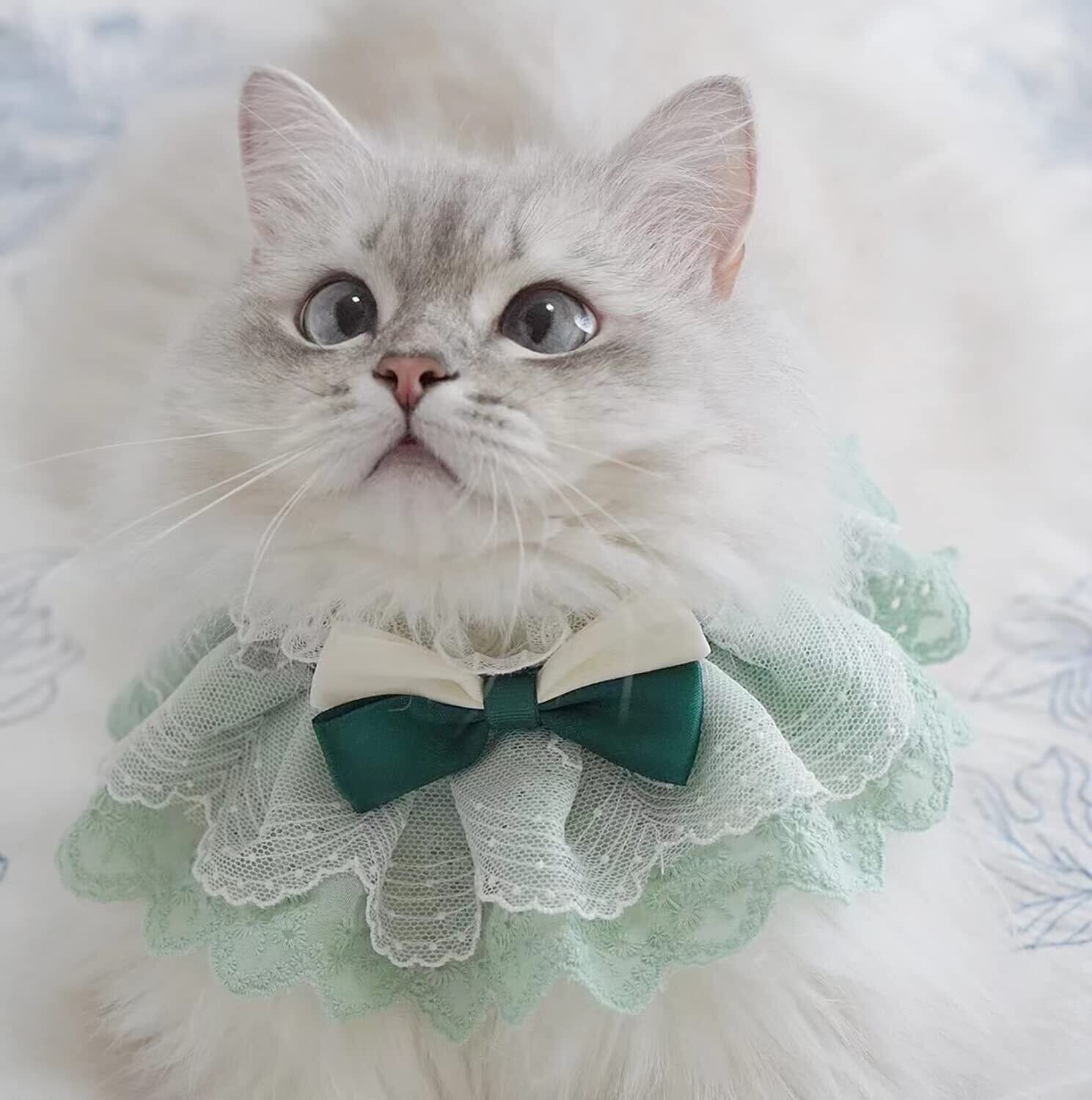 【数量限定】WEILFYONK 猫犬首輪猫唾液タオル首輪猫服犬服手作りレースペットアクセサリー写真背景ペット用品可愛い和風結婚リボン貴族風刺繍レース猫用首輪ネックレスリボン犬首輪 (M, グリーン) | wakuwakuland