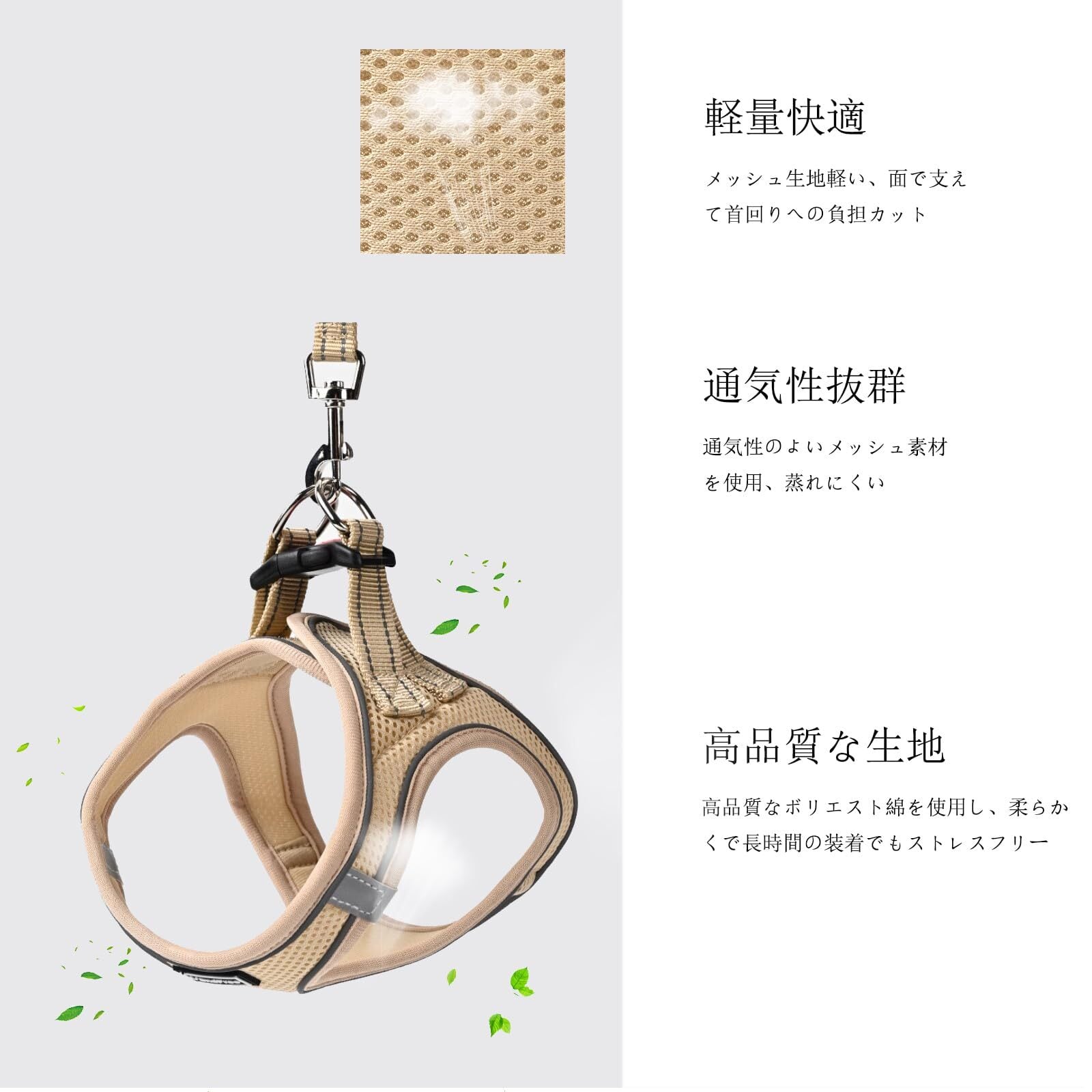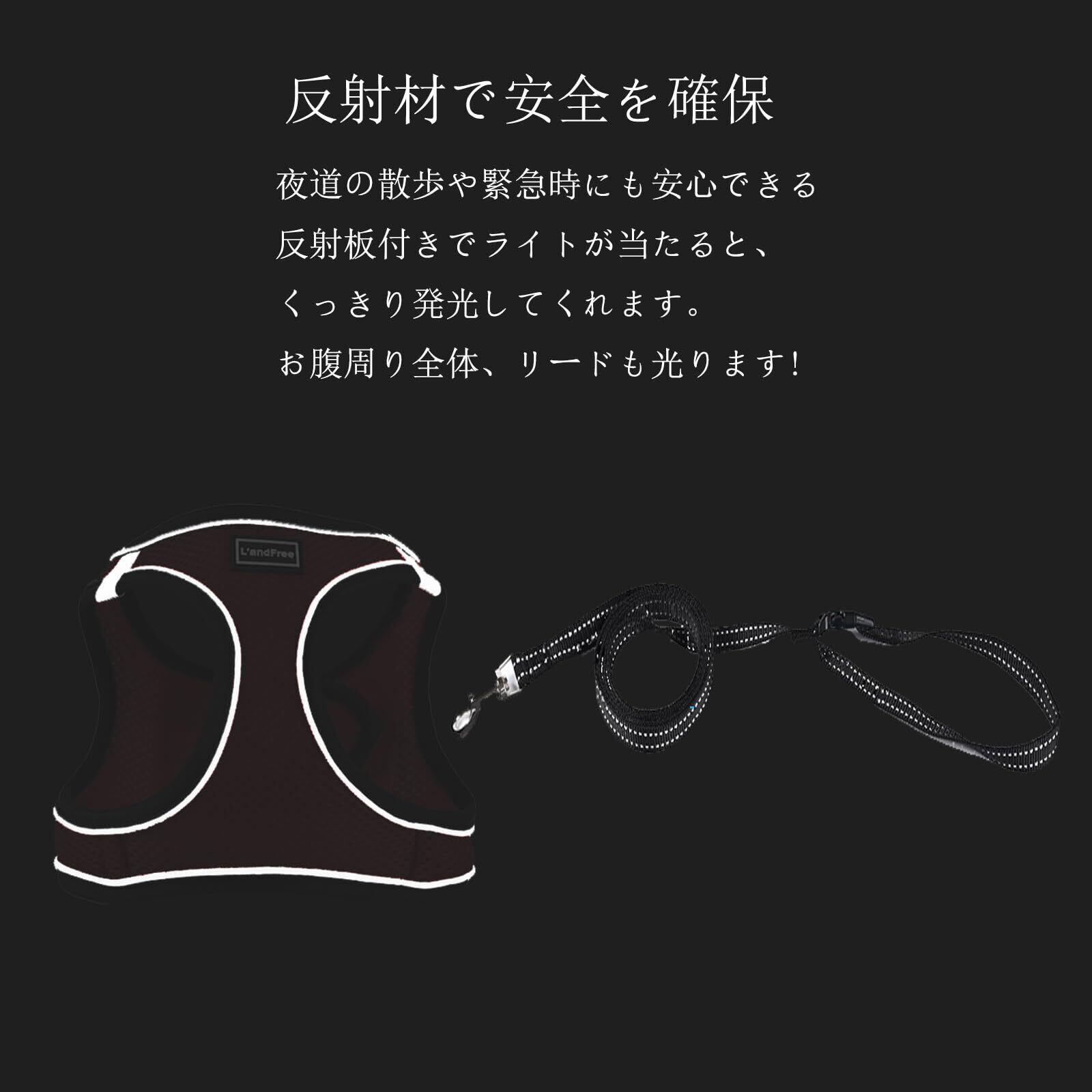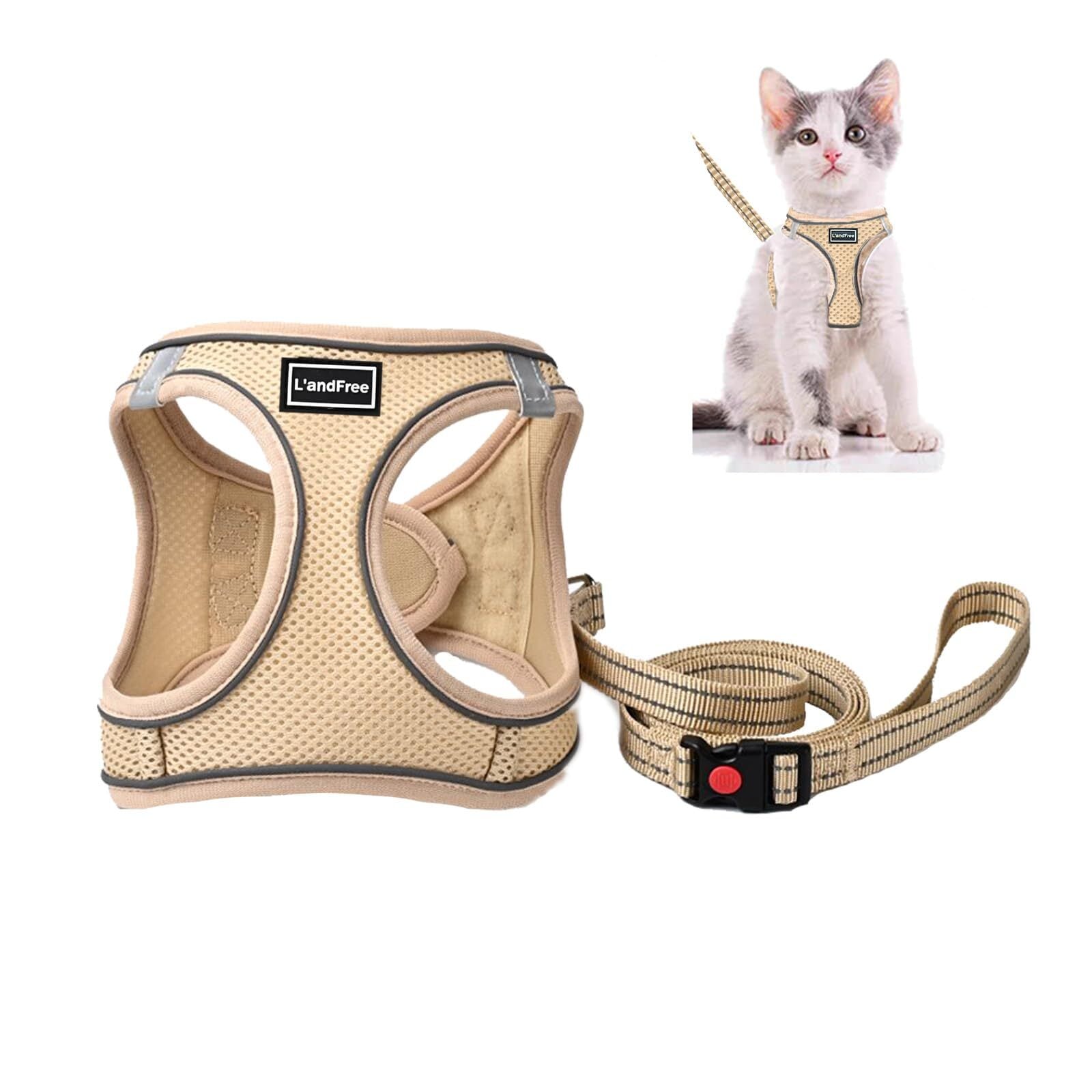 L'andFree 猫 猫用 ハーネス リード 4重ロック 抜けない リード付きハーネス 小型犬 犬 ねこ ネコ 子猫 散歩 お出かけ 夜反射 ソフト胸あて 軽量 装着簡単 サイズ調節可 通気 メッシュ(M ベージュ)