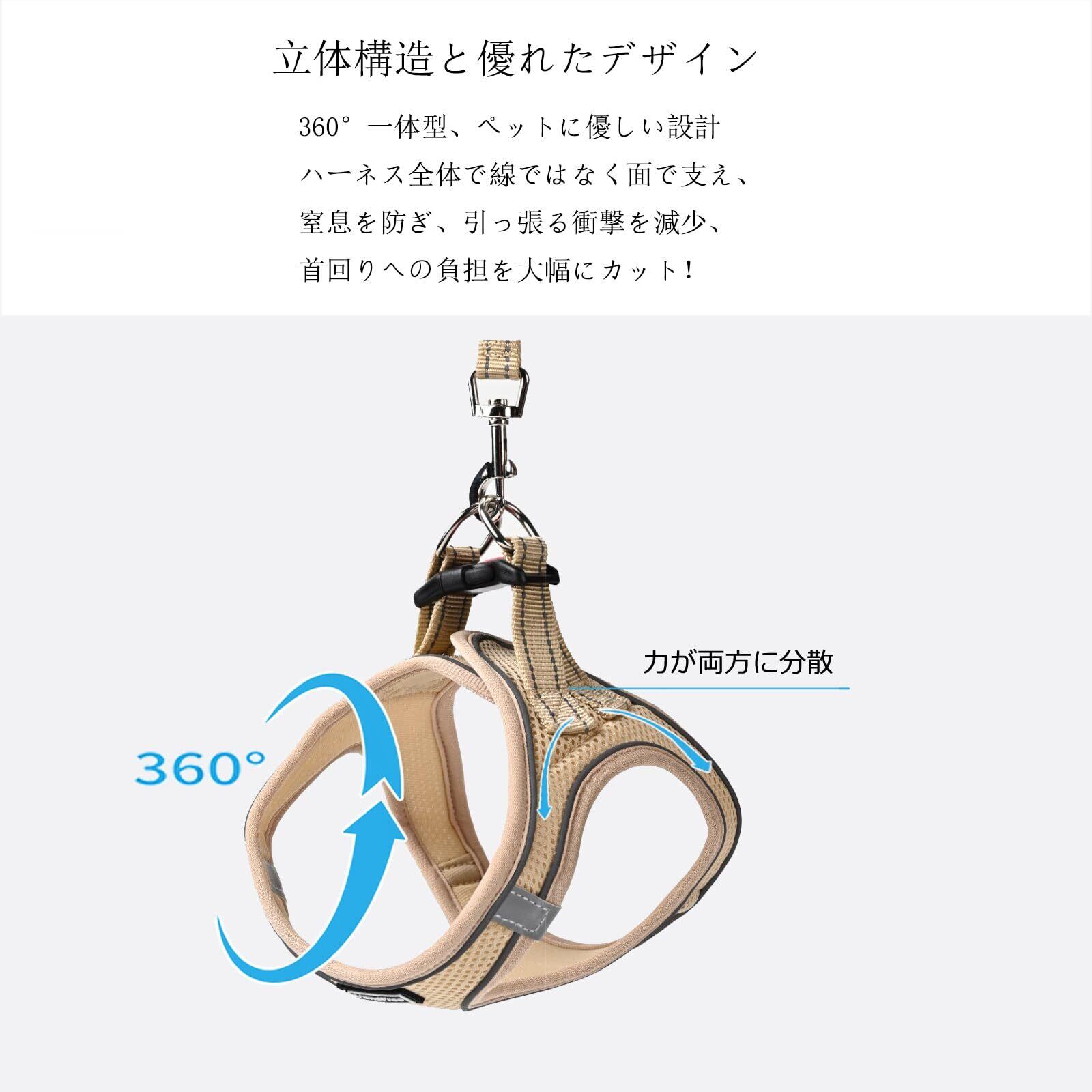 【新着商品】L'andFree 猫 猫用 ハーネス リード 4重ロック 抜けない リード付きハーネス 小型犬 犬 ねこ ネコ 子猫 散歩 お出かけ 夜反射 ソフト胸あて 軽量 装着簡単 サイズ調節可 通気 メッシュ(M ベージュ) | wakuwakuland