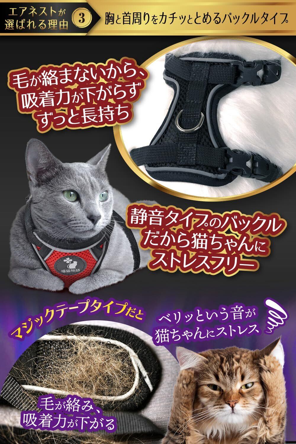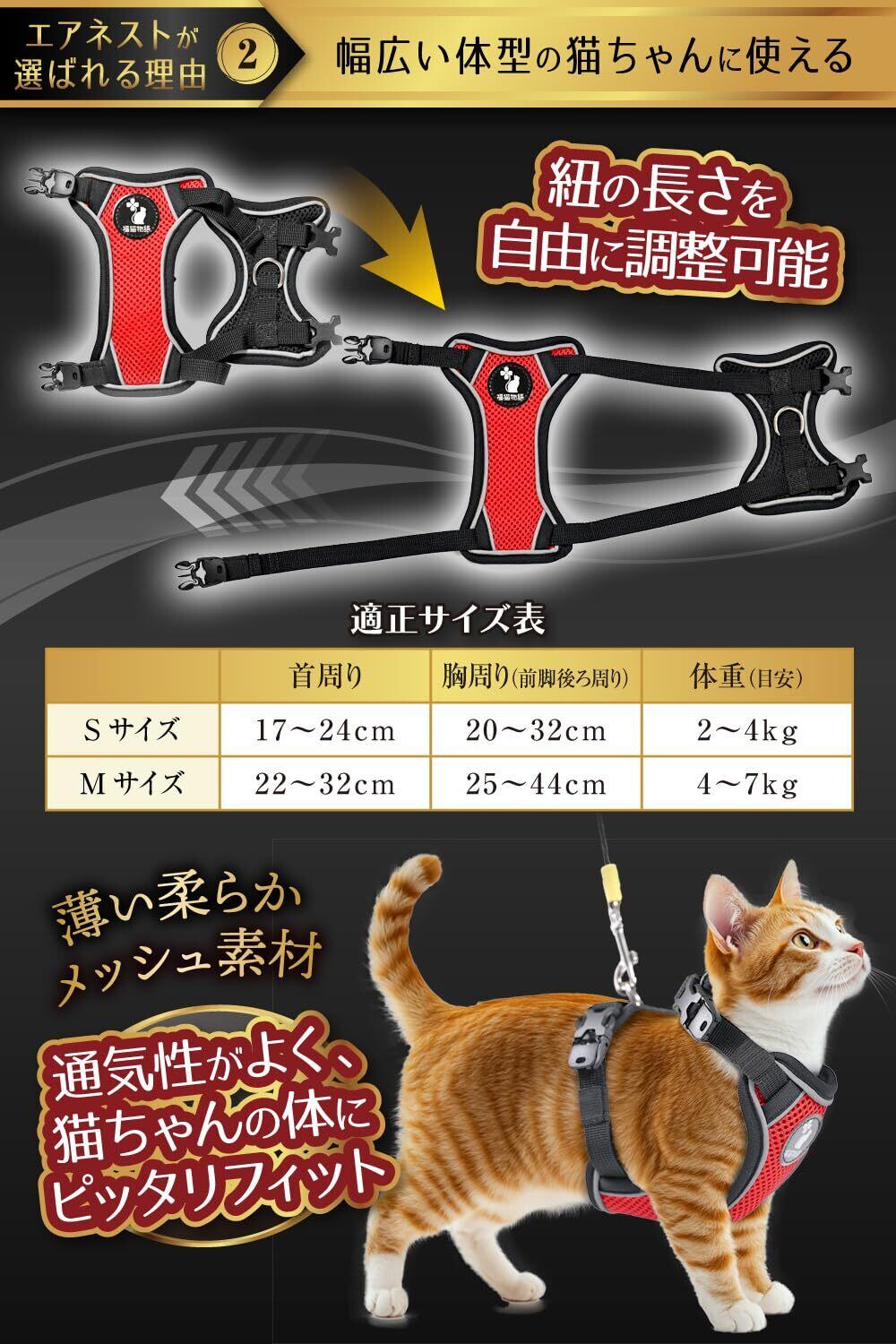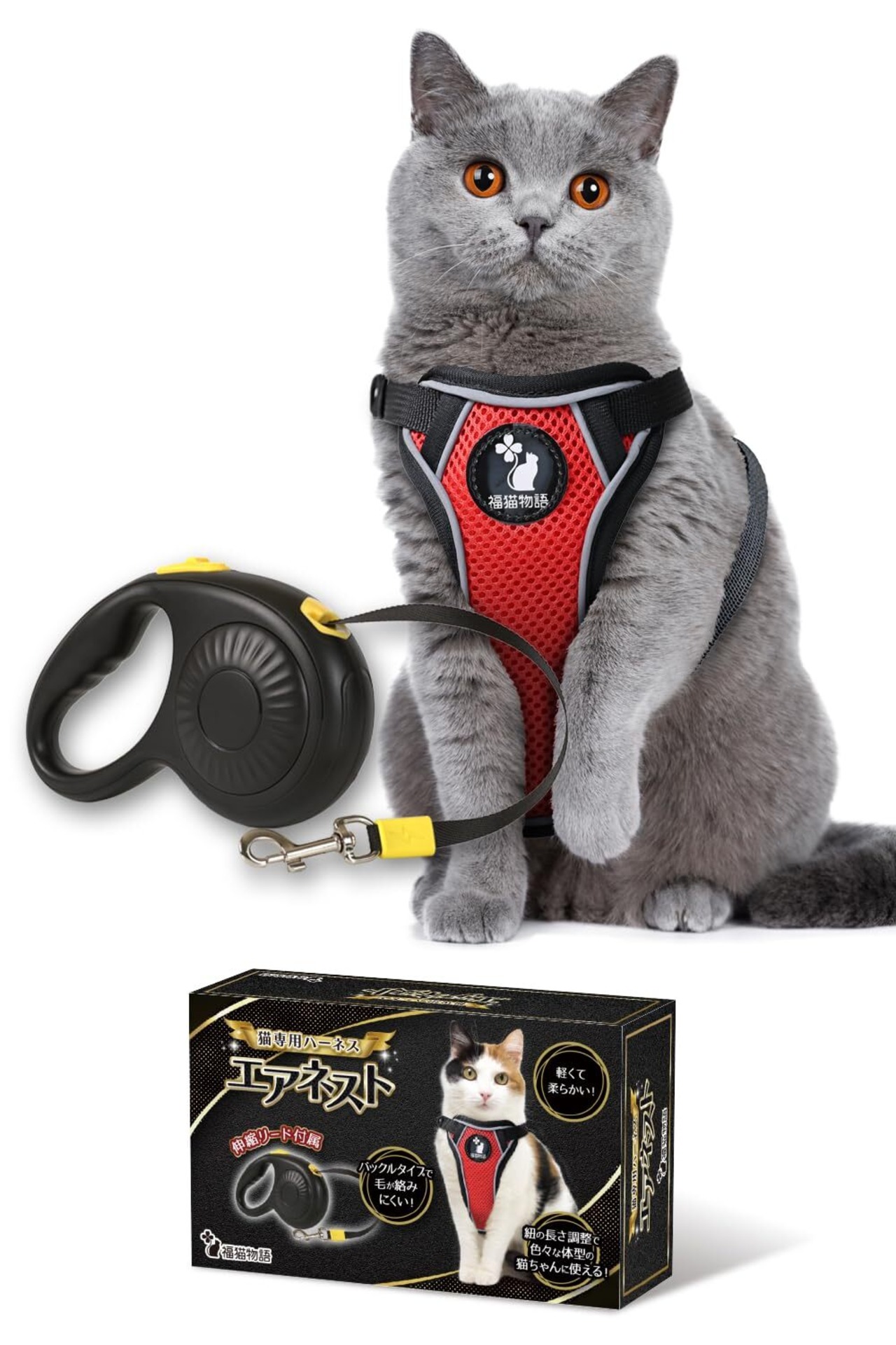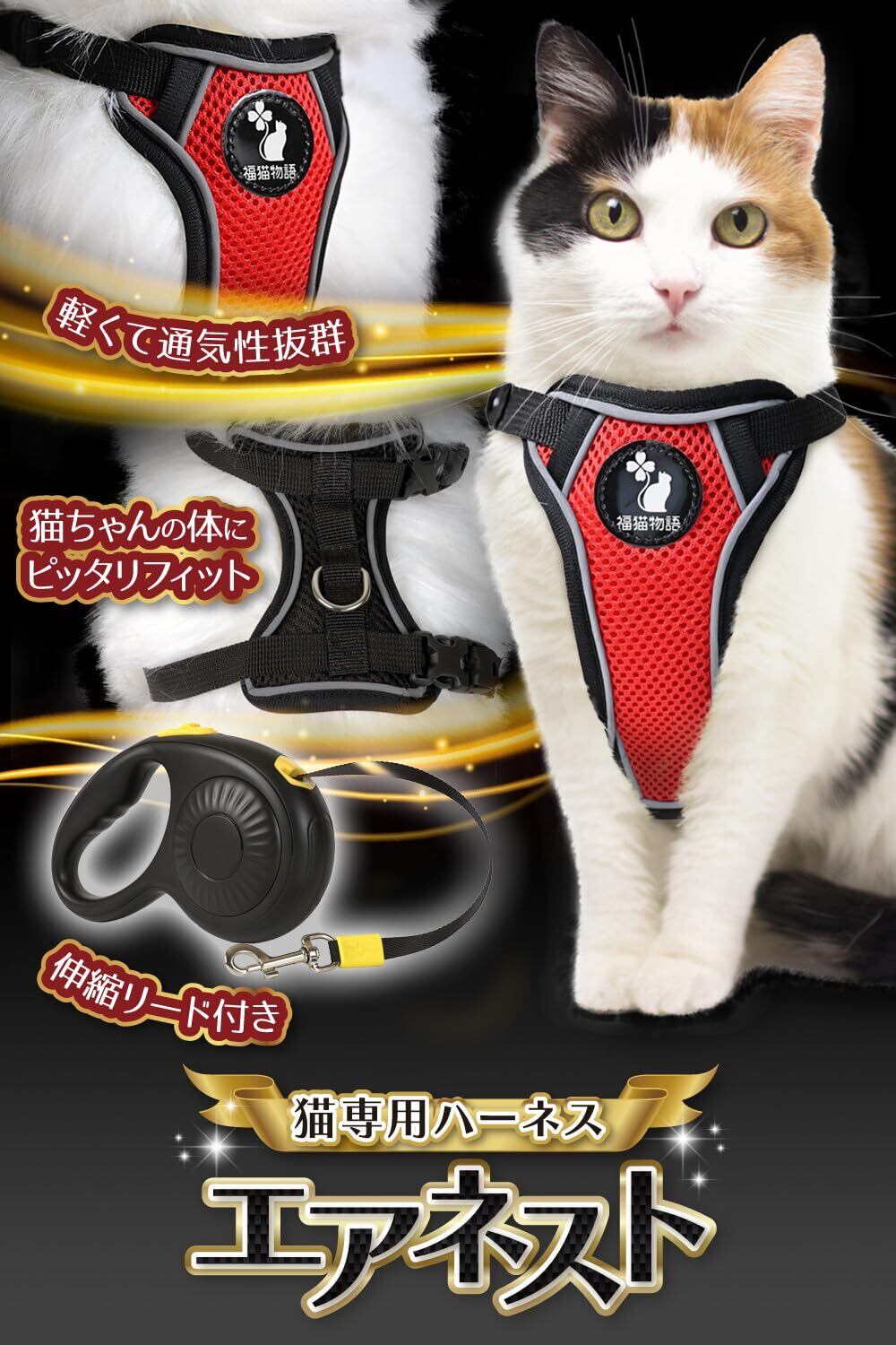 【数量限定】福猫物語 猫 ハーネス エアネスト 伸縮リード付き ベストタイプ 軽量 反射材 毛が絡まらないバックルタイプ (Sサイズ)