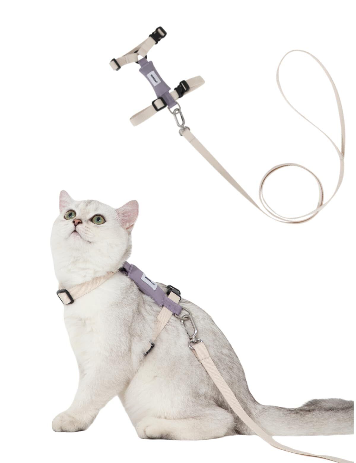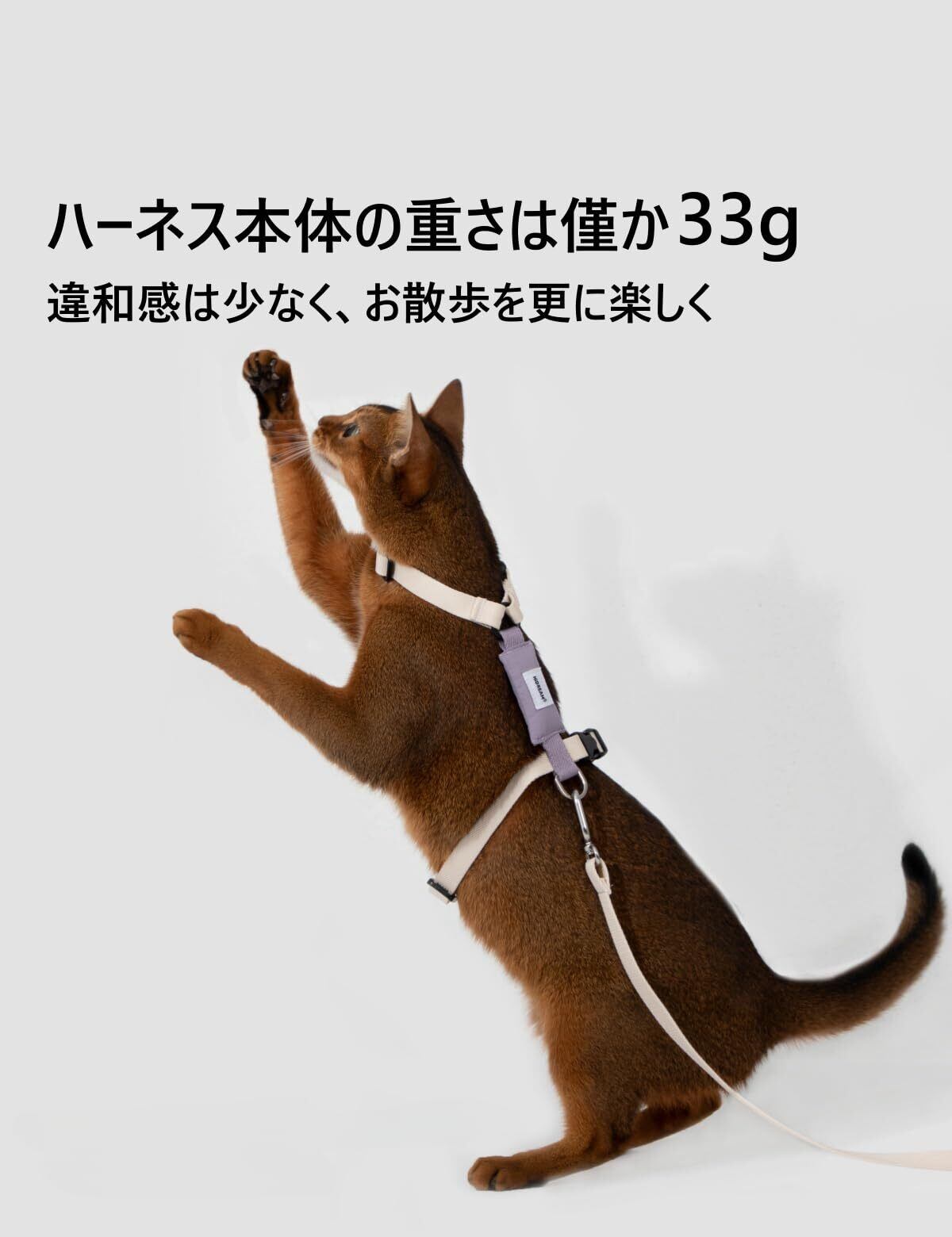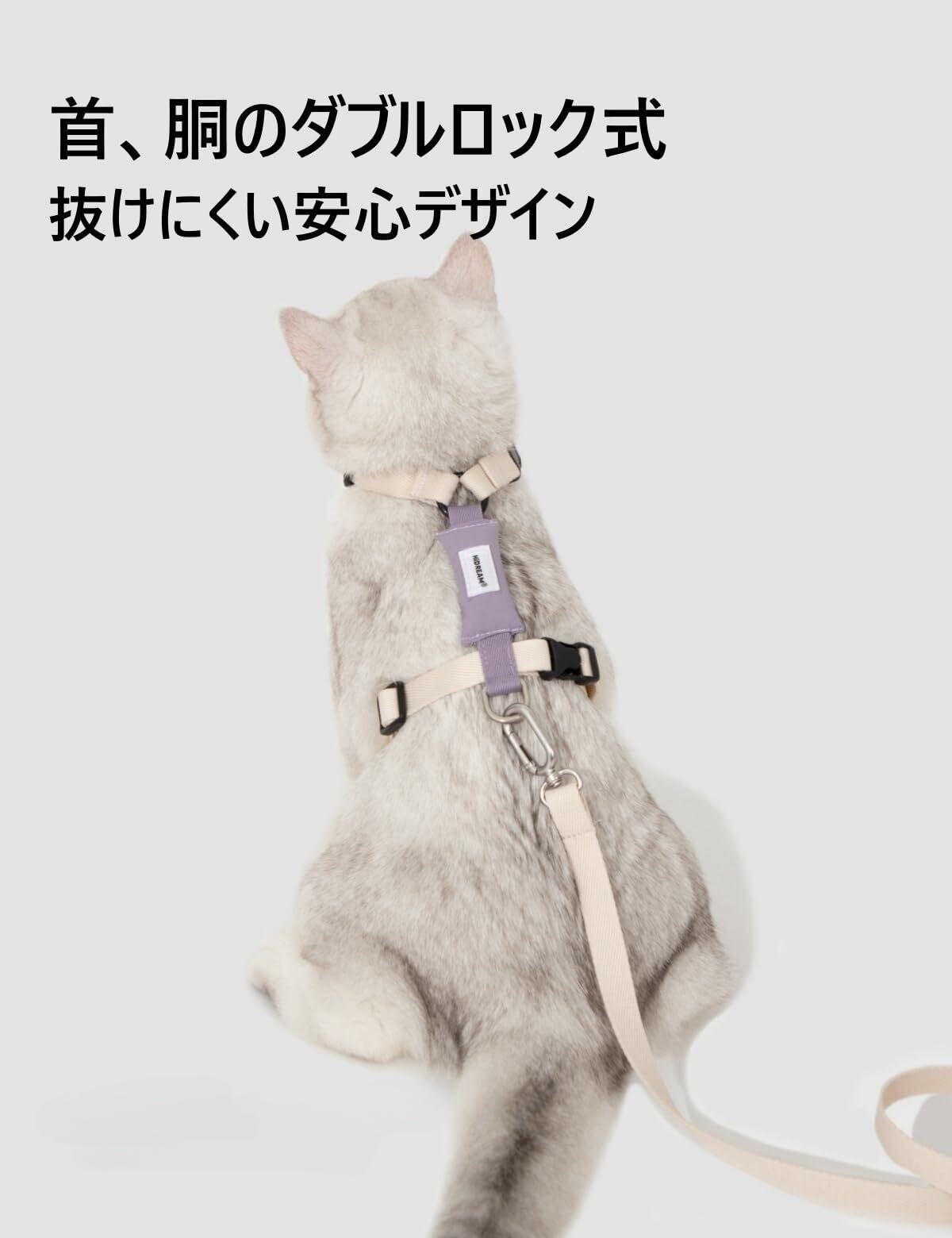 Lucky Friends 抜けない ダブルロック 猫ハーネス リード付き 簡単装着 猫ハーネス リードセット (ミルクパープル)