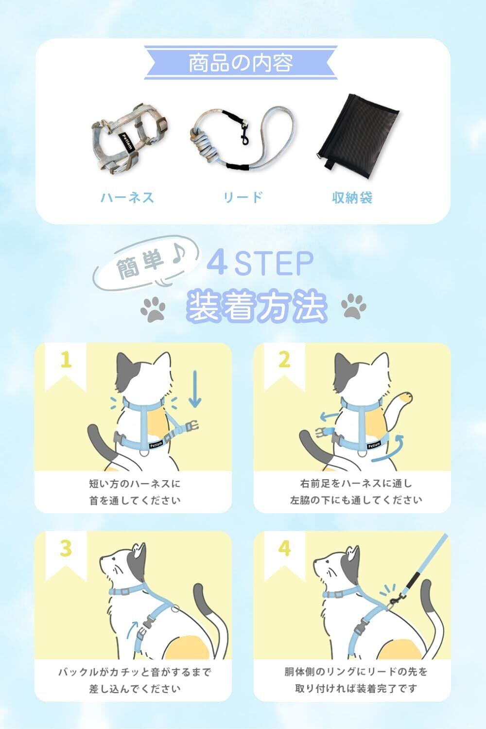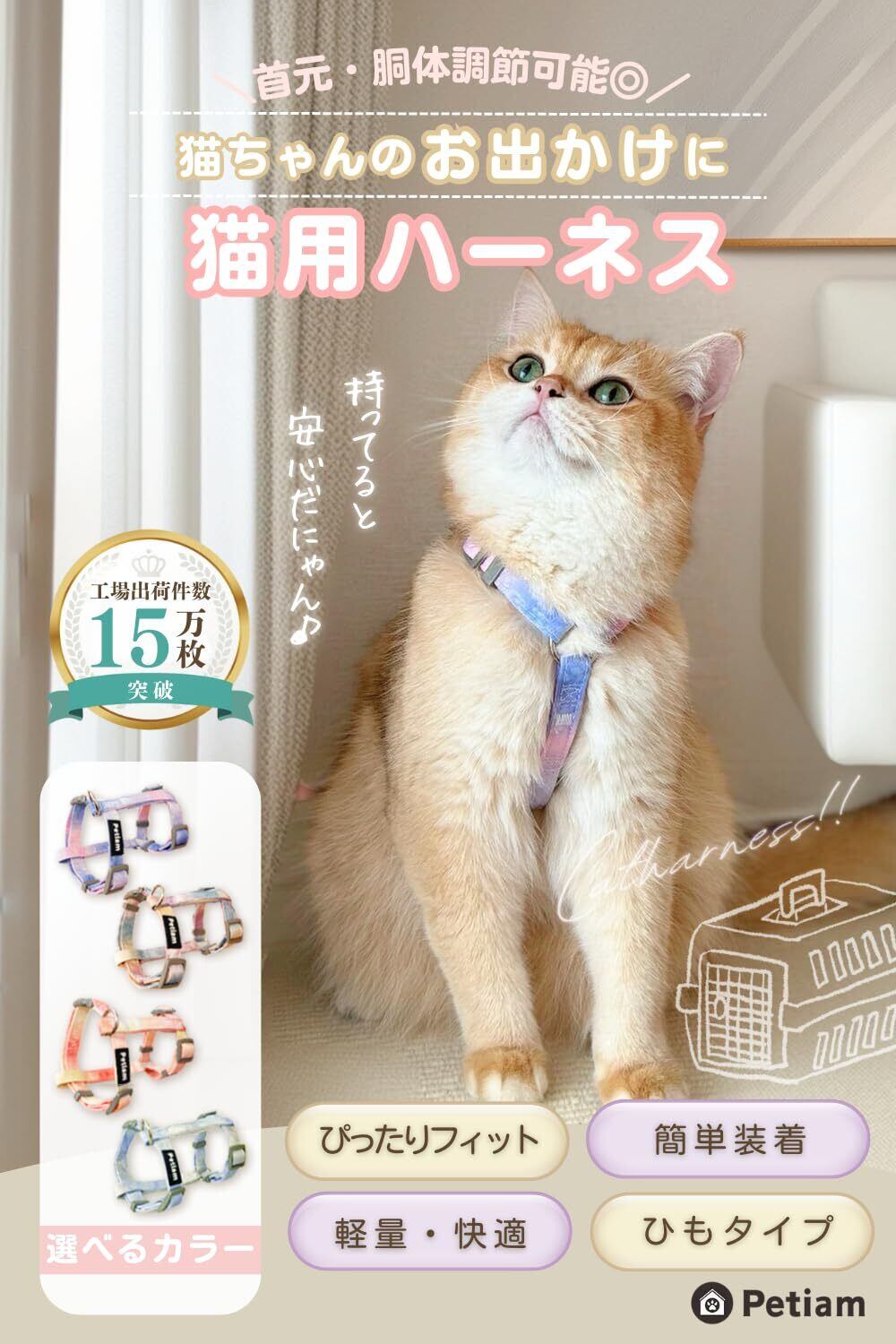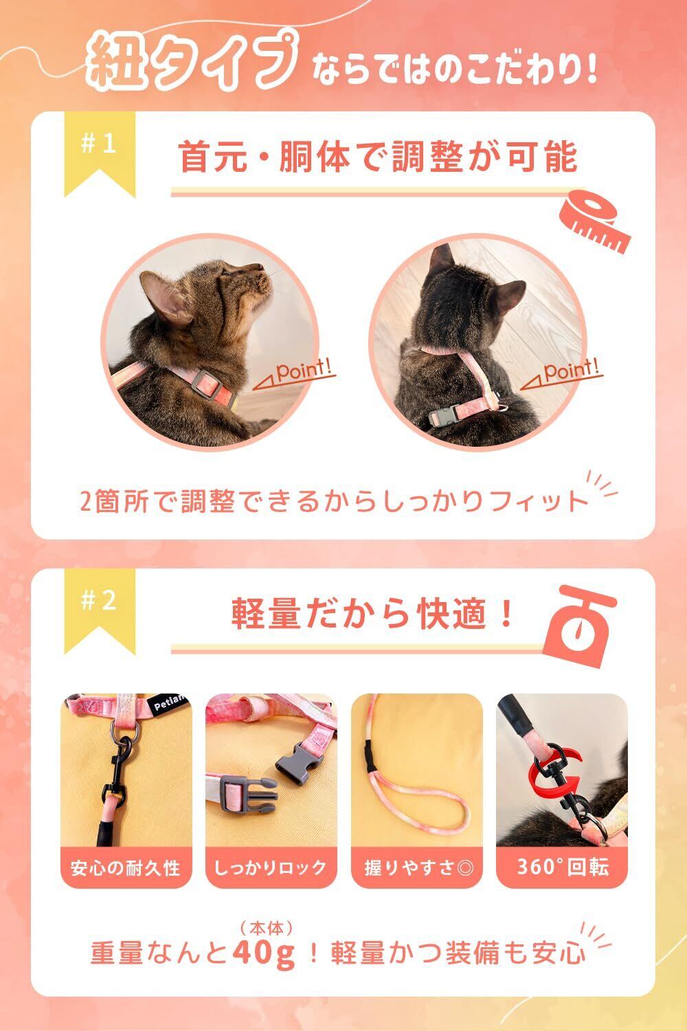(シリーズ累計2万個突破) Petiam 猫 ハーネス リード 猫用 抜けない リードセット お散歩セット 紐タイプ (コットンキャンディ, M)