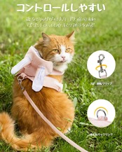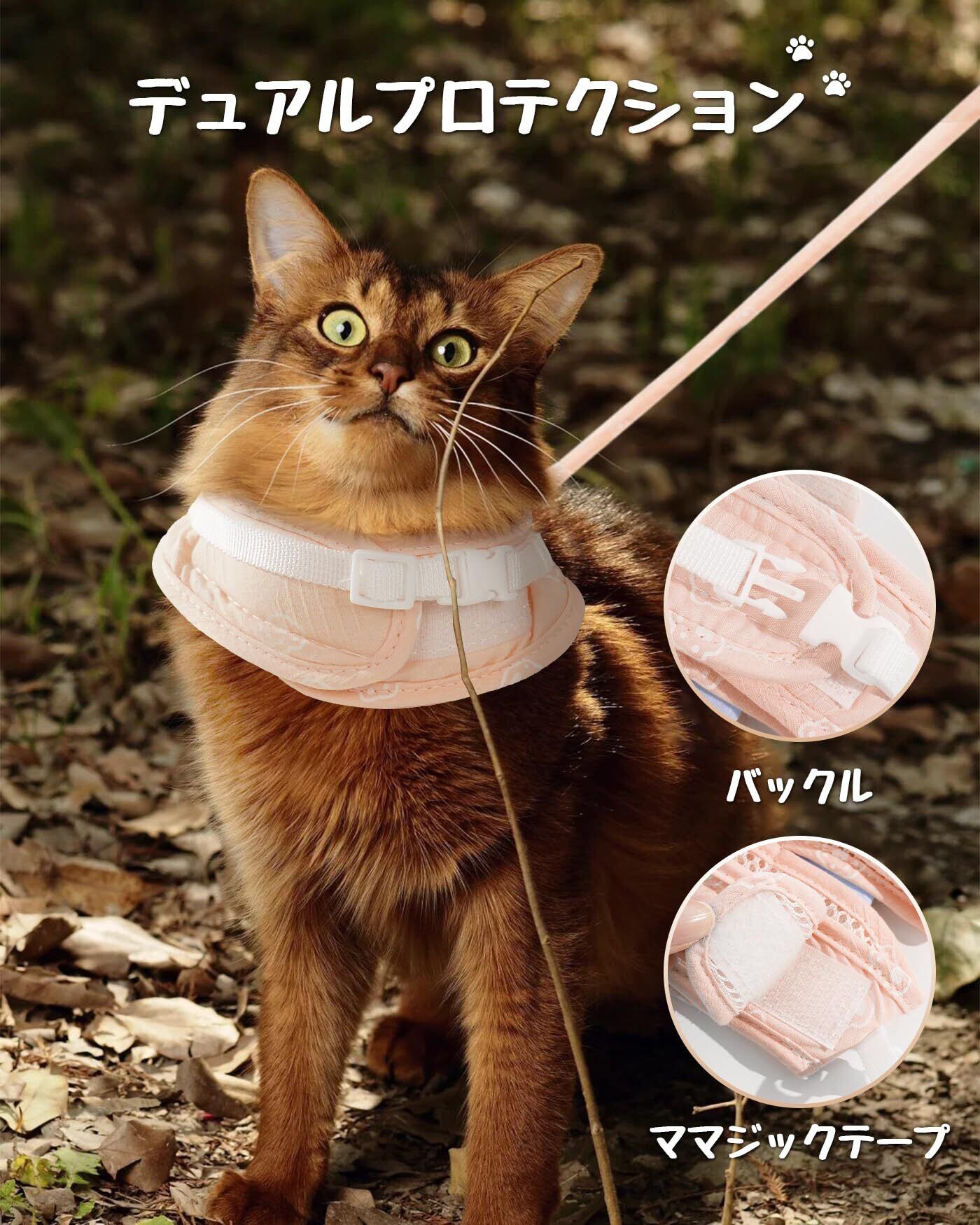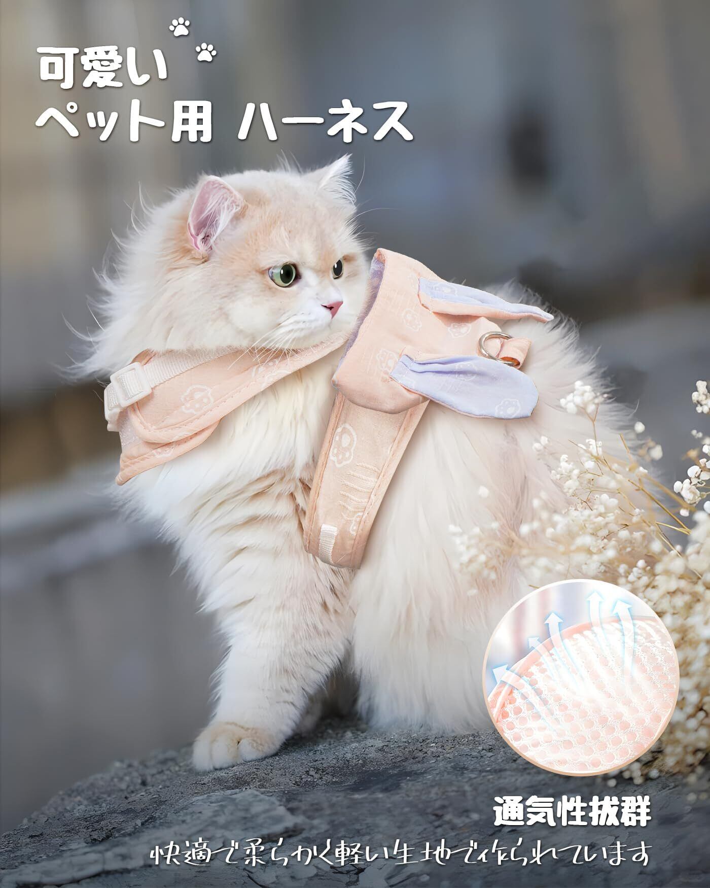 【安全でかわいいデザイン】抜けにくい、頭を通さず簡単脱着。金属製のロックを採用し、わざわざ360度回転するように設計されているので、猫ちゃんが遊んだ時リードが絡まりすることを心配ない。ユニークでかわいいウサギの耳の形もあり、2色から選ぶことができます。