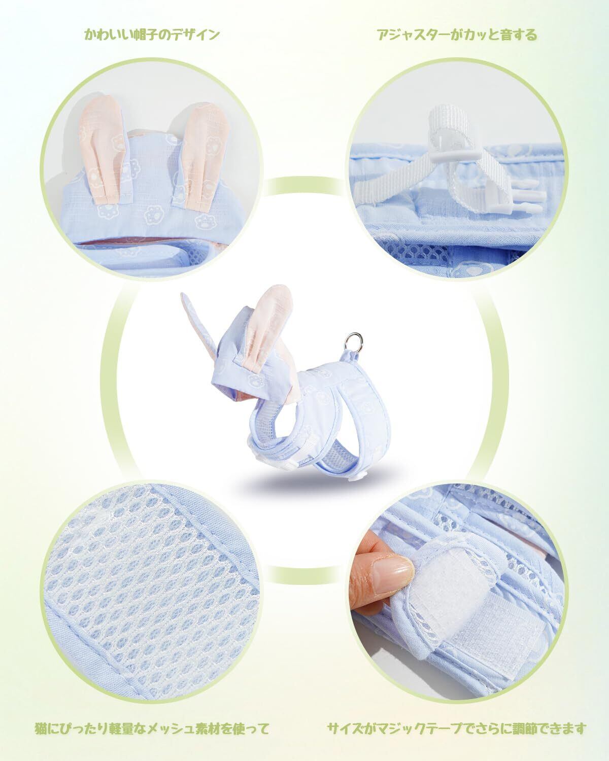 【人気商品】YUCHONG 猫 リード 猫 ハーネス 抜けない ねこ ネコ おさんぽ 人気 子猫 子犬 超小型犬 うさぎ ハーネス 猫 散歩用 脱走防止 通気メッシュ お出かけ ベスト ソフト胸あて 軽量 サイズ調節可 可愛い兎耳デザイン | wakuwakuland