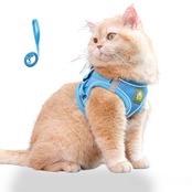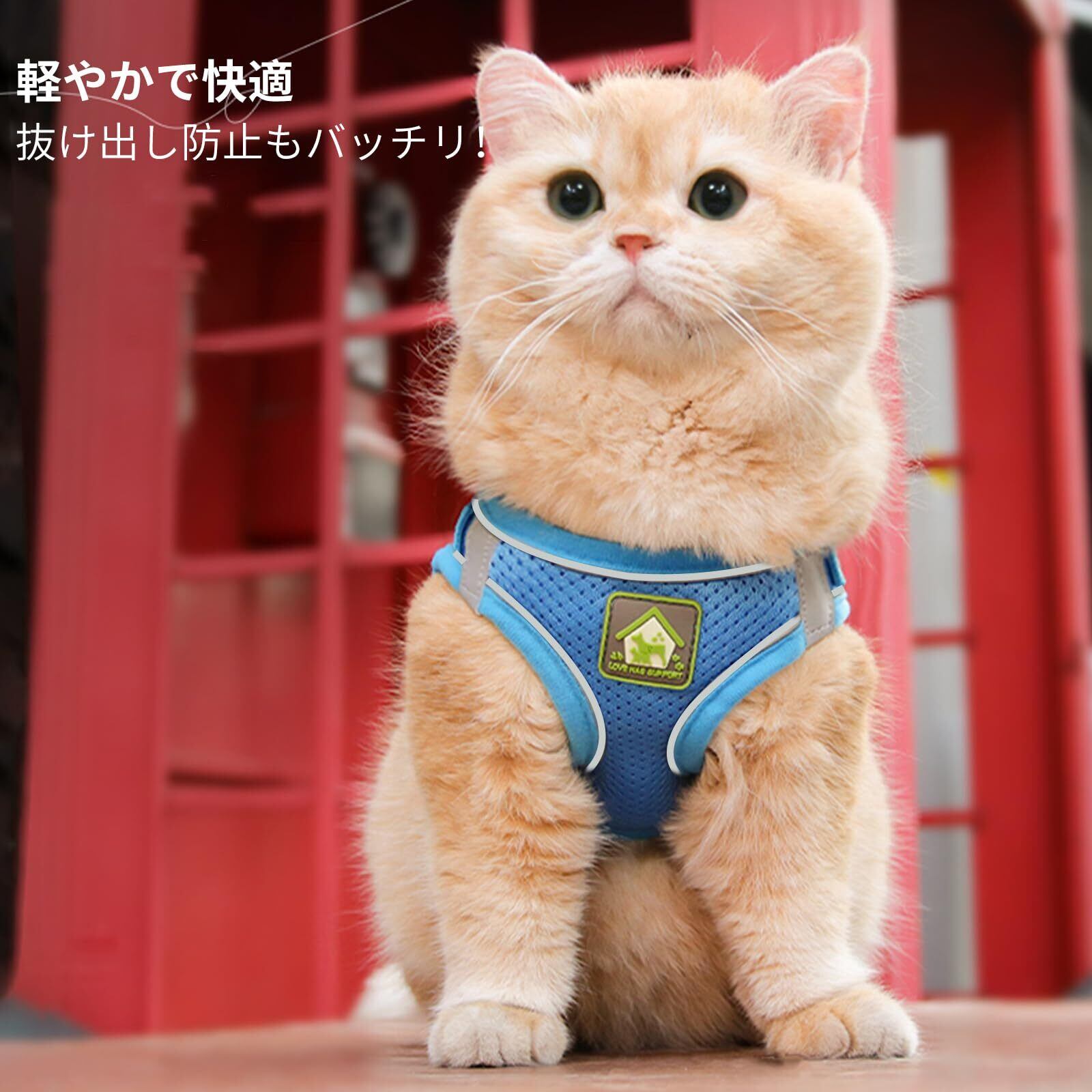 【在庫処分】【猫 ハーネス 抜けない】XINIDEA 猫用ハーネス 逃げ防止 超軽量・通気性素材 着脱簡単 サイズ調節可 反射材使用 小型〜大型猫対応 散歩・通院・災害時避難用(ブルー, S) | wakuwakuland