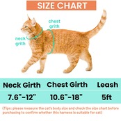 サイズ: このH型キャットハーネスの首と胸のウェビングは調節可能で、小、中、大型の猫に適しています。 首回り:7.6インチ~12インチ、胸囲:10.6インチ~18インチ、リードの長さ:59インチ。 (ヒント:このハーネスが猫に適しているかどうかを確認するために購入前に猫の体のサイズを測定し、サイズ表を確認してください)